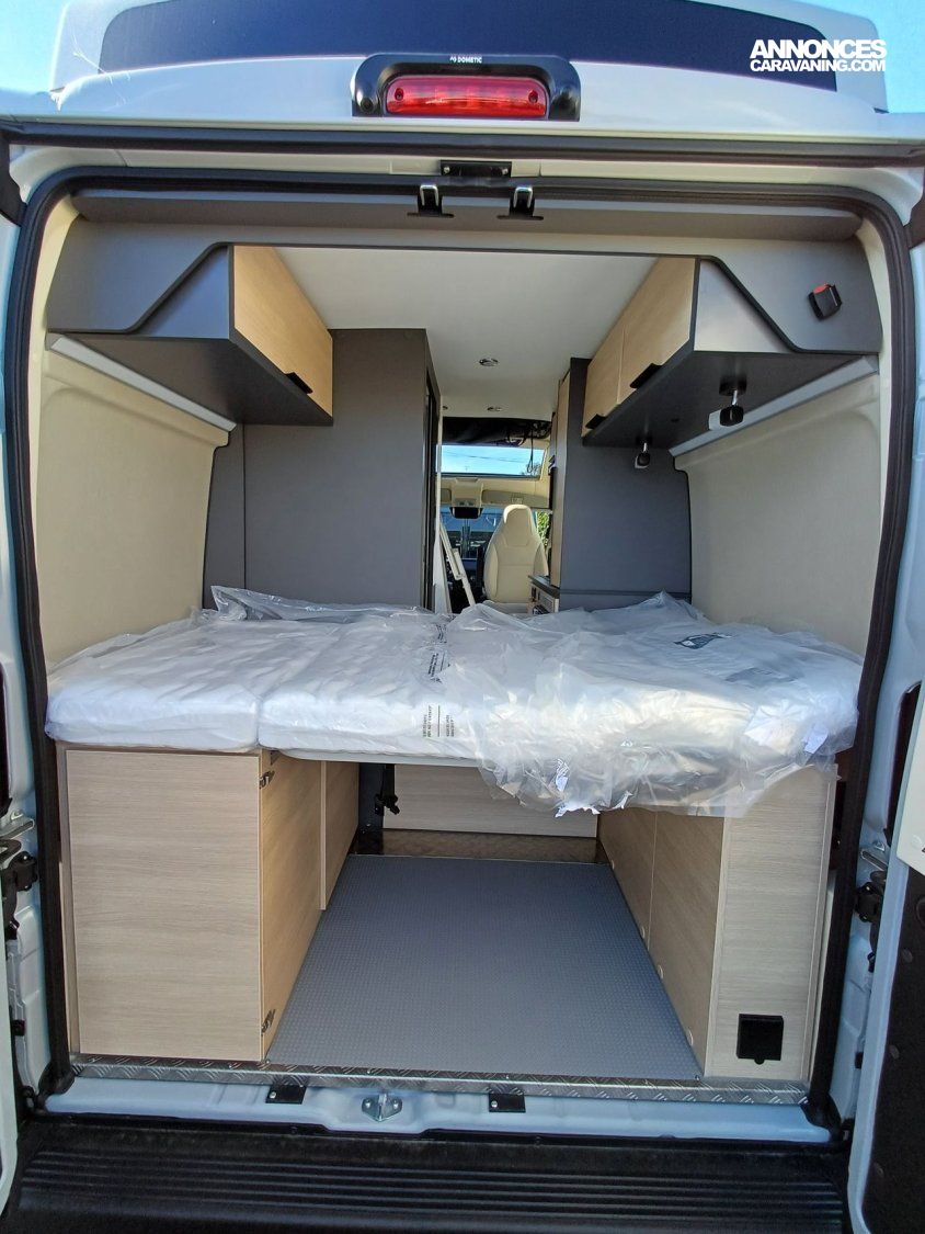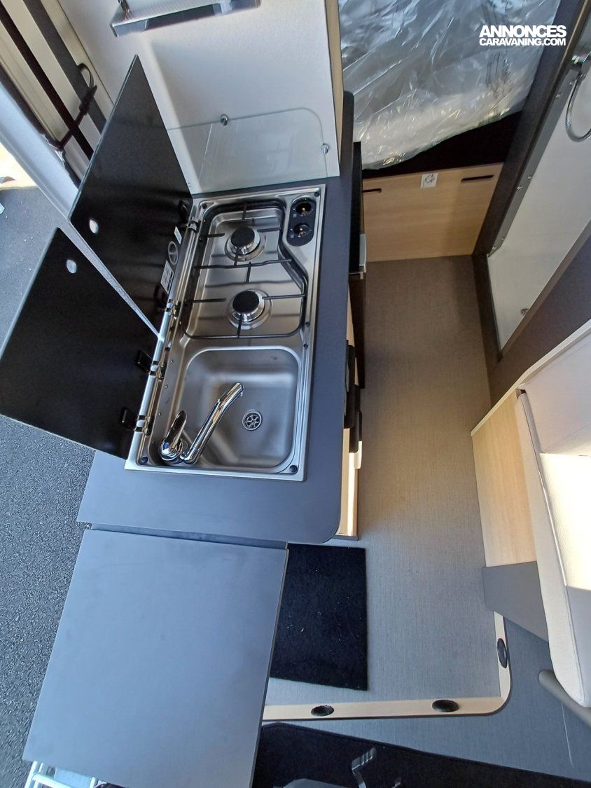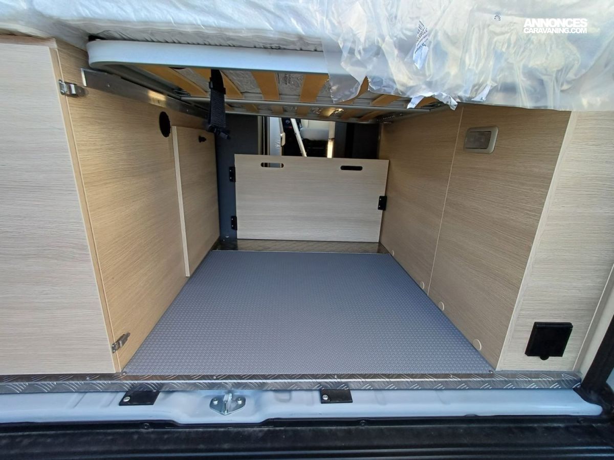 - Finition FUN +: Roue de secours, peinture pare-chocs avant couleur carrosserie, traction+ avec Hill Descent Control (aide au maintien de la vitesse en descente), porte moustiquaire ouvrant latéral stores pare-brise et baies cabine isothermes, marchepied électrique, autoradio PIONEER® USB avec fonction BLUETOOTH, WEBASTO 4000 W, 2e clef télécommandée (PLIP), découpe cabine, gouttière porte latérale avec éclairage LED intégré, éclairage d'ambiance meubles , déco extérieure FUN+ et enjoliveurs de roue, Duo space
