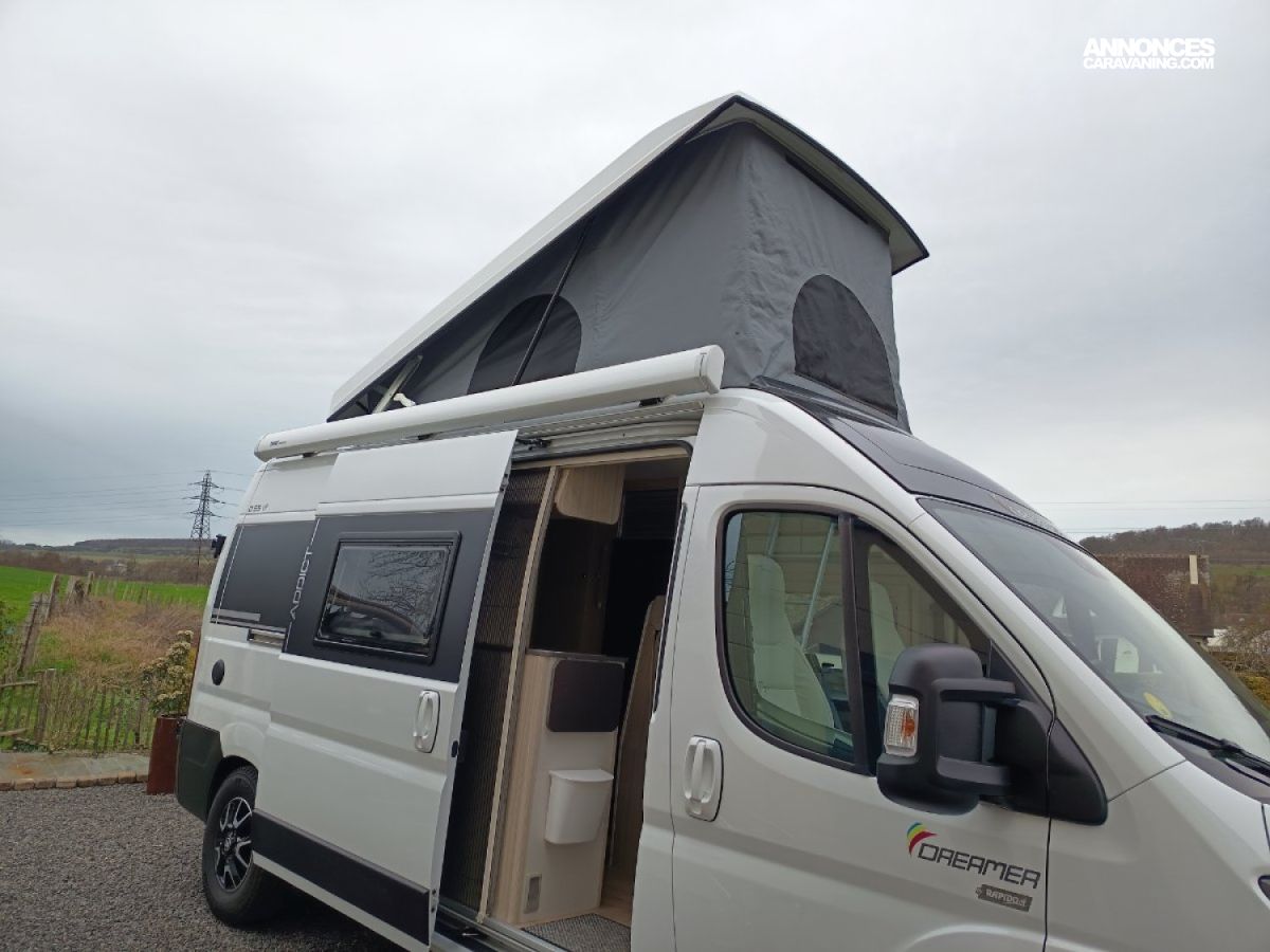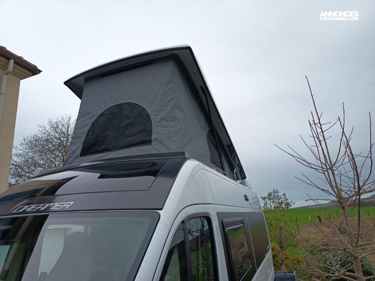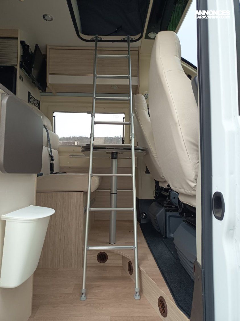 Ce fourgon aménagé est un format idéal pour un couple ou une famille jusqu’à 4 personnes. Homologué 4 places (carte grise), il offre un lit deux places (135x190) à l’arrière et un lit deux places (140x200) dans le UP (réhausse de toit).