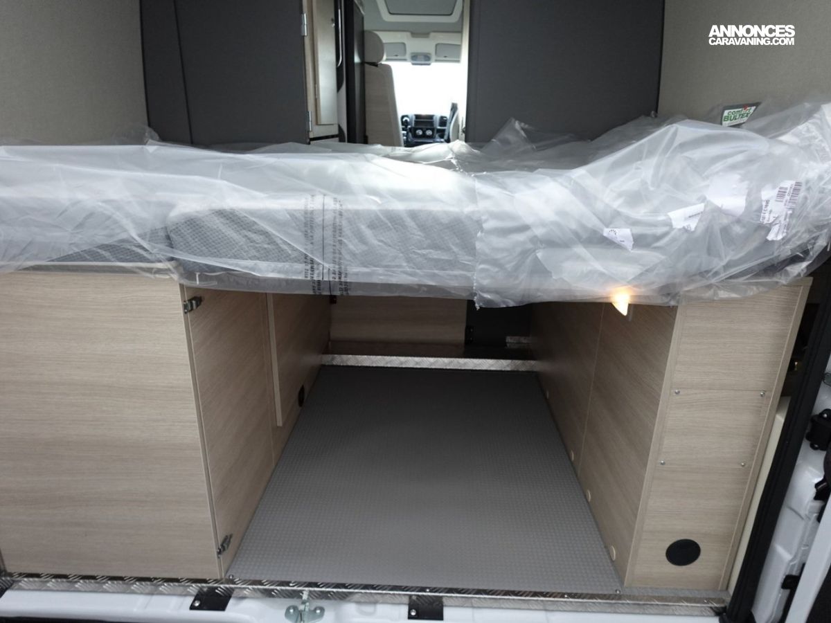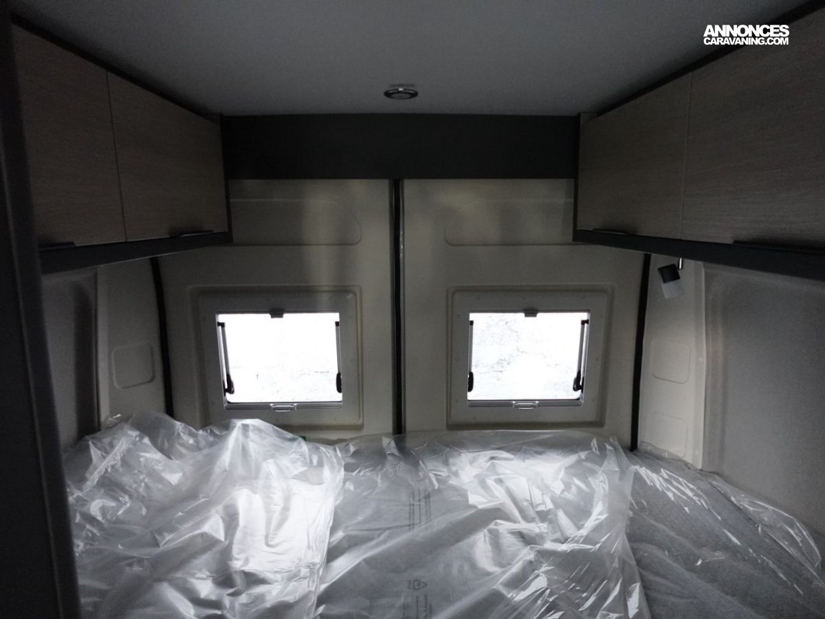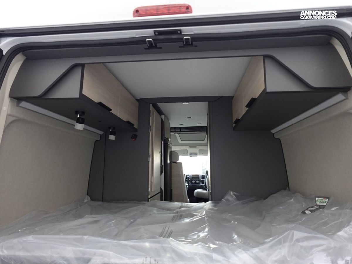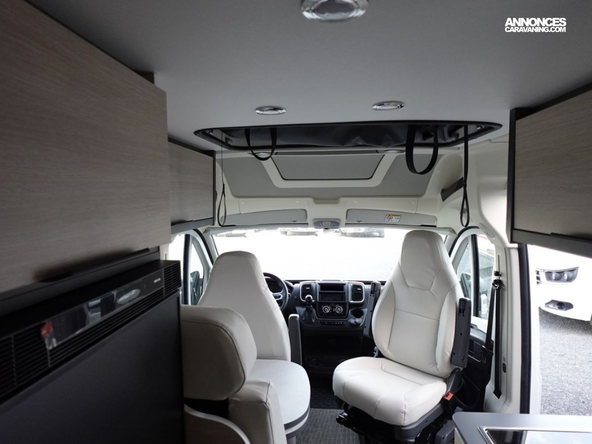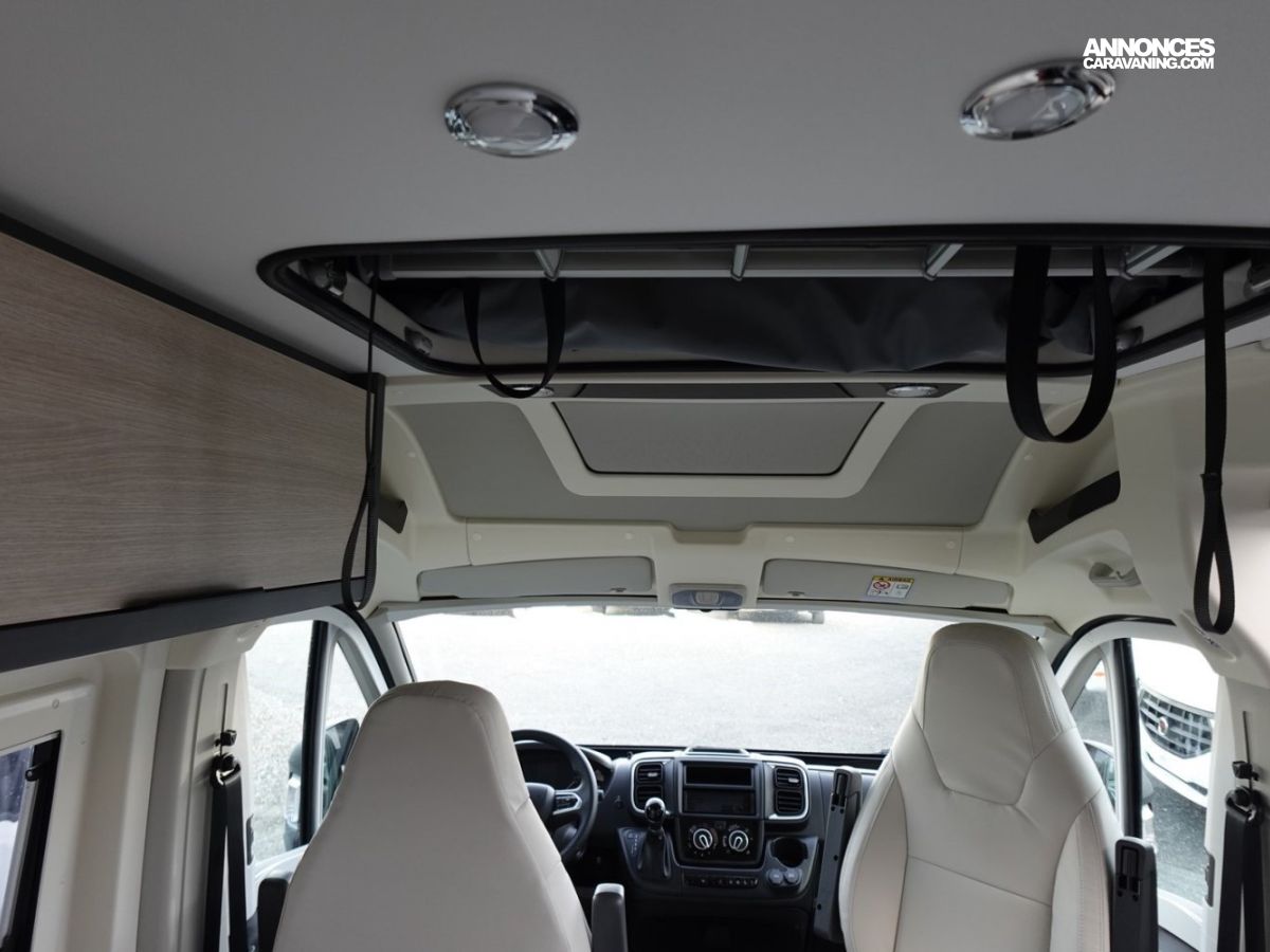 (Découpe cabine, Peinture pare-chocs avant couleur carrosserie, Commandes au volant pour la radio, Porte moustiquaire porte latérale, Stores pare-brise et baies cabine, Marchepied électrique, Phares antibrouillard avant, Autoradio, Ambiance simili cuir, Chauffage carburant Webasto, 2 batteries cellule, 2ème clef télécommandée, Gouttière porte latérale avec éclairage LED intégré, Eclairage d’ambiance meubles pavillon et chambre, Salle d’eau MODUL’SPACE, Grand lanterneau panoramique)