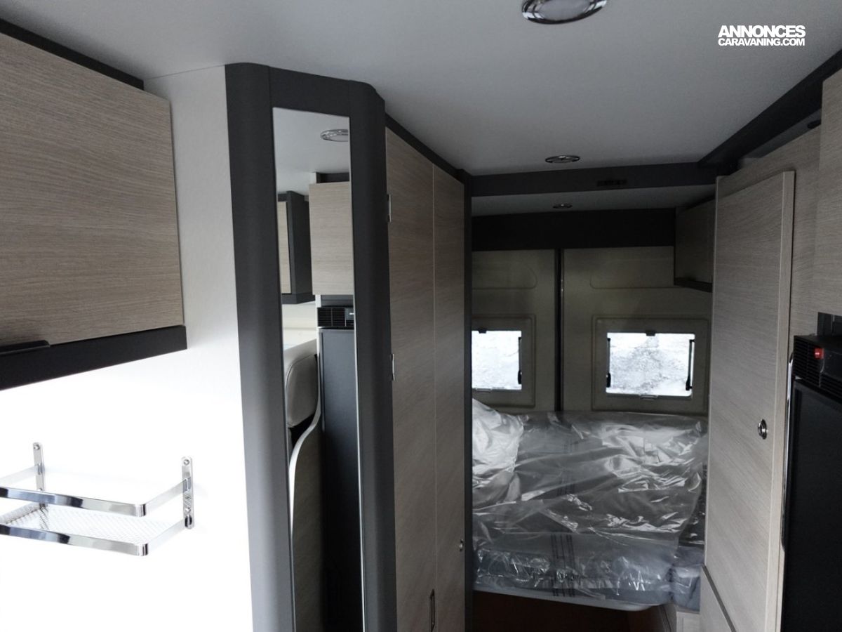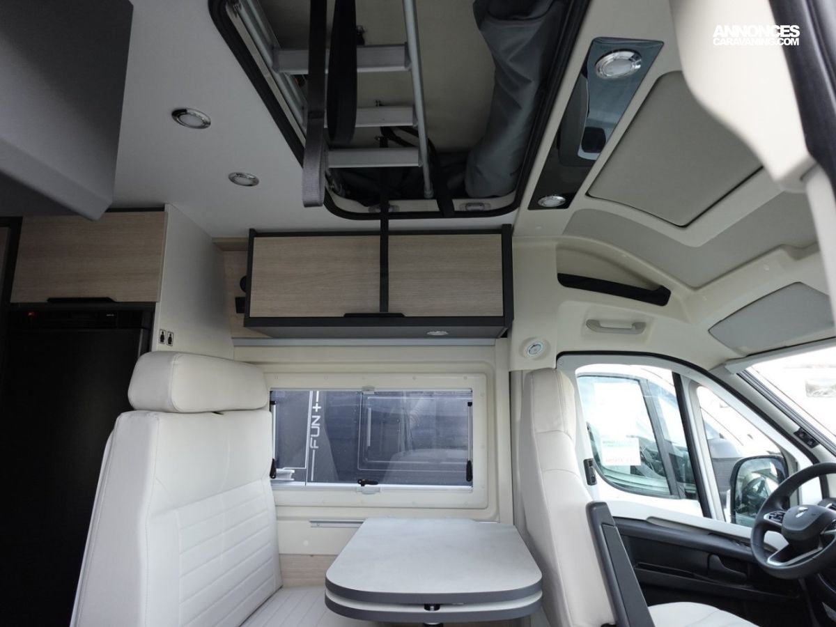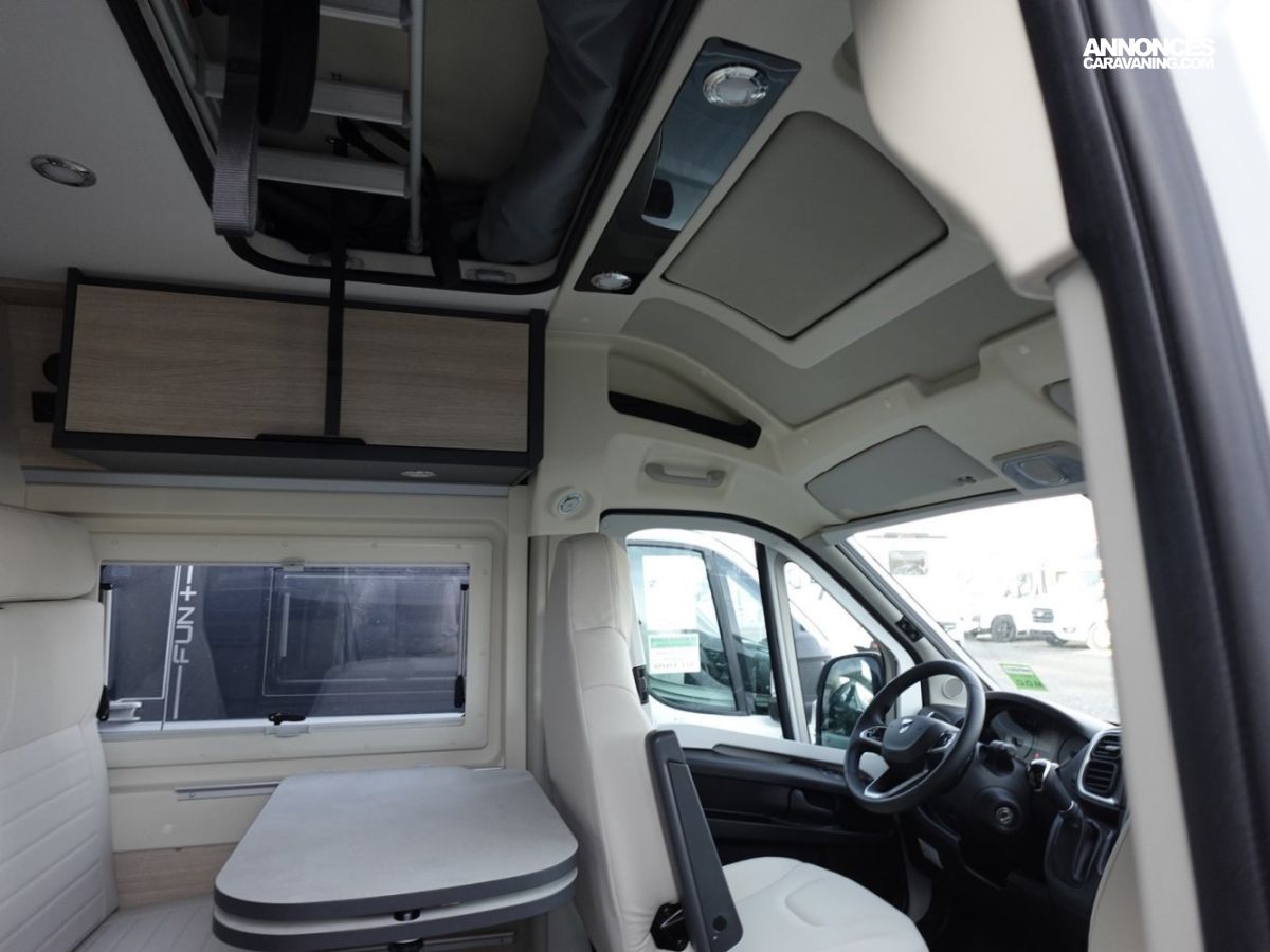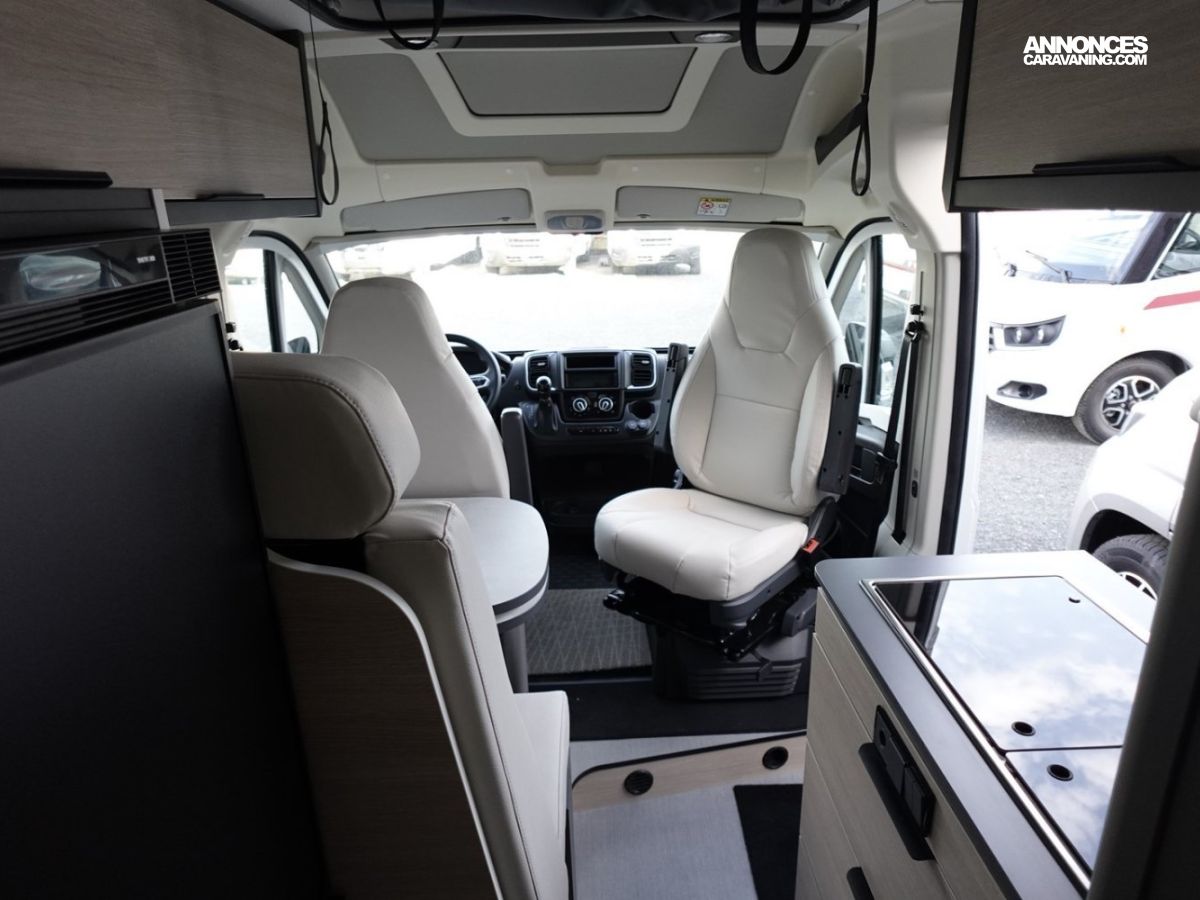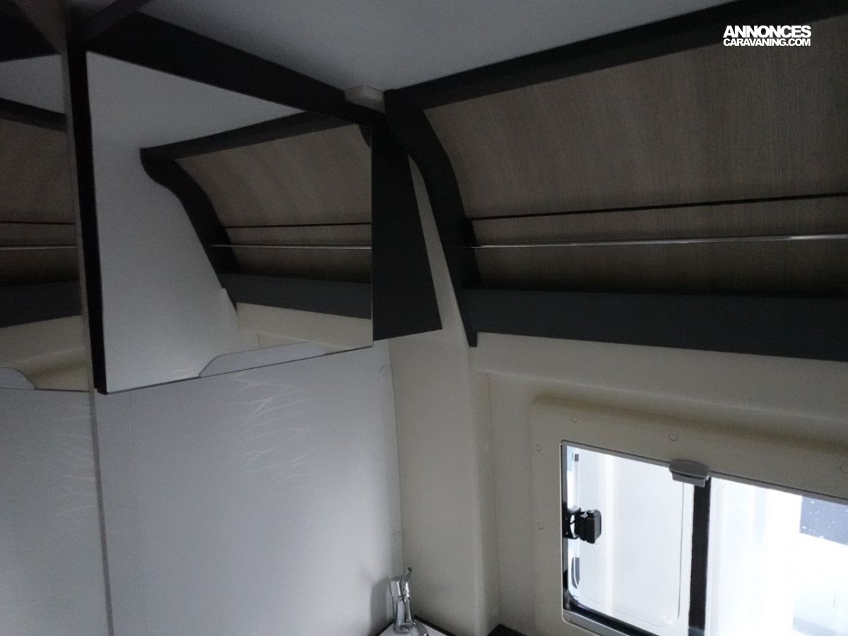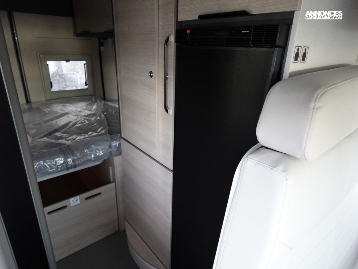 (Découpe cabine, Peinture pare-chocs avant couleur carrosserie, Commandes au volant pour la radio, Porte moustiquaire porte latérale, Stores pare-brise et baies cabine, Marchepied électrique, Phares antibrouillard avant, Autoradio, Ambiance simili cuir, Chauffage carburant Webasto, 2 batteries cellule, 2ème clef télécommandée, Gouttière porte latérale avec éclairage LED intégré, Eclairage d’ambiance meubles pavillon et chambre, Salle d’eau MODUL’SPACE, Grand lanterneau panoramique)