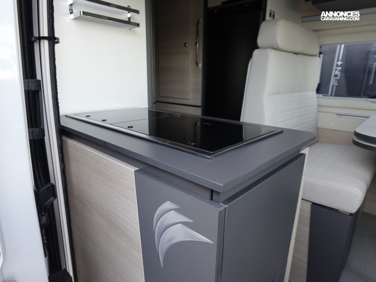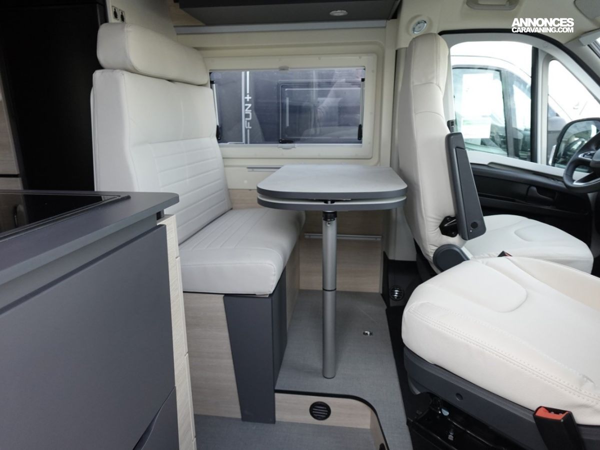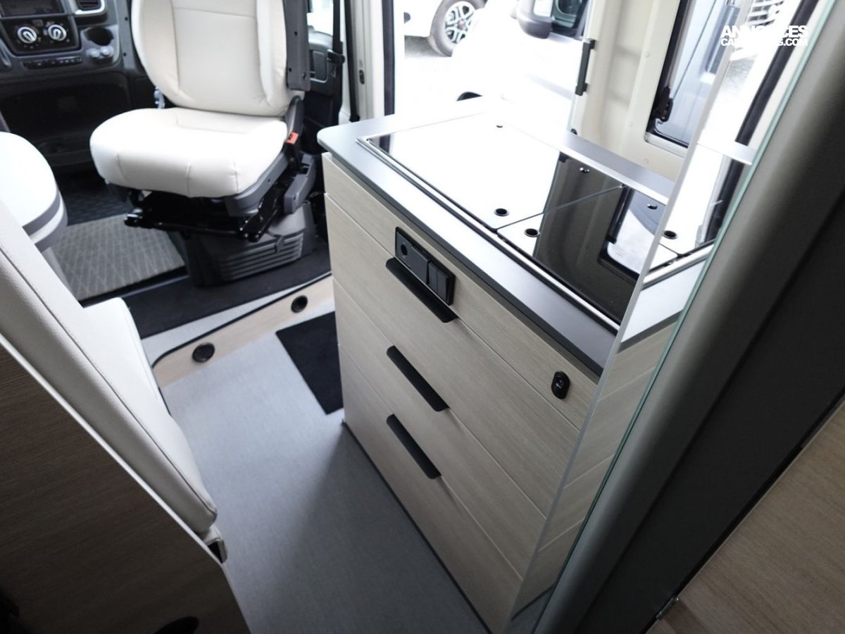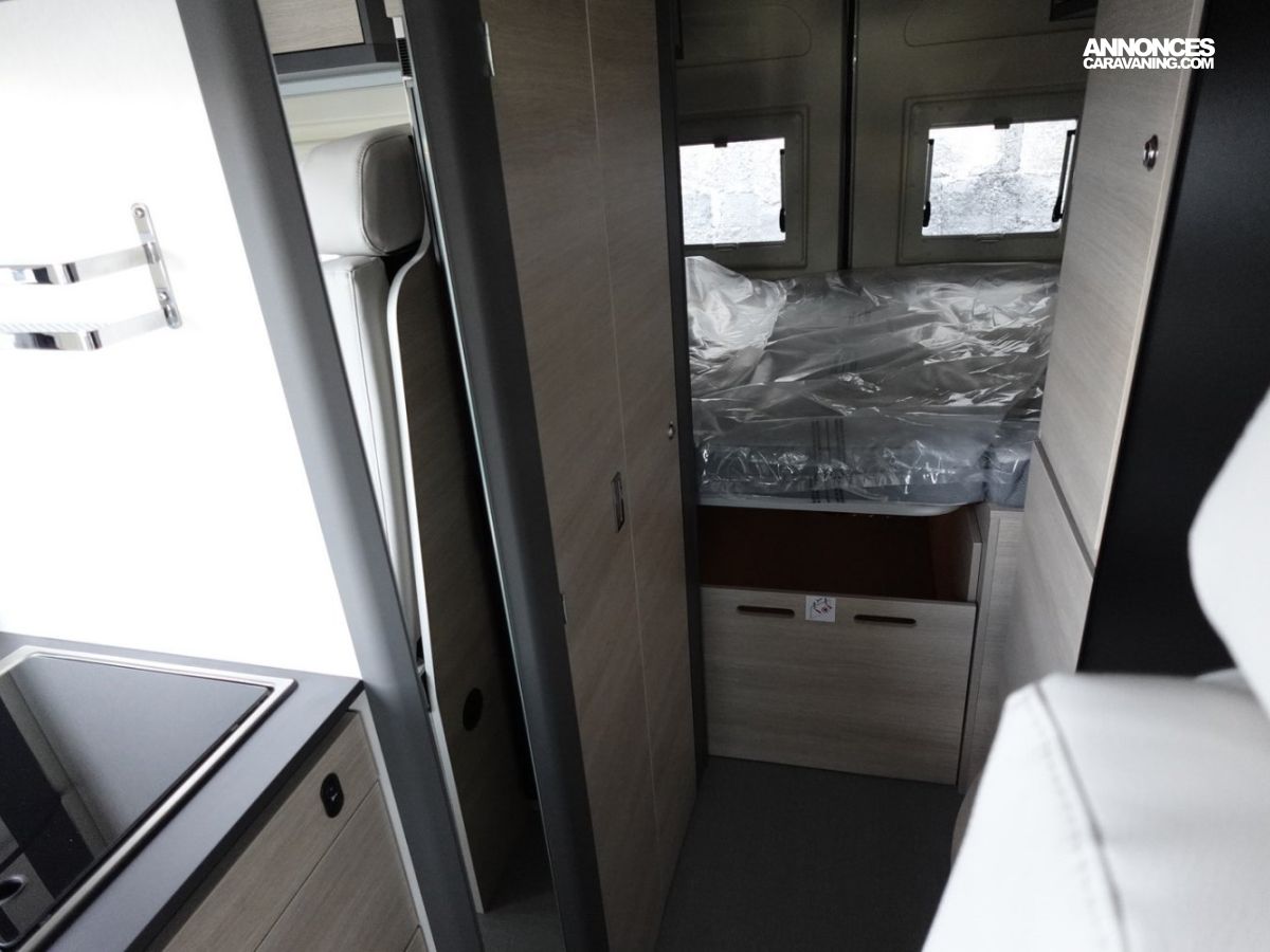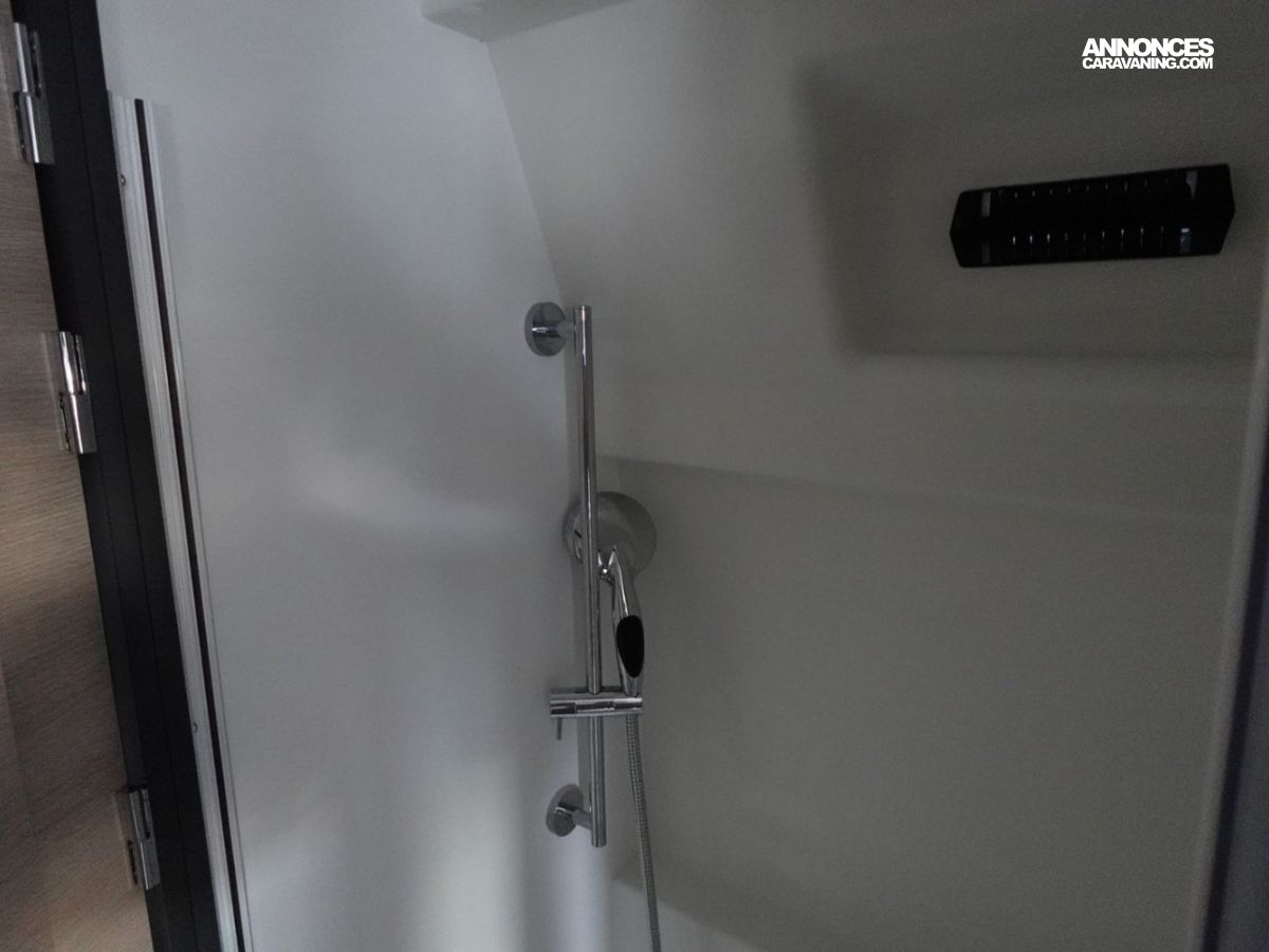 (Découpe cabine, Peinture pare-chocs avant couleur carrosserie, Commandes au volant pour la radio, Porte moustiquaire porte latérale, Stores pare-brise et baies cabine, Marchepied électrique, Phares antibrouillard avant, Autoradio, Ambiance simili cuir, Chauffage carburant Webasto, 2 batteries cellule, 2ème clef télécommandée, Gouttière porte latérale avec éclairage LED intégré, Eclairage d’ambiance meubles pavillon et chambre, Salle d’eau MODUL’SPACE, Grand lanterneau panoramique)