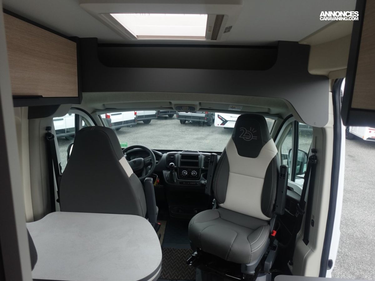 (Marchepied électrique, Stores pare-brise et baies cabine isothermes double plissés à cassette, Porte moustiquaire ouvrant latéral, Motorisation 140 CV, Châssis 3T500, Boite de vitesse automatique, Store extérieur, Batterie lithium, Panneau solaire 150 W)