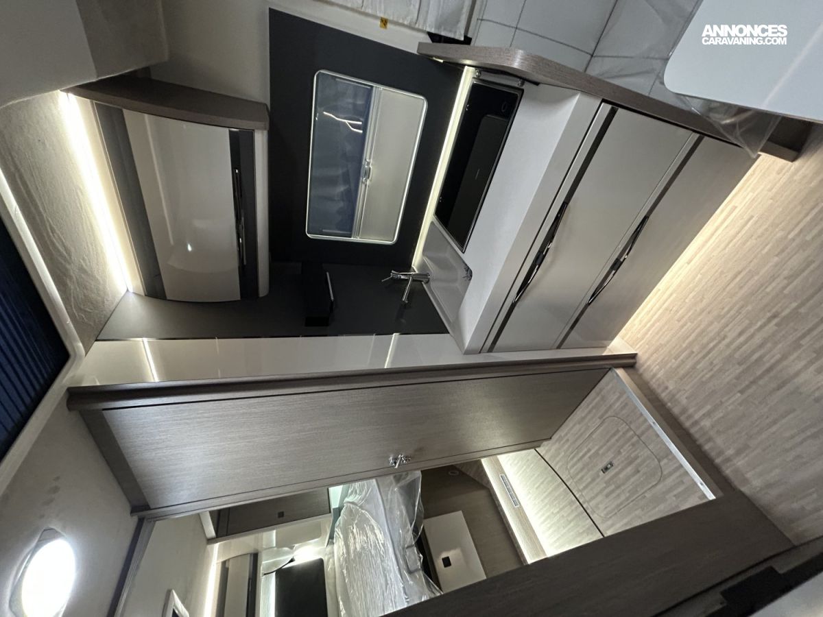 Pack ready to go qui comprend :, TPMS, RADIO DAB/BLUETOOTH "PIONEER", COMMANDE RADIO AU VOLANT, CAMERA DE RECUL, HABILLAGE TABLEAU DE BORD CHROME SATINE, VOLANT ET POMMEAU DE BOITE DE VITESSE CUIR, STORE OCCULTANT PLISSE CABINE, JA 16", ANTIBROUILLARD, CHAUFFAGE COMBI DIESEL / ELECTRIQUE, DUO CONTROL, EAUX USEES AVEC ISOLATION ET CAPTEUR ANTIGEL, SUPPORT TV, PORTE XL PREMIIUM AVEC FENTRE ET 2 POINTS SECURITE, CENTRALISTION, STORE EXTERIEUR 4.00M, LIT PAVILLON, PANNEAU SOLAIRE 200W, SMART TV 24", TRACTION+, MOUSTIQUAIRE PORTE CELLULE