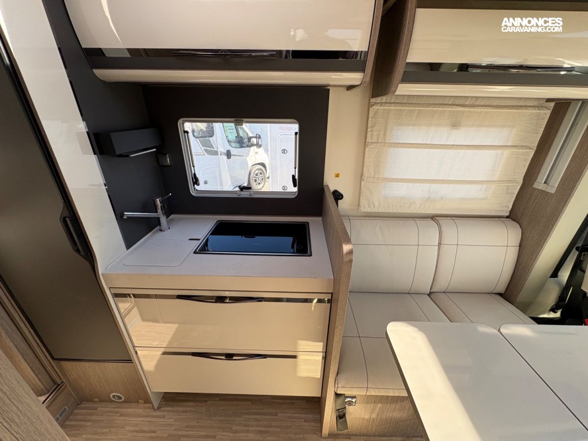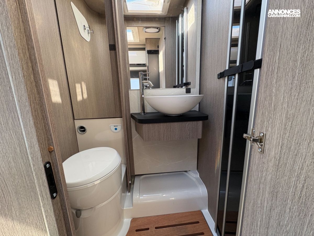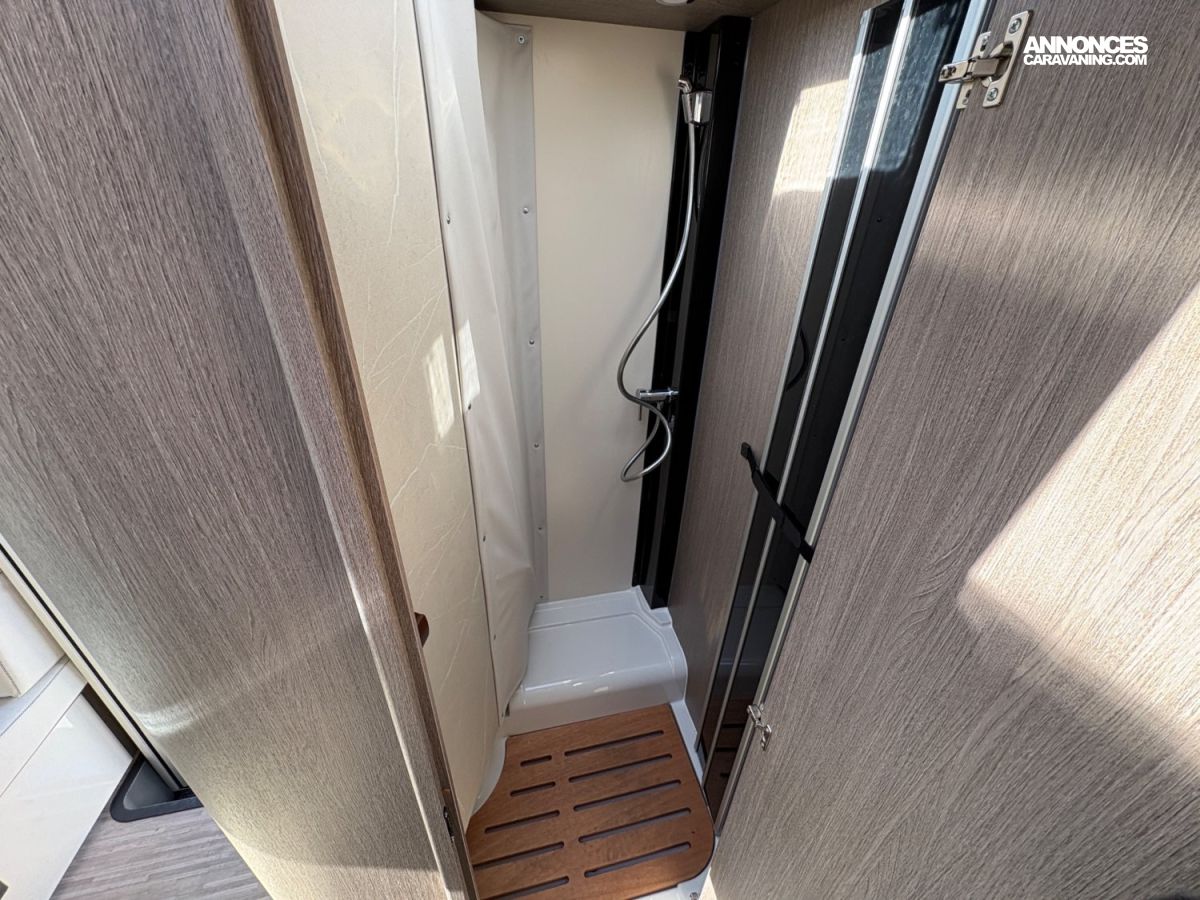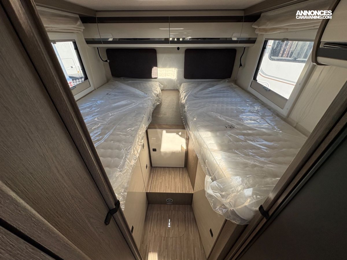 Le EDEN CAMP C 699 LG est un camping-car profilé conçu sur châssis Fiat Ducato équipé du moteur 2.2 Multijet de 140 chevaux, reconnu pour sa robustesse, son couple performant et sa consommation maîtrisée. Avec une longueur de 6,99 mètres, ce modèle se distingue par son excellente tenue de route et sa conception optimisée pour le confort et la fonctionnalité. Homologué 4 places carte grise et 4 couchages, il offre un aménagement intérieur ergonomique comprenant un grand lit jumeaux sur soute, un salon avant face face convivial, ainsi qu’une cuisine équipée et une salle d’eau modulable avec cabine de douche séparée. Le compartiment de soute spacieux permet le transport aisé de matériel volumineux, idéal pour les voyages longue durée.