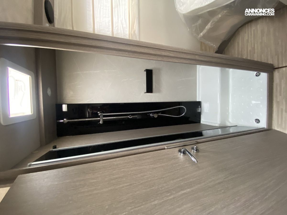 TRAPPE DE RANGEMENT SUPPLEMENTAIRE AU SOL, LIT ARRIERE FIXE/ REGLABLE EN HAUTEUR / COULISSANT, MATELAS EN MEMORY FOAM (LIT ARRIERE)/SOMMIER A LATTES, MARCHEPIED INTEGRE/ISOLE, GRILLES EVACUATION DES EAUX DANS LE GARAGE ARRIERE, KIT HOUSSE DE MATELAS ARRIERE, ECLAIRAGE INTERIEUR A LED, ABS / ESC, REGULATEUR DE VITESSE AVEC LIMITEUR DE VITESSE, FREIN DE STIATIONNEMENT ELECTRIQUE, PORTES DES PLACARD HAUTS EN FINITION BRILLANT, BAC A DOUCHE MOUSSE AVEC 2 BANDES, SOUTE CHAUFFEE, ECLAIRAGE EXTERIEUR A LED, PORTE-EPICES / PORTE-COUVERTS, ECLAIRAGE DAY RUNNING LIGHT, FEUX ARRIERE FULL LED AVEC CLIGNOTANTS DYNAMIQUES, PLAN DE CUISINE MONOBLOC EN PIERRE ACRYLIQUE, TABLE RABATTABLE, SIEGE PASSAGER AVEC CHAISE LONGUE, COUSSINS DECORATIFS, CLIMATISATION MANUELLE CABINE, AIRBAGS CONDUCTEUR ET PASSAGER