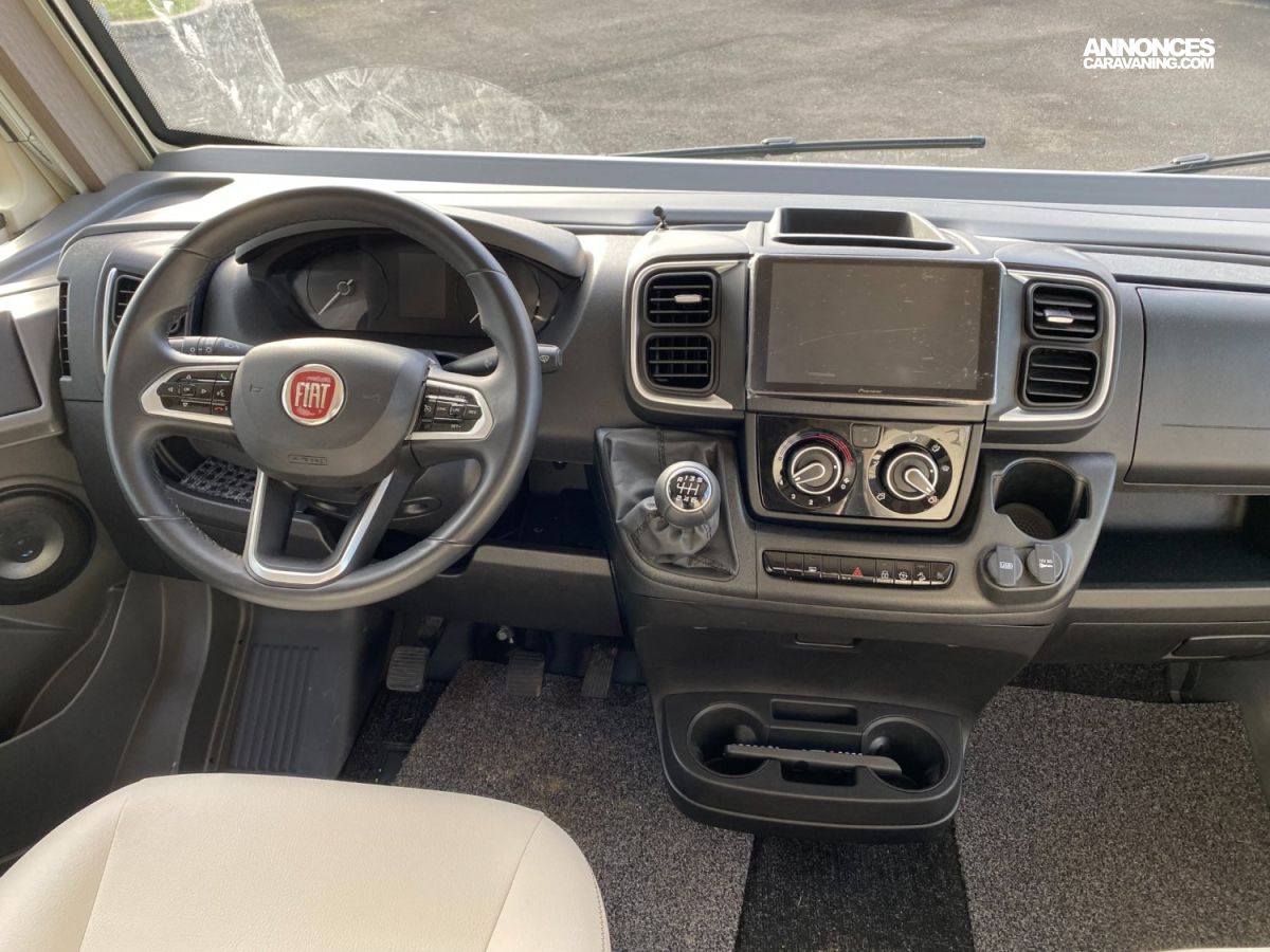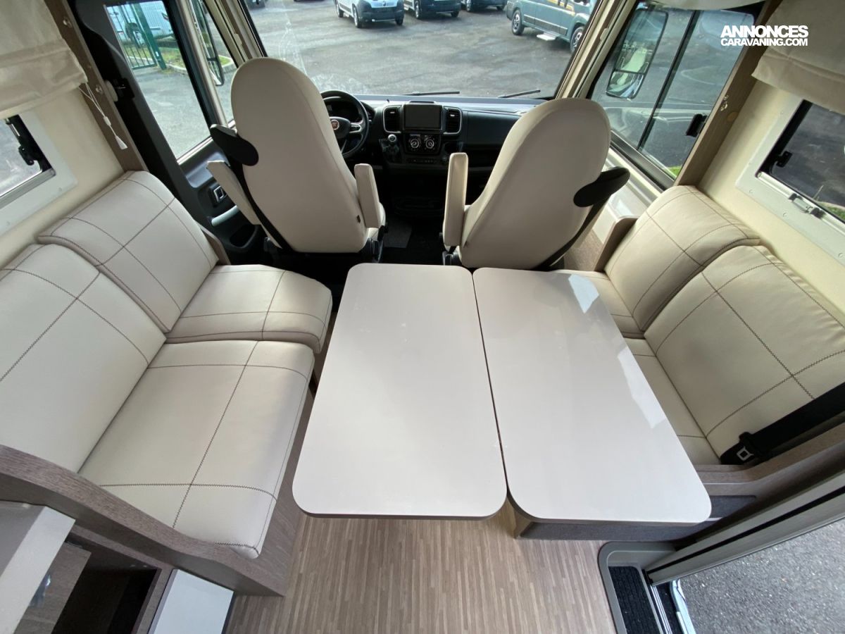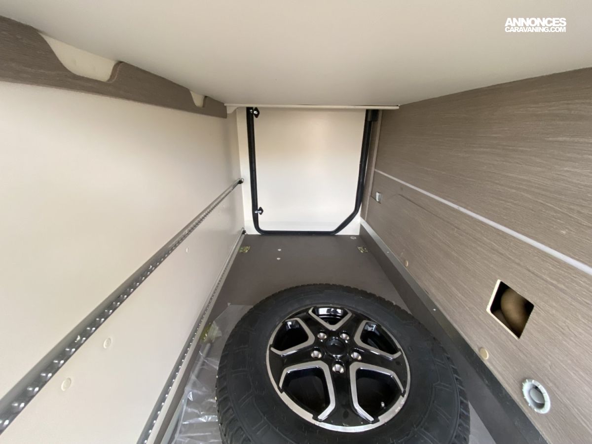 Siège passager avec chaise longue, Sièges cabine pivotants, Sièges recouverts de tissu, ABS / ESC, Airbags conducteur et passager, Bac à douche mousse avec 2 bondes, Grilles évacuation d'eau dans le garage arrière, Climatisation manuellle cabine, Table rabattable, Tiroirs sous le lit arrière, Douche extérieure, Eclairage DRL Day runnig light (feux de jour), Eclairage extérieur LED, Plan de cuisine monobloc en pierre acrylique, Lit de pavillon, Eclairage intérieur LED, Porte épices / Porte couverts, Portes des placards hauts en finition brillant, Régulateur de vitesse avec limiteur de vitesse, Trappe de rangement supplémentaire au sol, Feux AR Full LED avec clignotants dynamiques