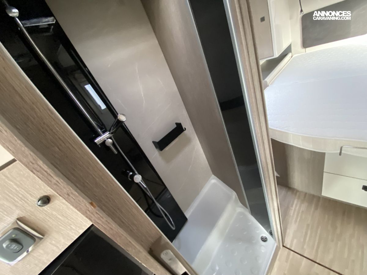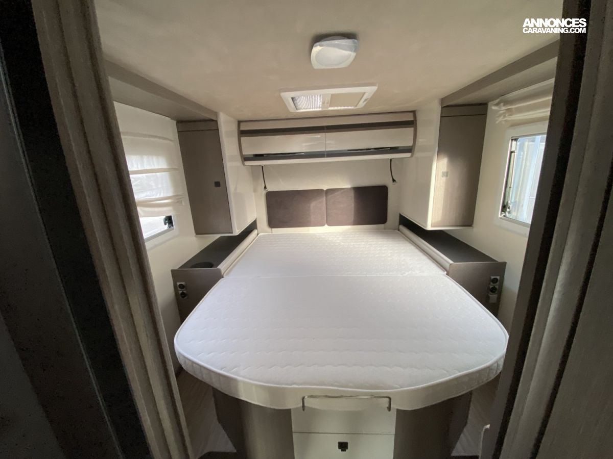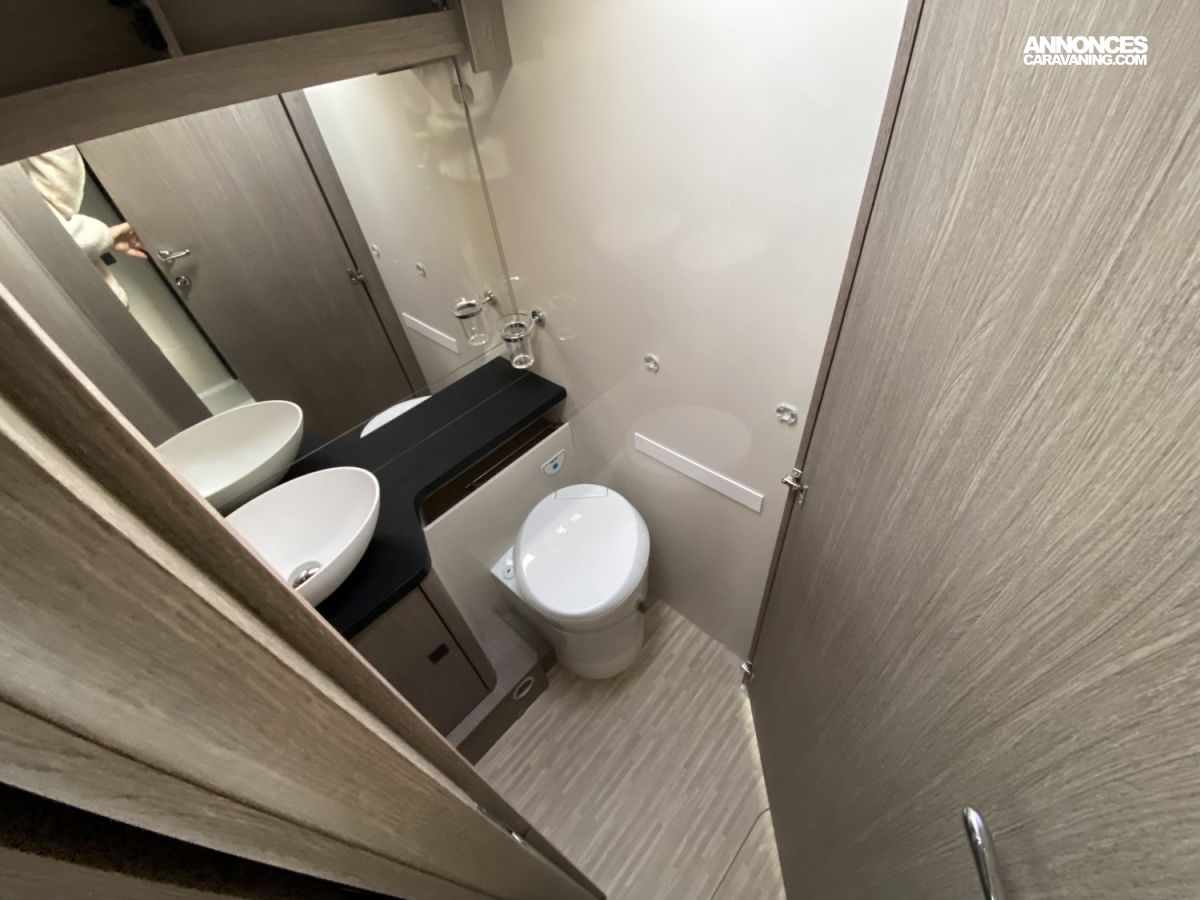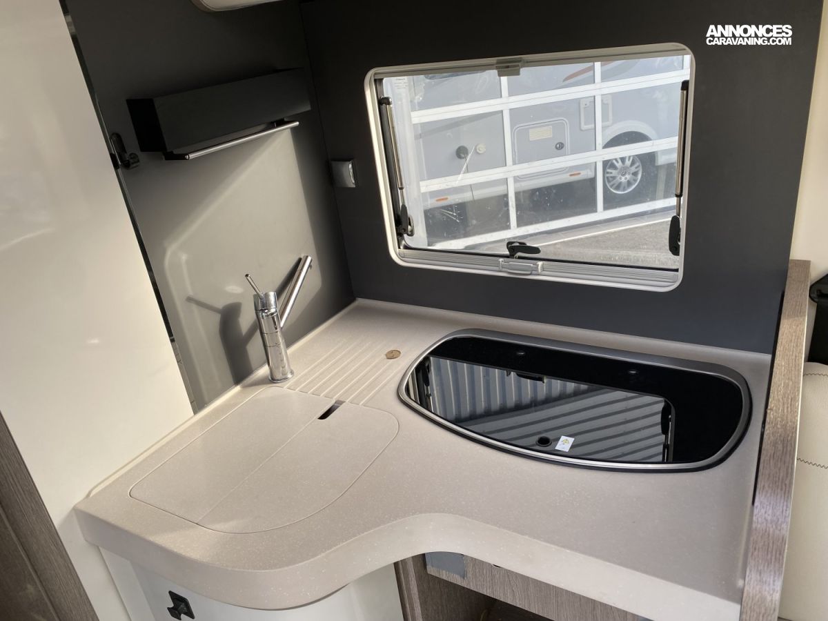 Siège passager avec chaise longue, Sièges cabine pivotants, Sièges recouverts de tissu, ABS / ESC, Airbags conducteur et passager, Bac à douche mousse avec 2 bondes, Grilles évacuation d'eau dans le garage arrière, Climatisation manuellle cabine, Table rabattable, Tiroirs sous le lit arrière, Douche extérieure, Eclairage DRL Day runnig light (feux de jour), Eclairage extérieur LED, Plan de cuisine monobloc en pierre acrylique, Lit de pavillon, Eclairage intérieur LED, Porte épices / Porte couverts, Portes des placards hauts en finition brillant, Régulateur de vitesse avec limiteur de vitesse, Trappe de rangement supplémentaire au sol, Feux AR Full LED avec clignotants dynamiques