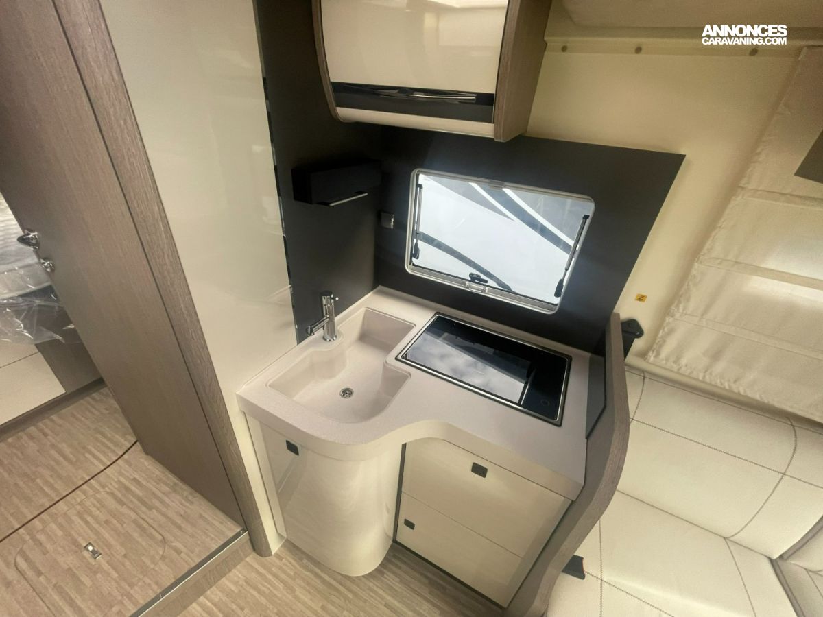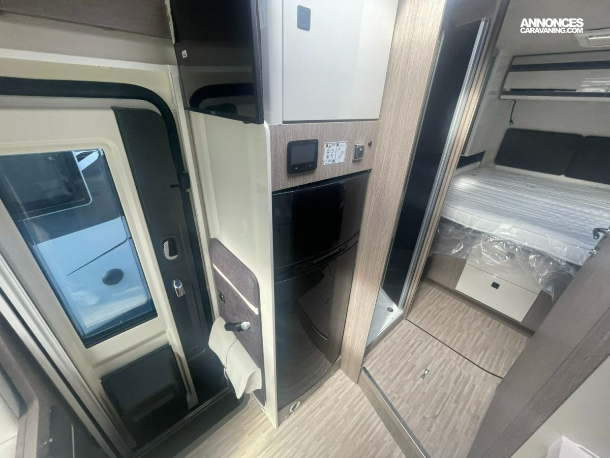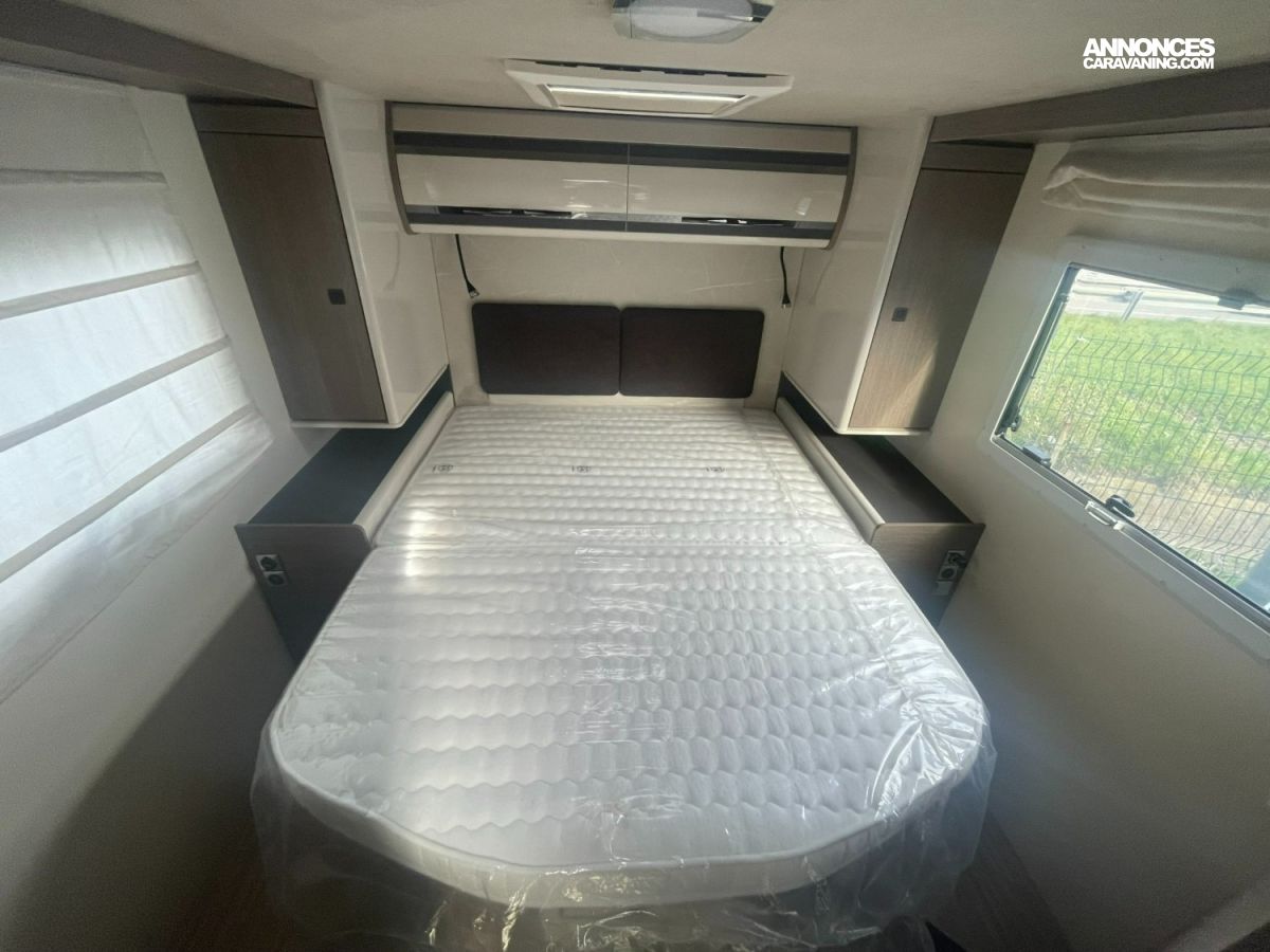 PANNEAU SOLAIRE 200W, MOUSTIQUAIRE PORTE CELLULE, RADIO DAB PIONEER, TPMS ET TRACTION +, VOLANT + POMMEAU + LEVIER DE VITESSE EN CUIR, COMMANDES AU VOLANT, HABILLAGE TABLEAU DE BORD CHROME SATINE, ISOFIX, CHAUFFAGE COMBI GAZ / ELECTRIQUE 6KW, PORTE XL, RESERVOIR EAUX USEES AVEC ISOLATION ET CAPTEUR ANTIGEL, ANTIBROUILLARD AVANT, CAMERA DE RECUL, OCCULTANTS CABINE PAR STORES PLISSES, SMART TV + SUPPORT, STORE, JANTES ALLIAGE 16 POUCES, FERMETURE CENTRALISÉE, LIT DE PAVILLON, I NET TRUMA + FONCTIONS PRINCIPALES, DETENDEUR GAZ DUO CONTROL
