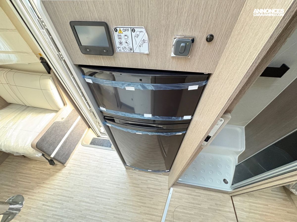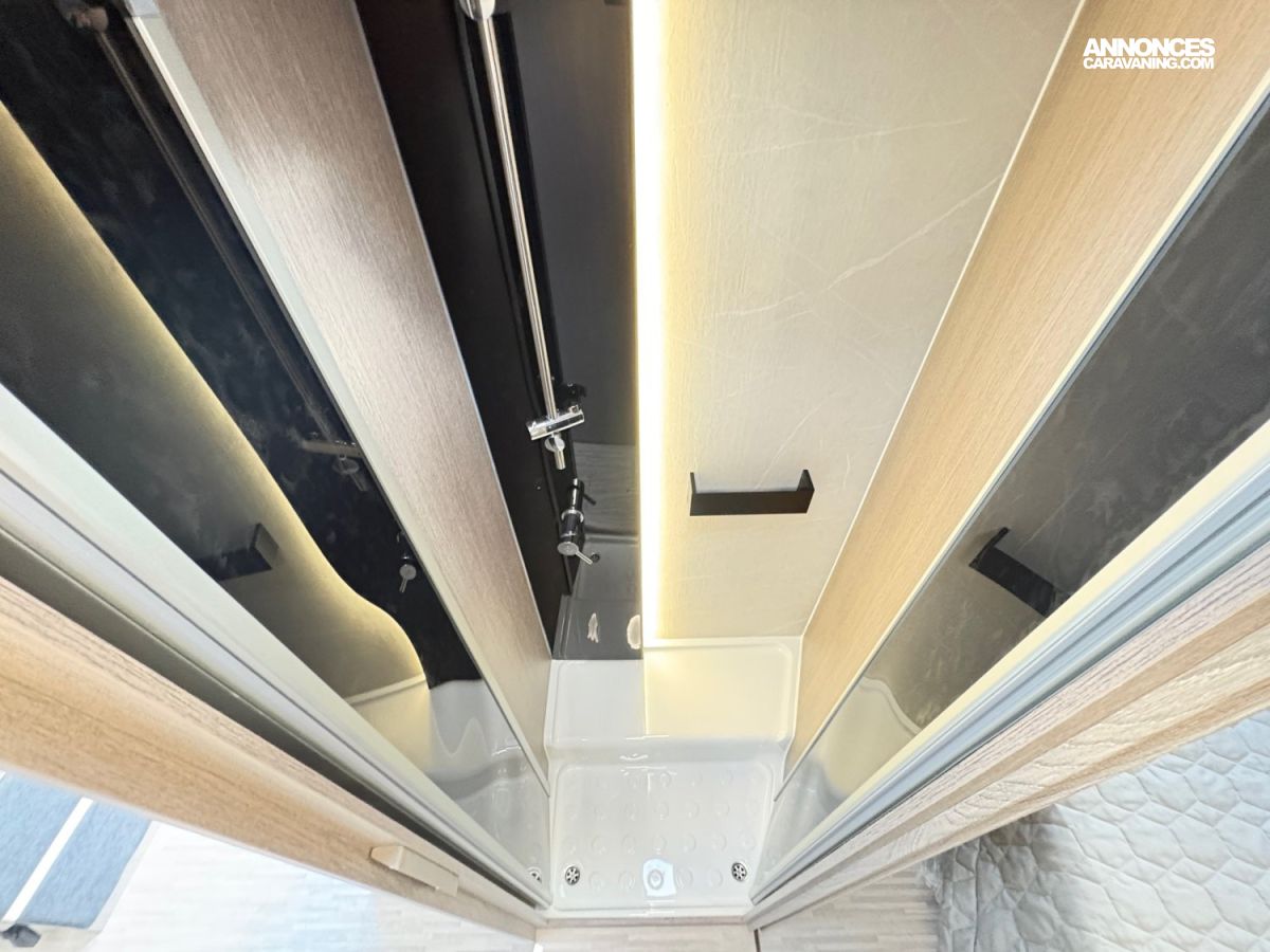 Le salon optimisé avec ouverture vers la cuisine, un repos confortable avec le lit jumeaux, des toilettes séparées avec grand dressing cumulé avec le pack Ready to Go