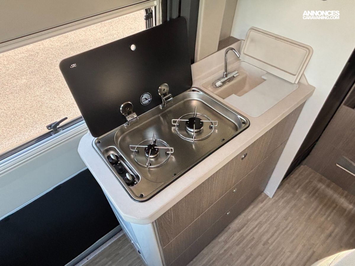 Le EDEN CAMP - VAN 599 LT est un fourgon compact et très fonctionnel, idéal pour les aventuriers modernes. Avec ses 5,99?m de long, il offre un agencement optimisé avec cuisine équipée et salle d’eau astucieuse. Parfait équilibre entre confort, maniabilité et liberté totale sur la route !