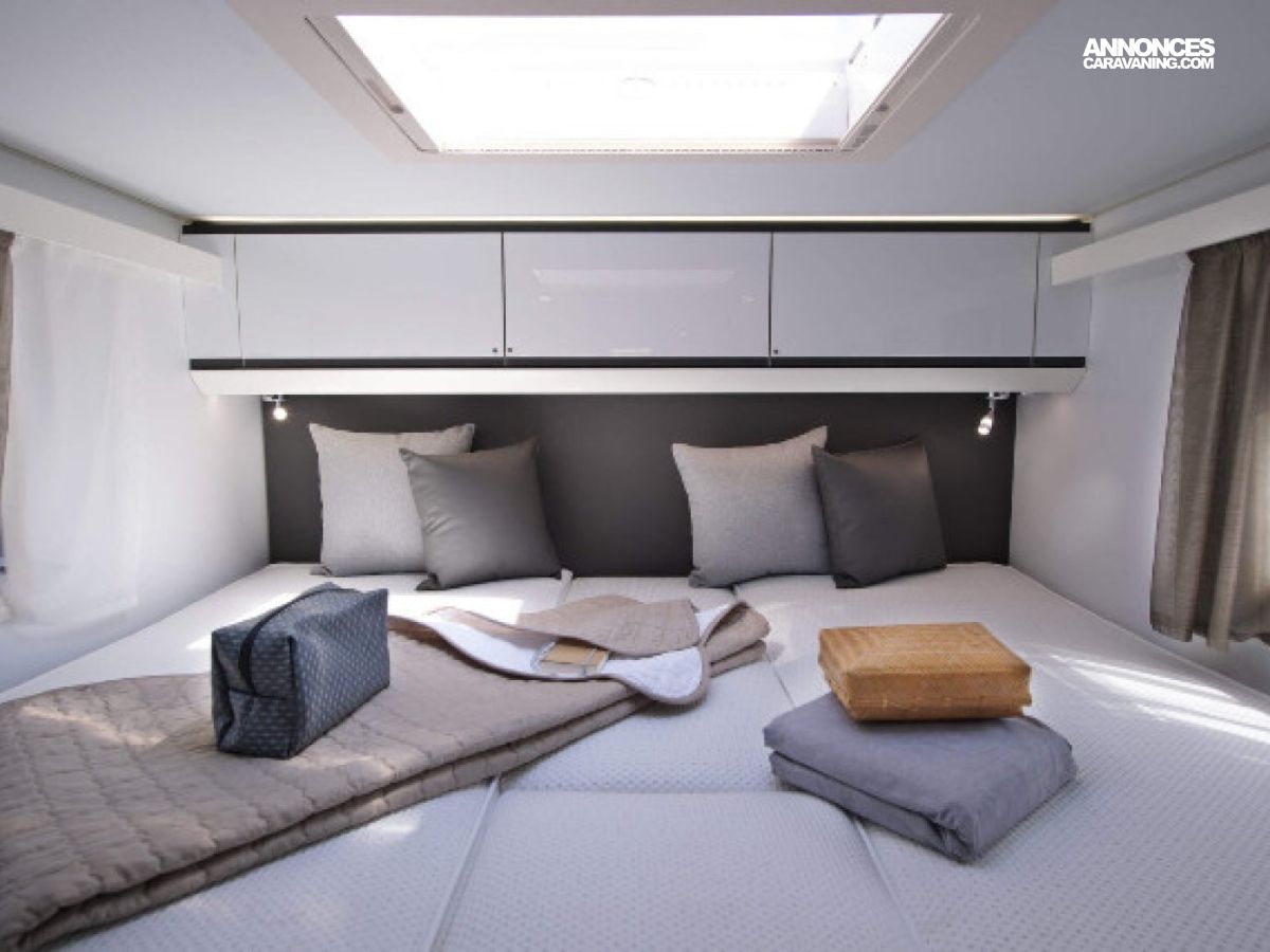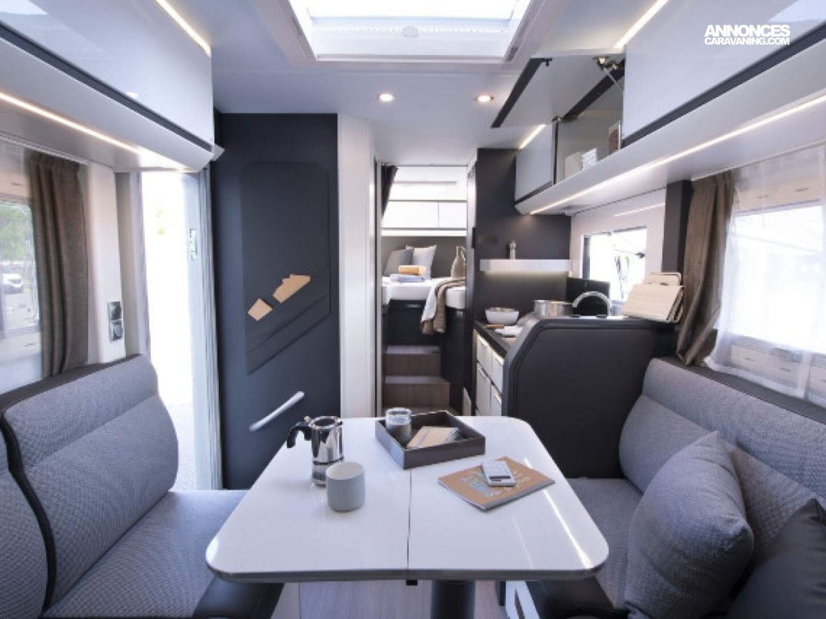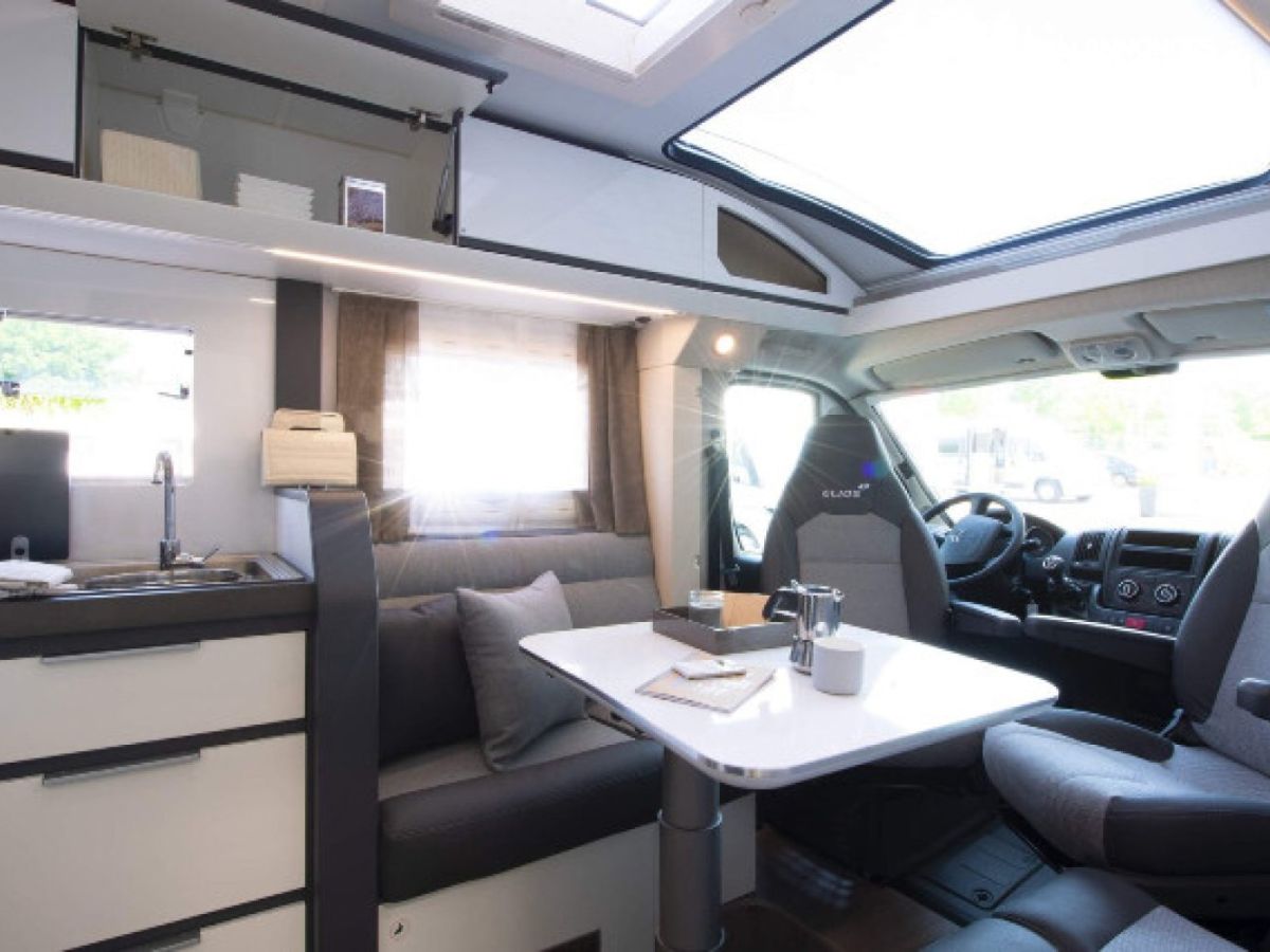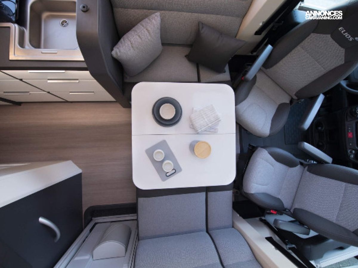 Regardez de près ce modèle 100% pratique avec ses superbes lits jumeaux, sa salle d'eau duplex et son espace salon avant accueillant avec toit panoramique. Vous roulerez probablement très bientôt vous aussi en Elios Carvan !