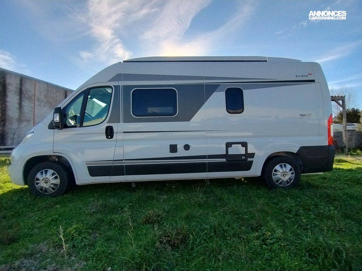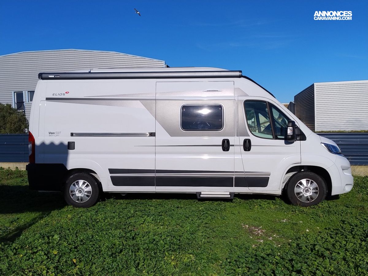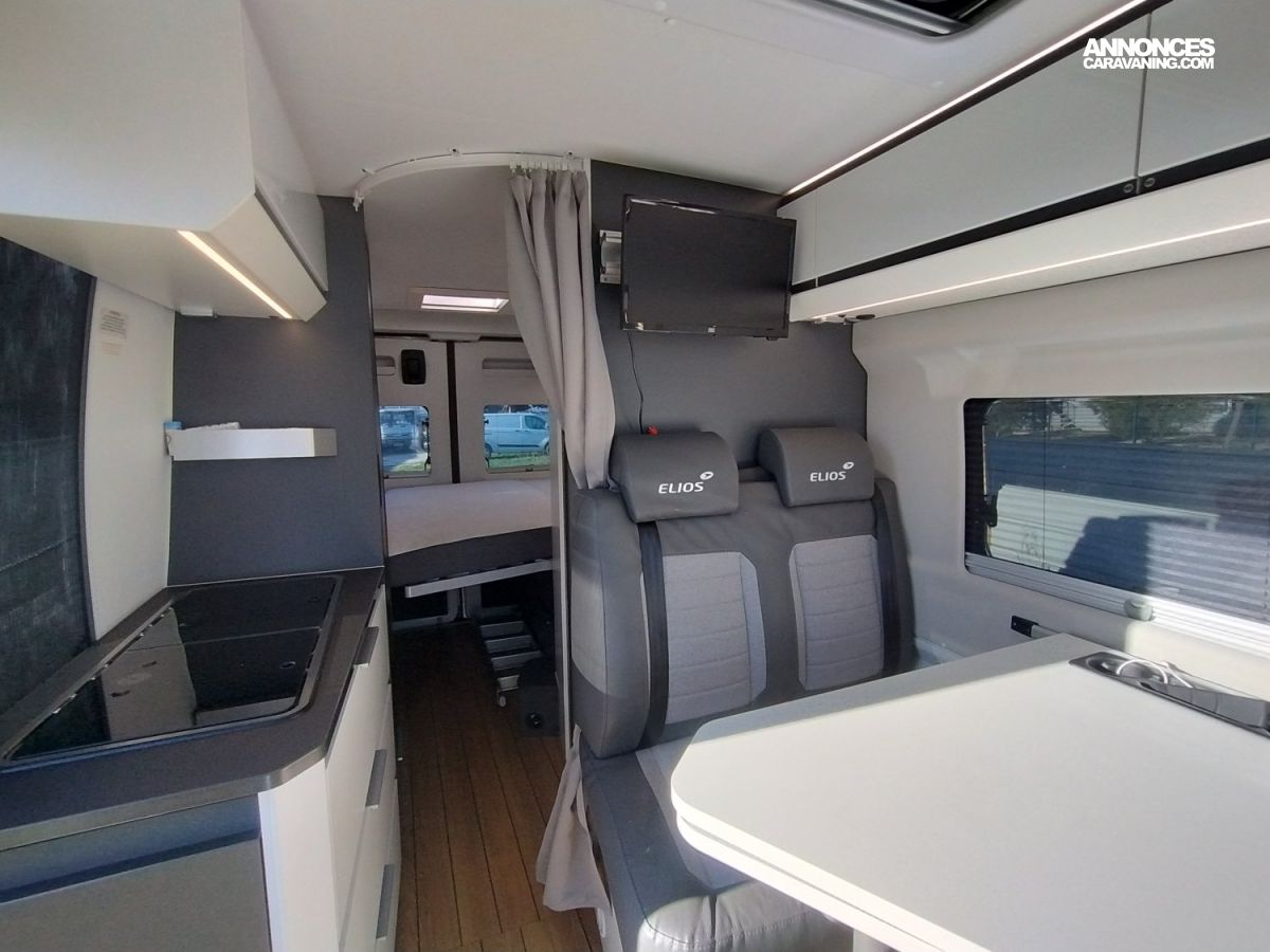 Ne ratez pas ce magnifique fourgon ELIOS 59T SKY-LIFT 4 couchages avec toit relevable comme neuf, 1° main et aux finitions haut de gamme du célèbre fabricant Slovène réputé pour la qualité de ses aménagements.