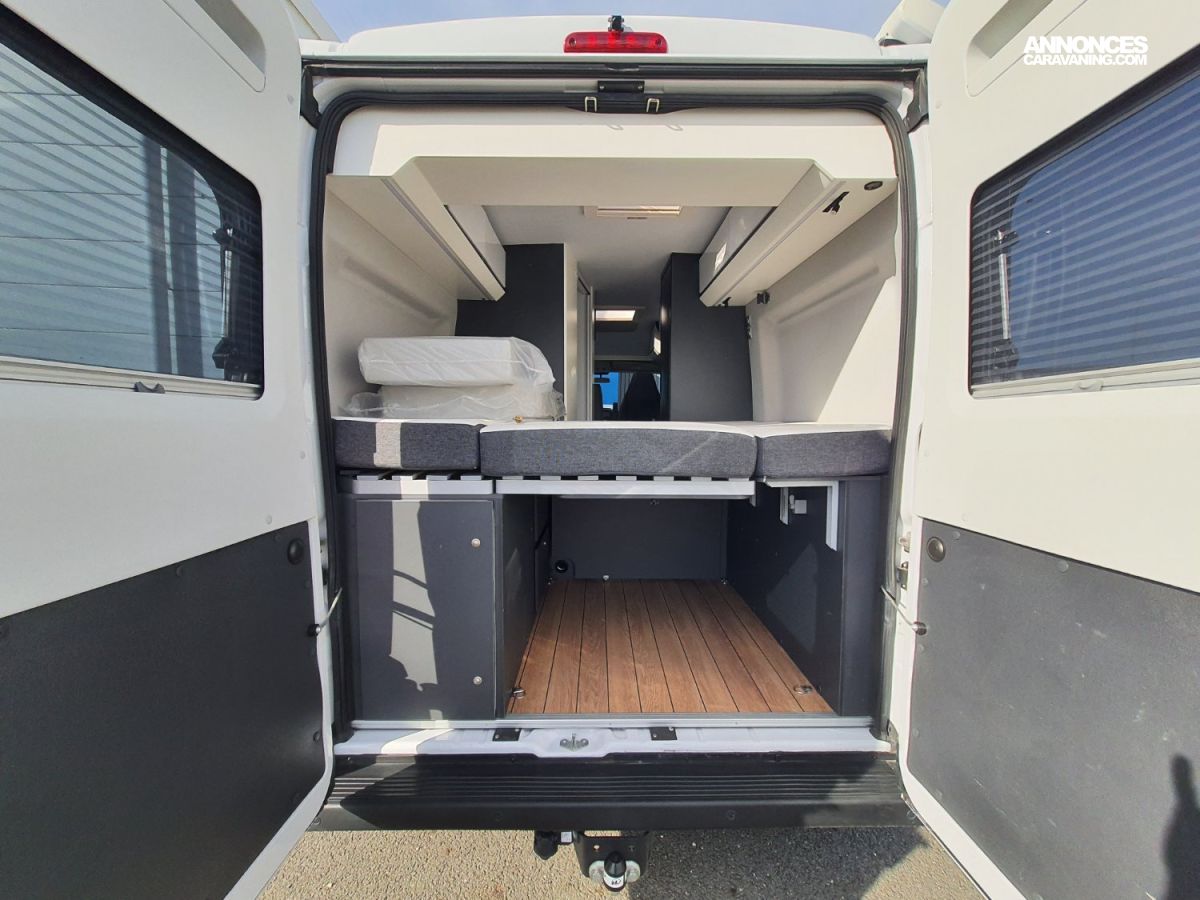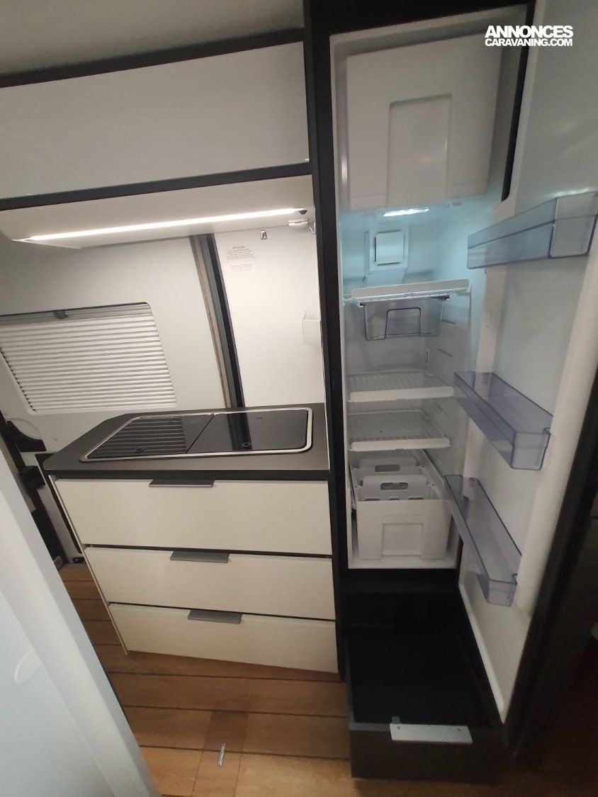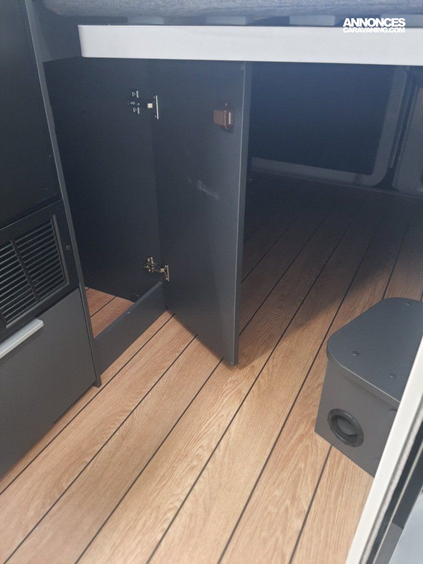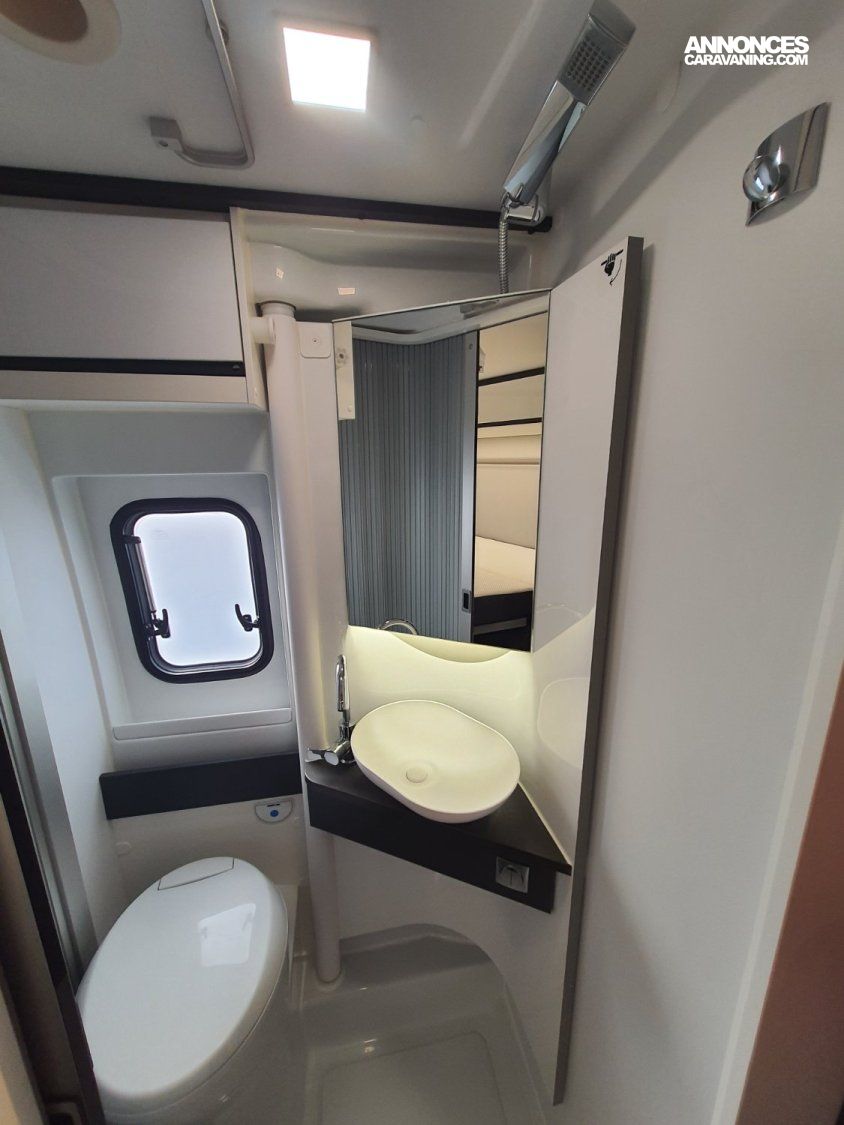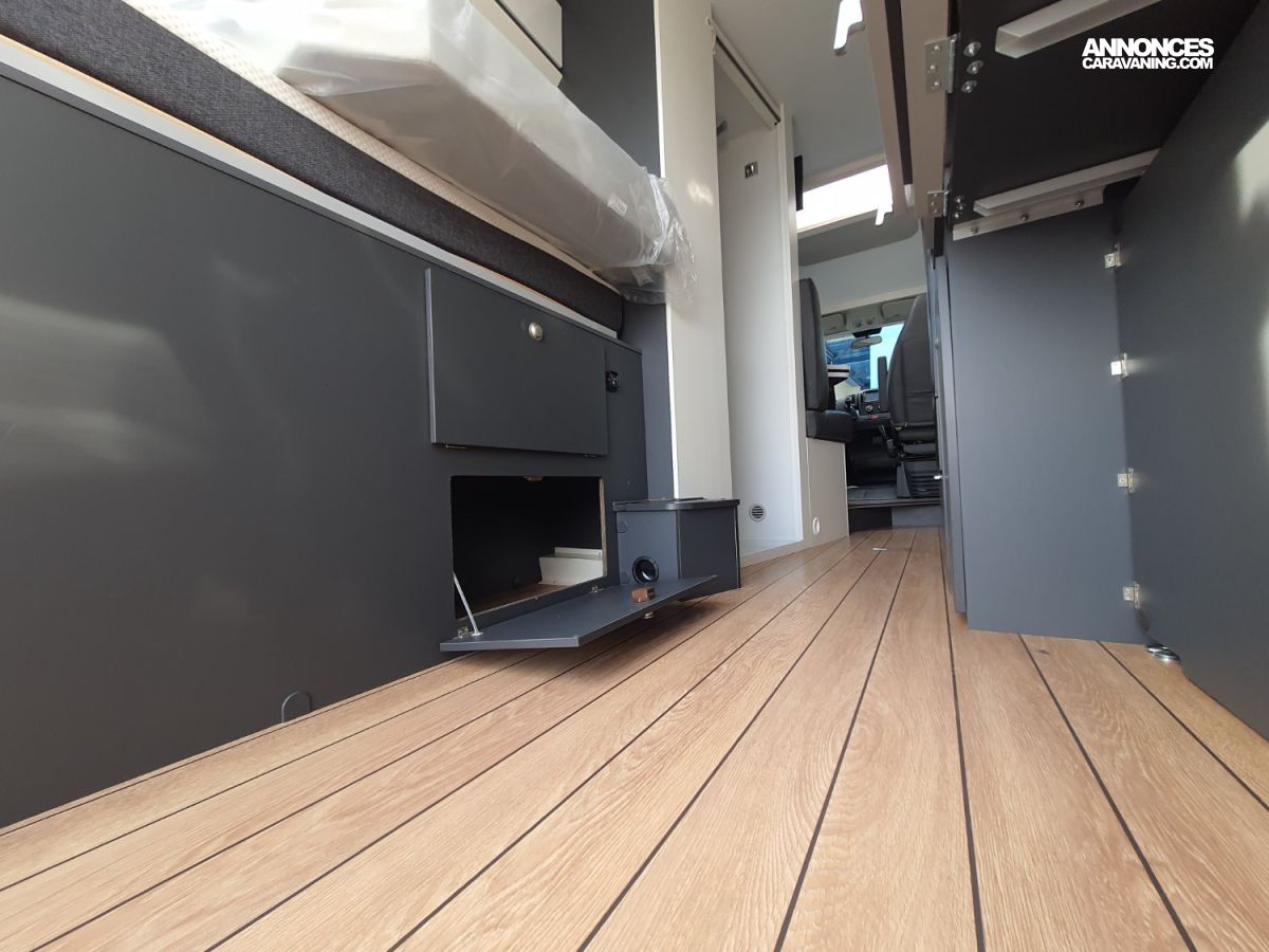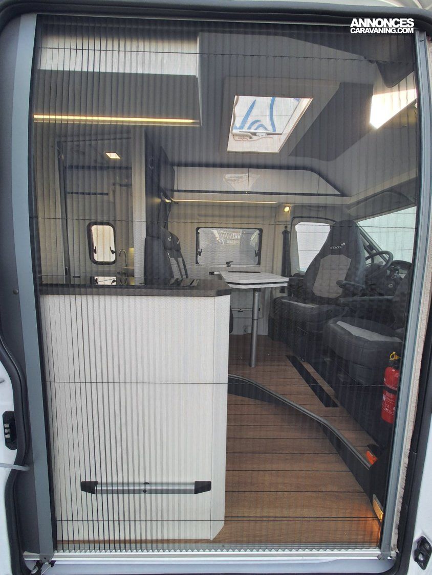 Le 59 T a tout pour lui. Sa longueur, en moins de six mètres, est idéale et permet un espace à bord confortable, depuis le salon jusqu’au couchage arrière. Son agencement bien pensé assure un espace dînette spacieux, une belle salle de bain et une cuisine très fonctionnelle, sans oublier de multiples rangements.