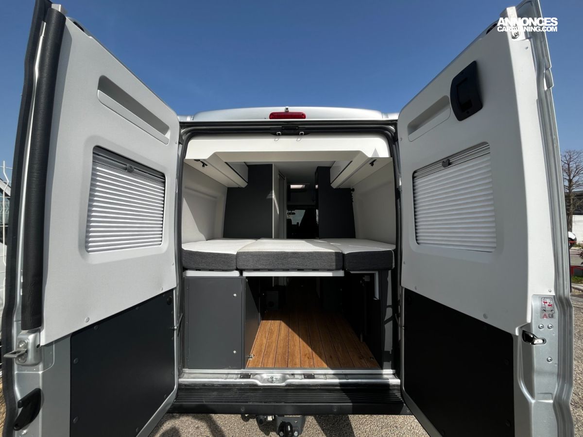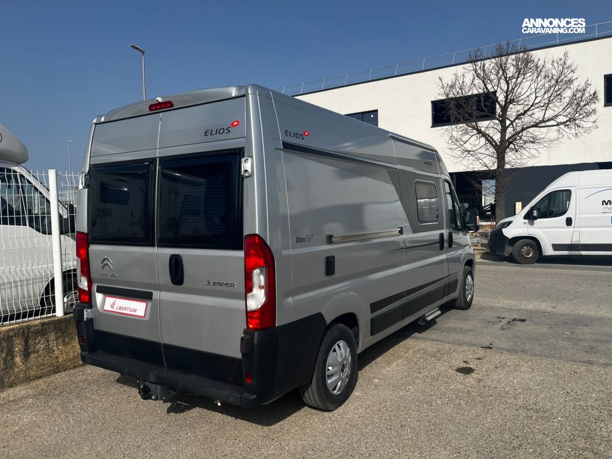 Fourgon aménagé Elios Van 59T sur porteur Citroën Jumper 2.2L 140 ch, boîte manuelle.