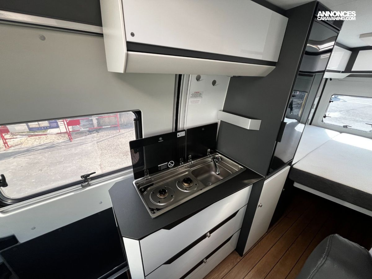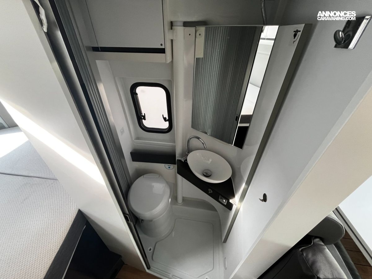 TV, panneau solaire, caméra de recul, antenne satellite automatique, stores cabine Remis, marchepied électrique, moustiquaire de porte, attelage, autoradio, 2 batteries cellule.