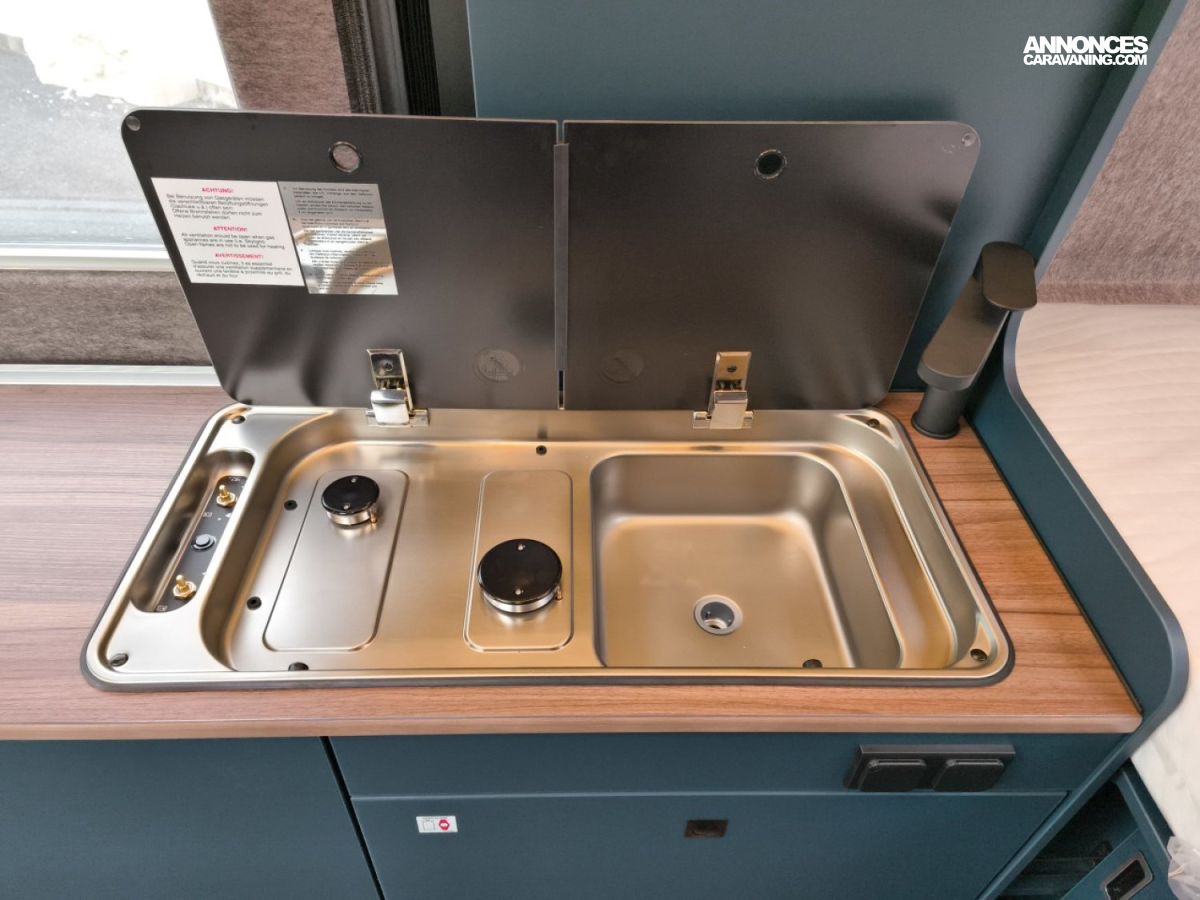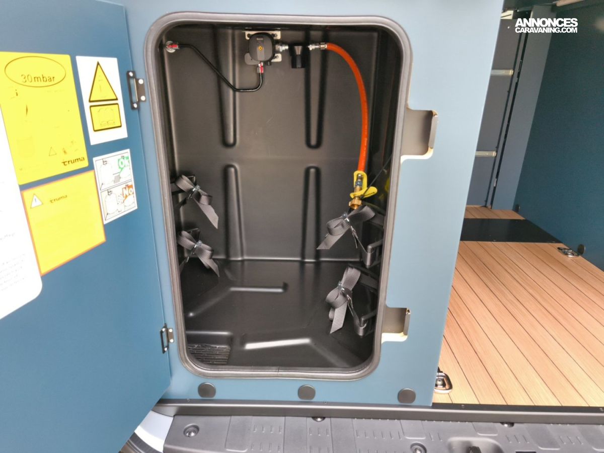 * Chauffage gazole Truma Combi 6 DE (6 000 W) avec chauffe-eau intégré de 10 l et résistances électriques 220 V (2 x 900 W),
