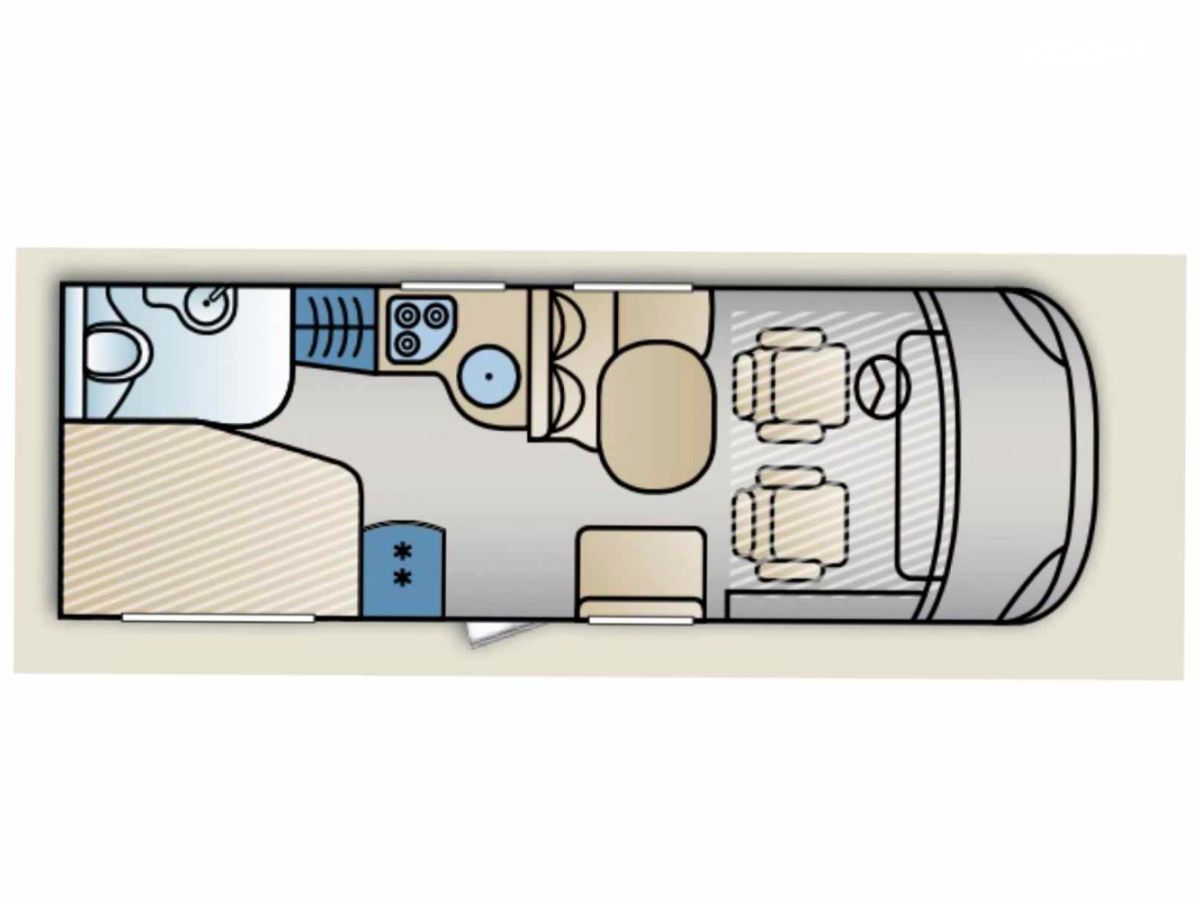 Avec une longueur compacte de7,06 m, il offre malgré tout un coin salon particulièrement grand, pouvant accueillir 5 à 6 personnes.