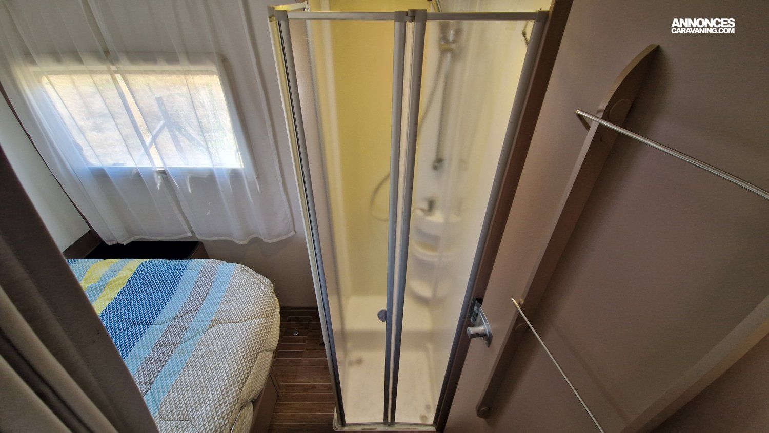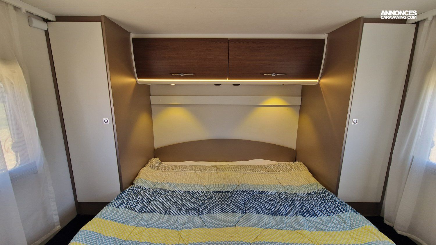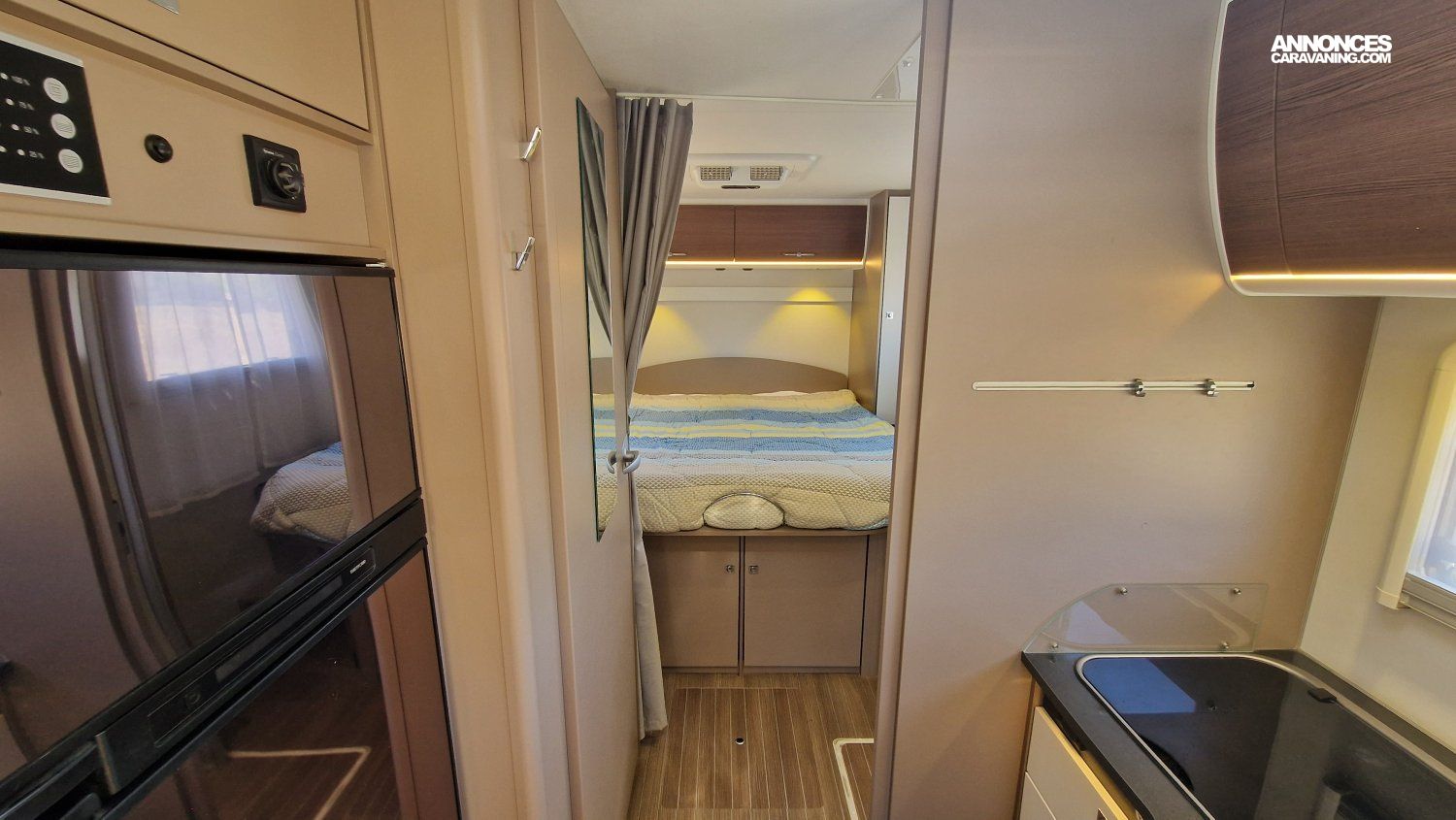 CHAUFFAGE COMBI TRUMA 6, STORE EXTERIEUR 4M, GAZINIERE 3 FEUX, CUISINE EN L, DOUCHE ET WC SEPARES, ECLAIRAGE LED, RAFRAICHISSEUR D' AIR, REFRIGERATEUR TRI MIX, STORES PLISSES DE CABINE, MARCHEPIED INTÉGRÉ