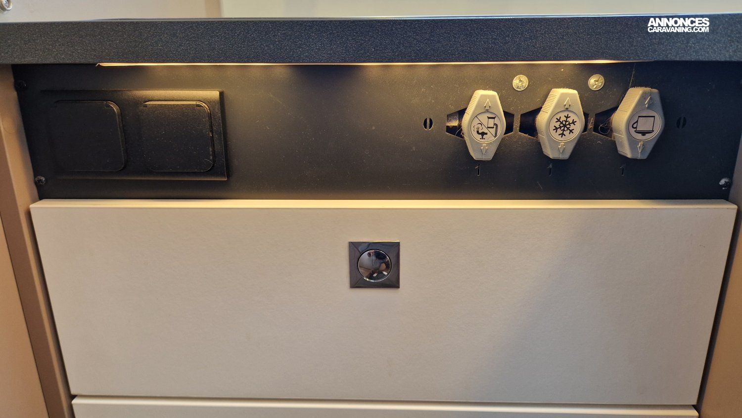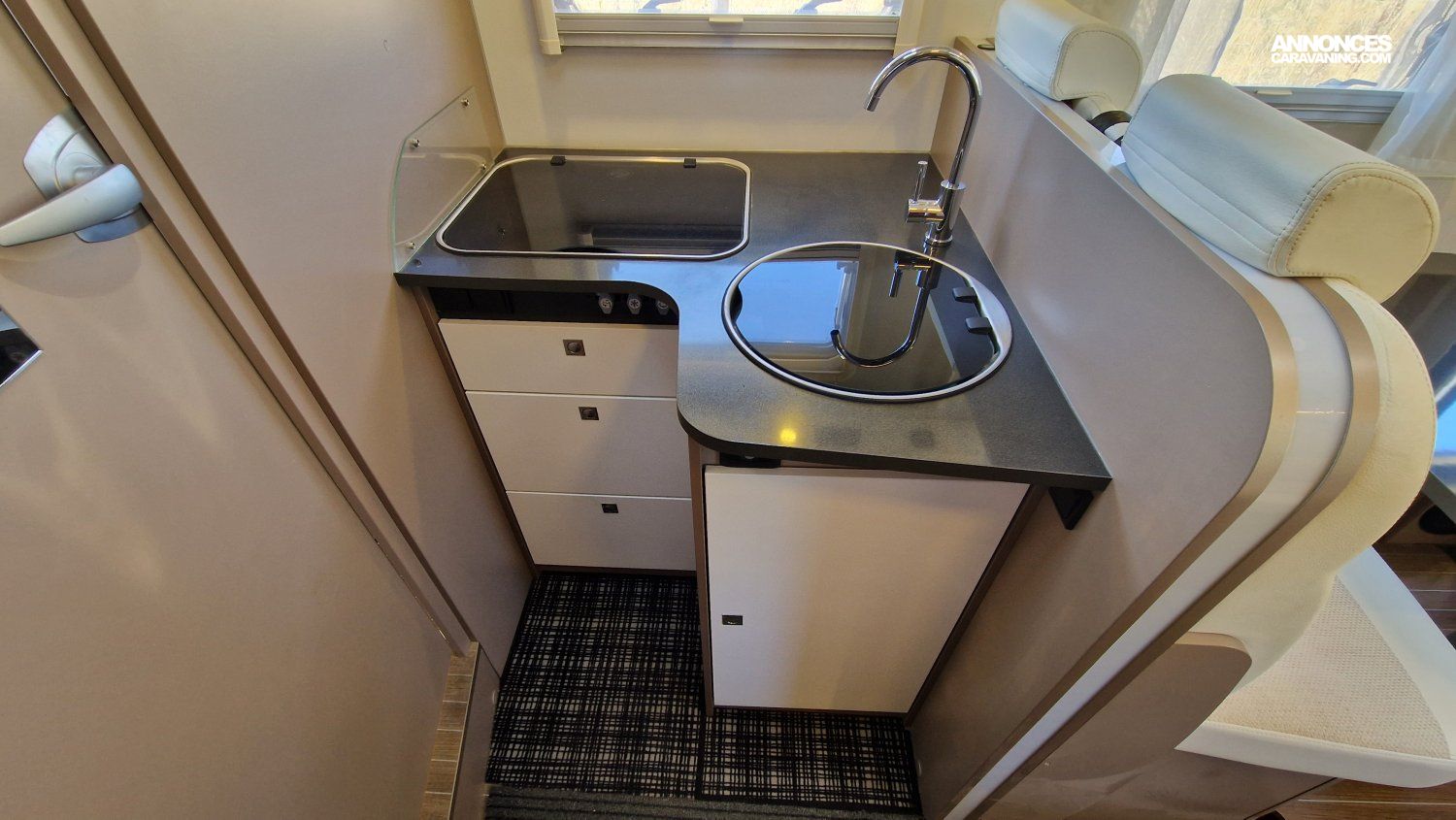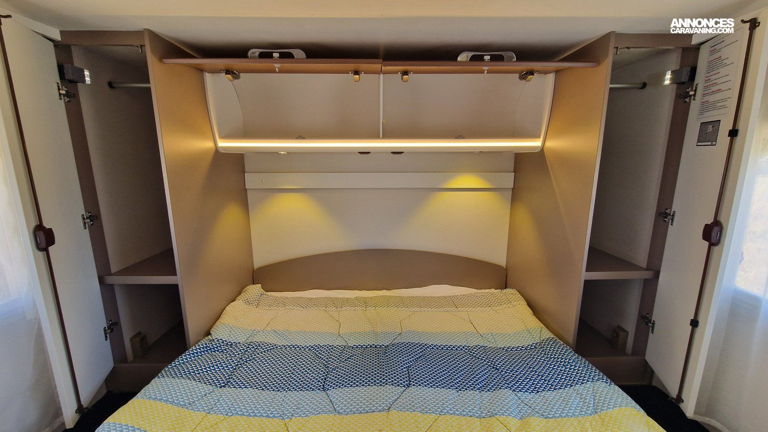 CHAUFFAGE COMBI TRUMA 6, STORE EXTERIEUR 4M, GAZINIERE 3 FEUX, CUISINE EN L, DOUCHE ET WC SEPARES, ECLAIRAGE LED, RAFRAICHISSEUR D' AIR, REFRIGERATEUR TRI MIX, STORES PLISSES DE CABINE, MARCHEPIED INTÉGRÉ
