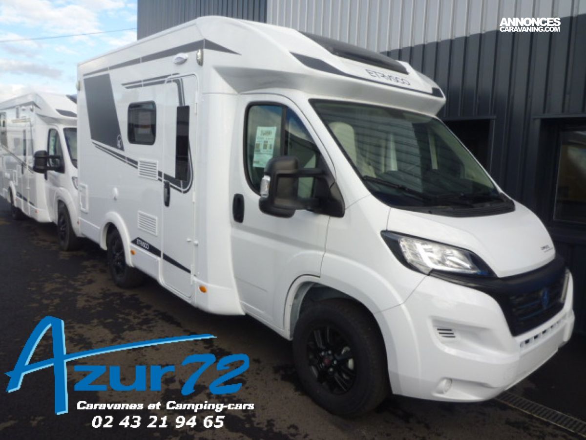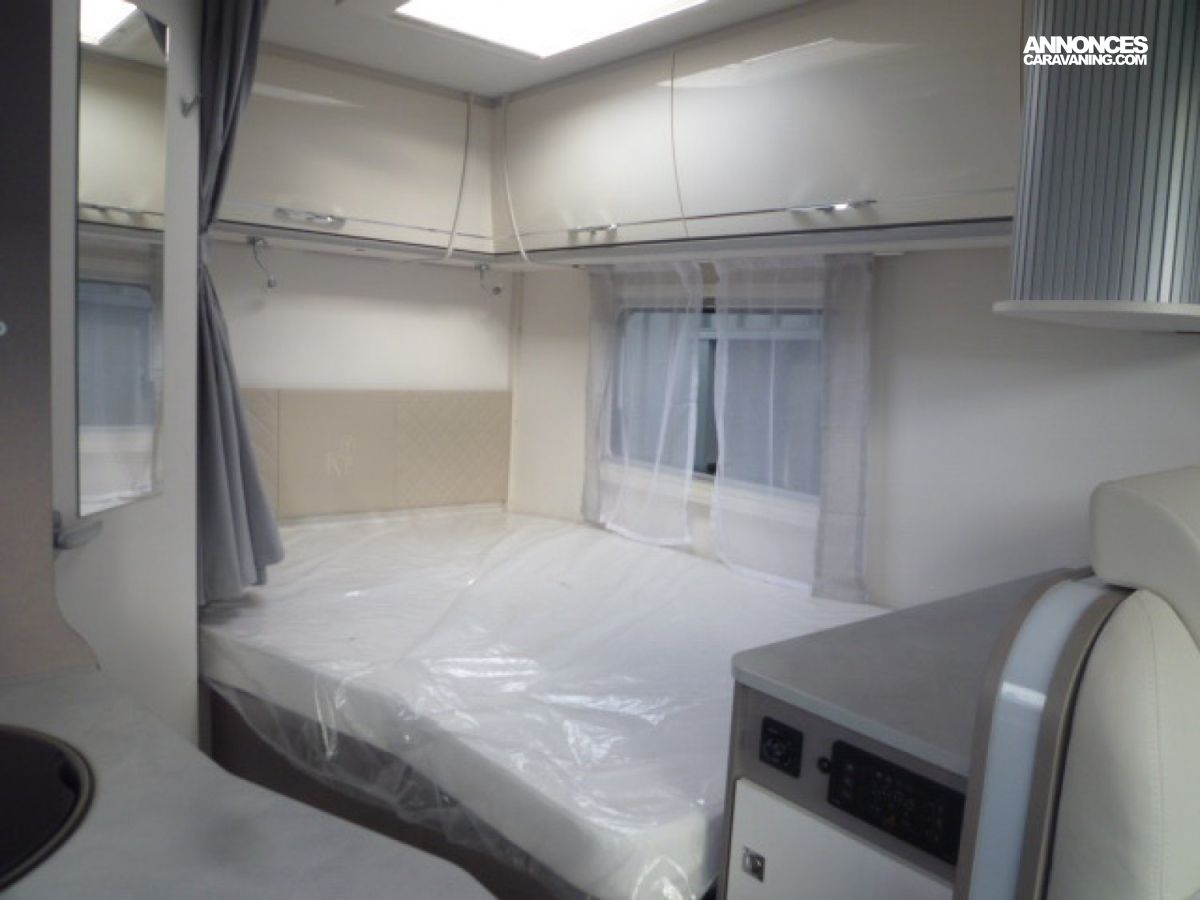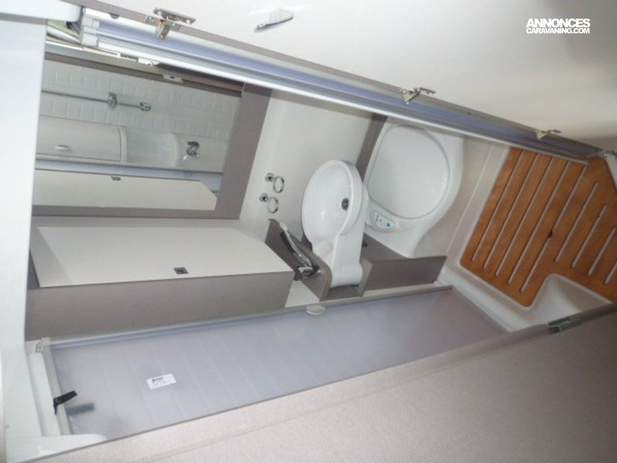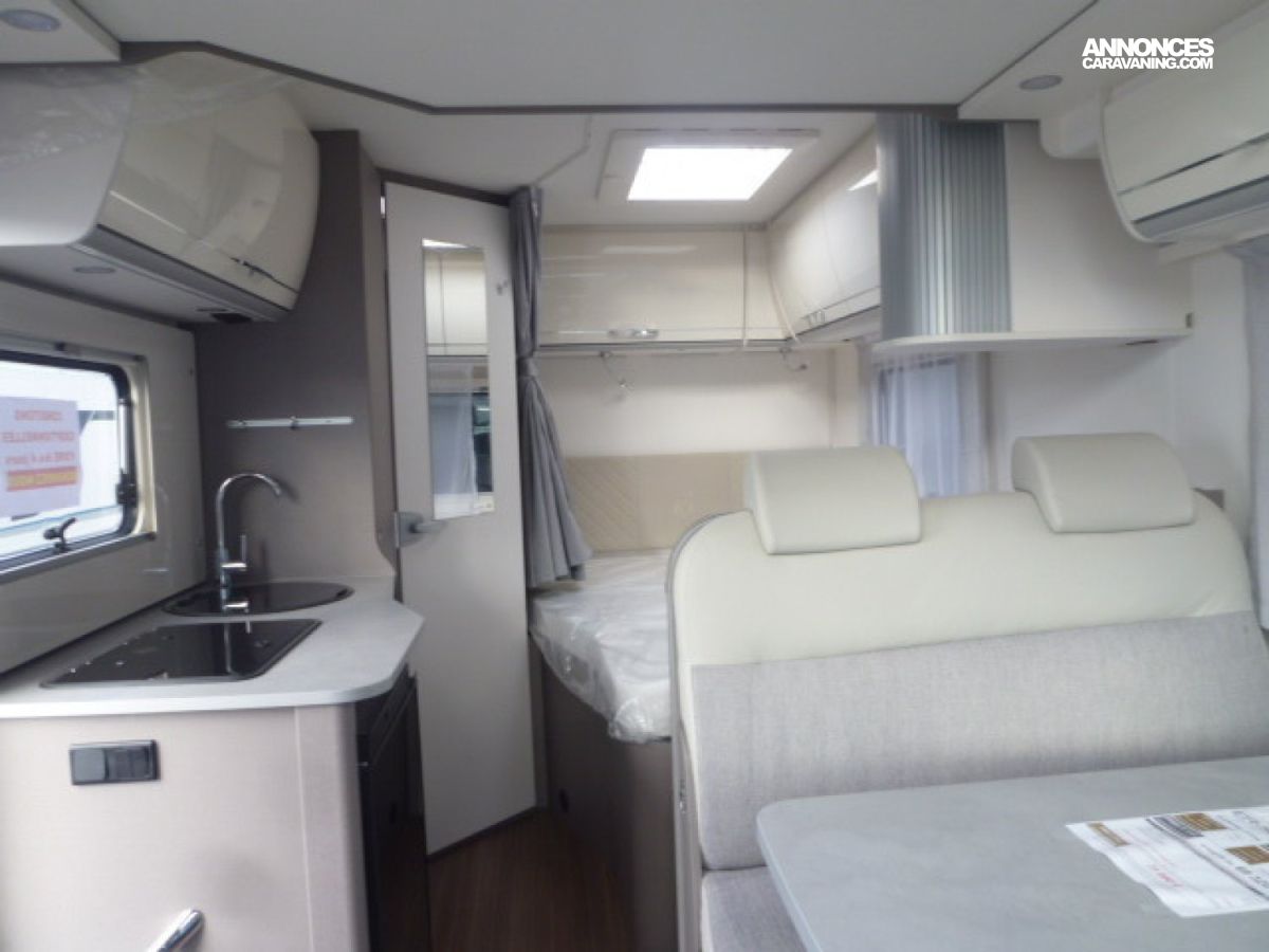 Cuisine en long, Douche modulable, Lit à la Française, lit pavillon, Salon avant sièges pivotants, WC Cassette.