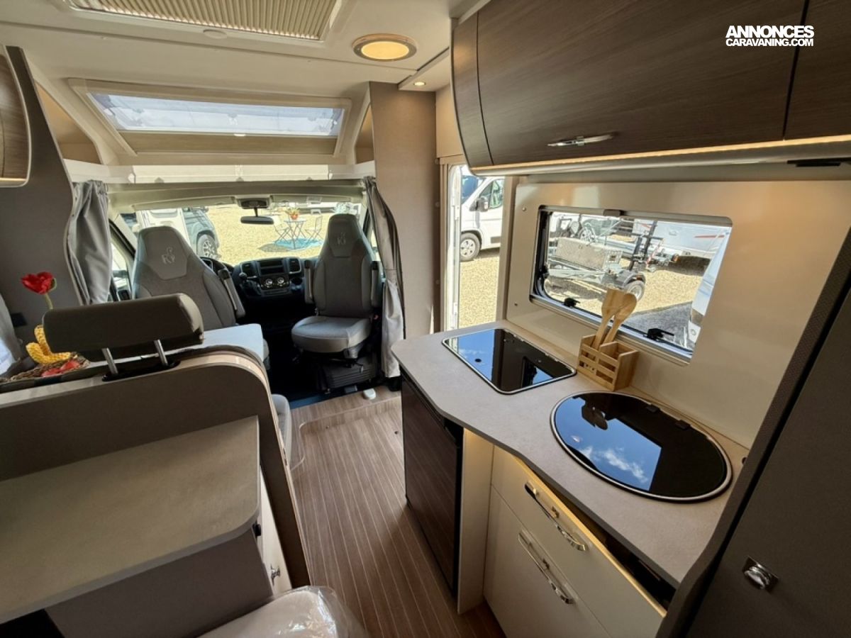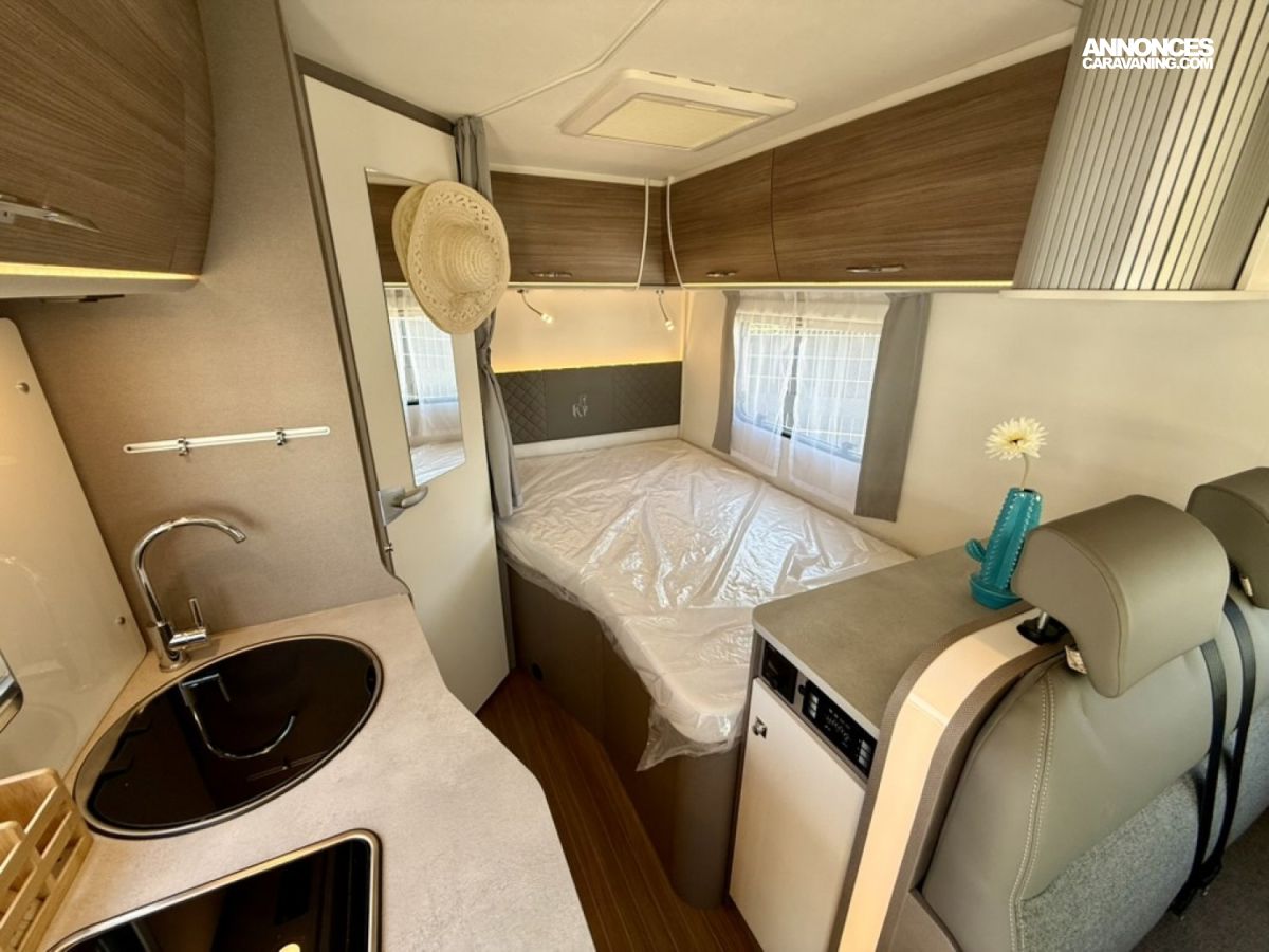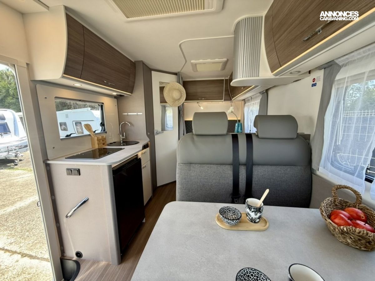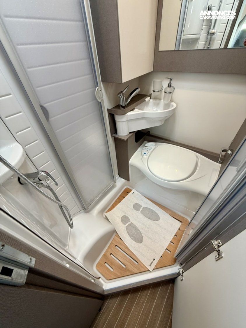 Pack Confort : miroir, caillebotis en bois dans la douche, Captain chair avec housses, prise électrique supplémentaire dans le placard de pavillon au-dessus du bloc cuisine, prise électrique dans le garage