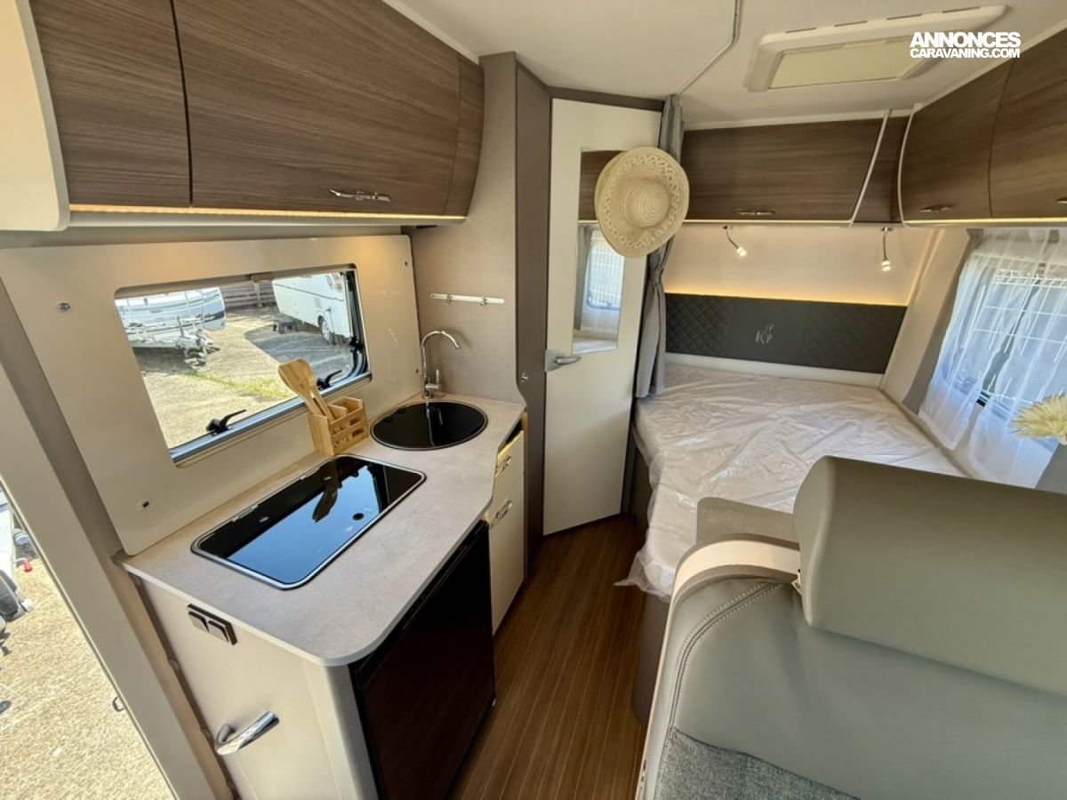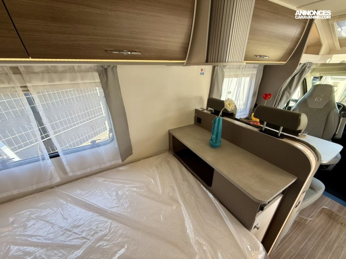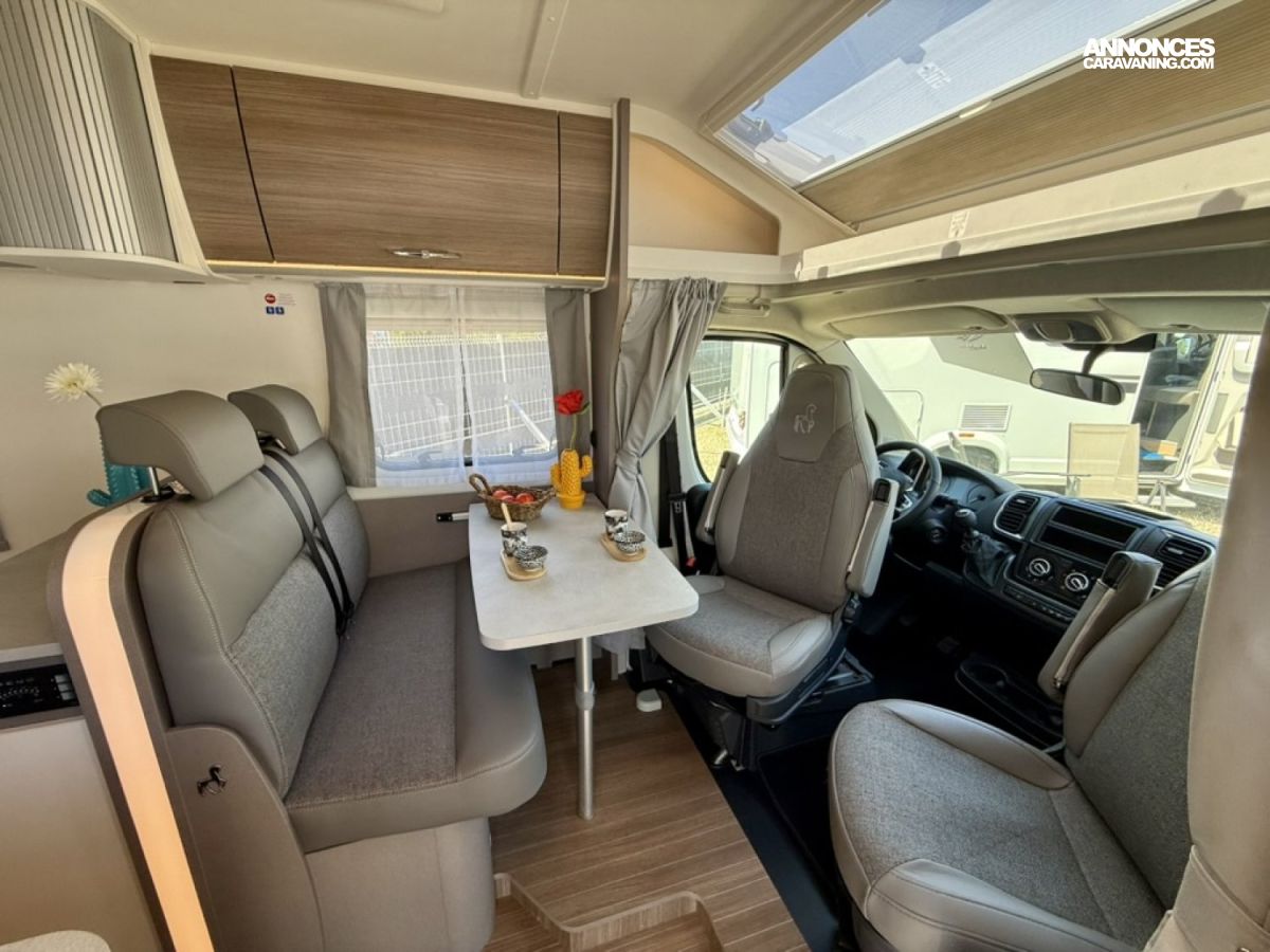 Pack Confort : miroir, caillebotis en bois dans la douche, Captain chair avec housses, prise électrique supplémentaire dans le placard de pavillon au-dessus du bloc cuisine, prise électrique dans le garage
