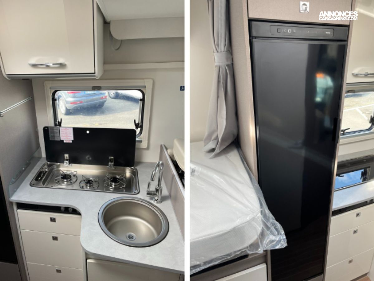 - Plaque de cuisson 3 feux, allumage électrique 12 V avec abattant en verre,