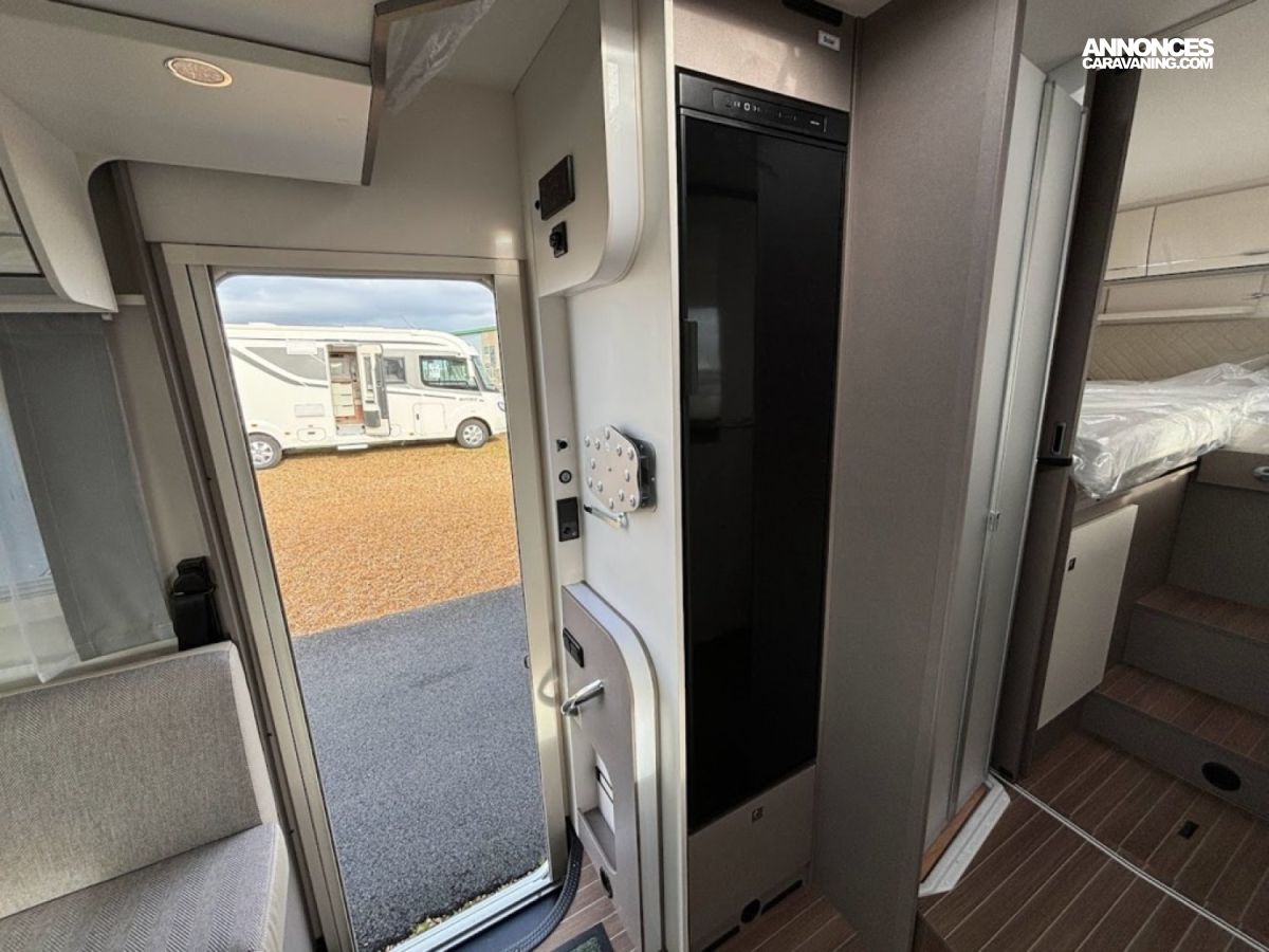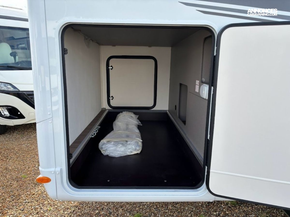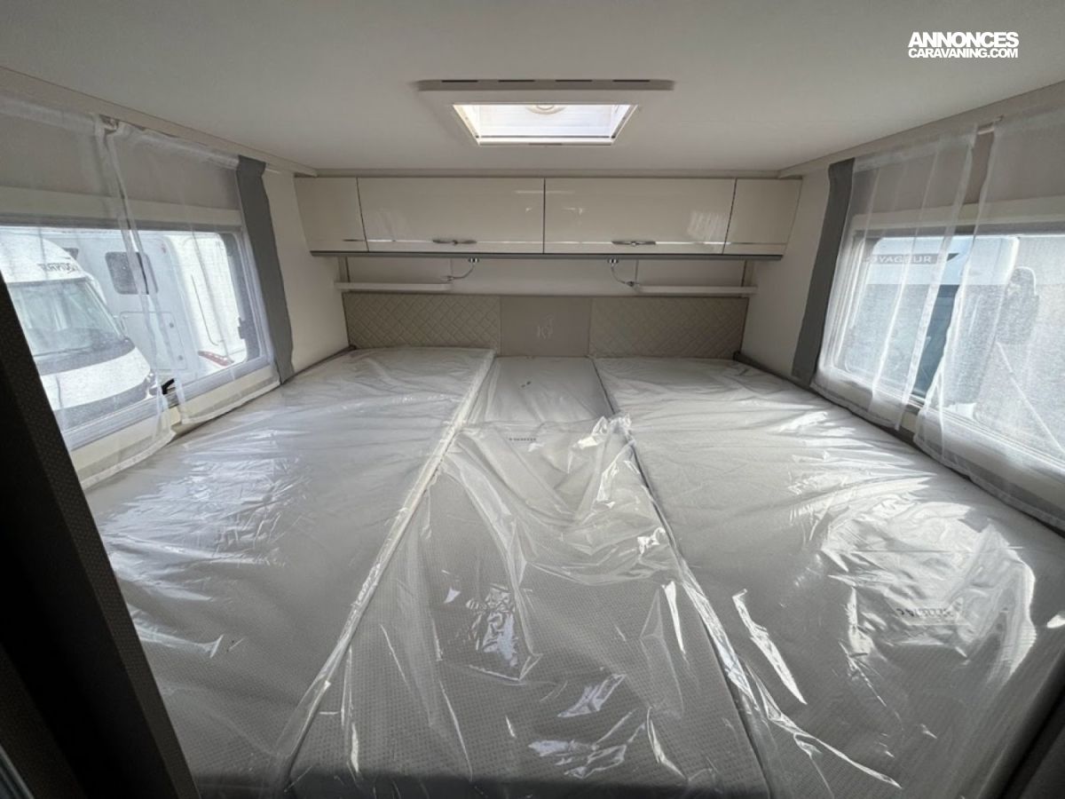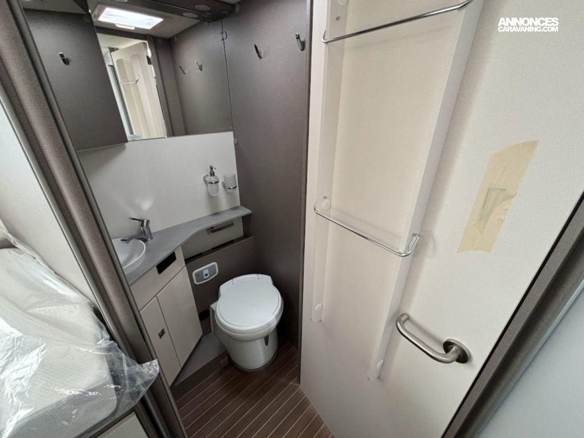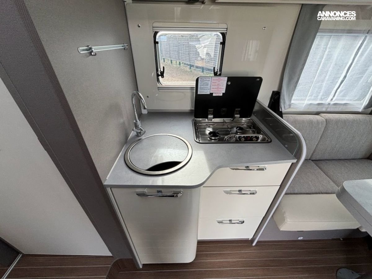 Cuisine en L, Douche indépendante, Grande soute, lit jumeaux, lit pavillon, Salon avant sièges pivotants, Salon en L, WC Cassette.