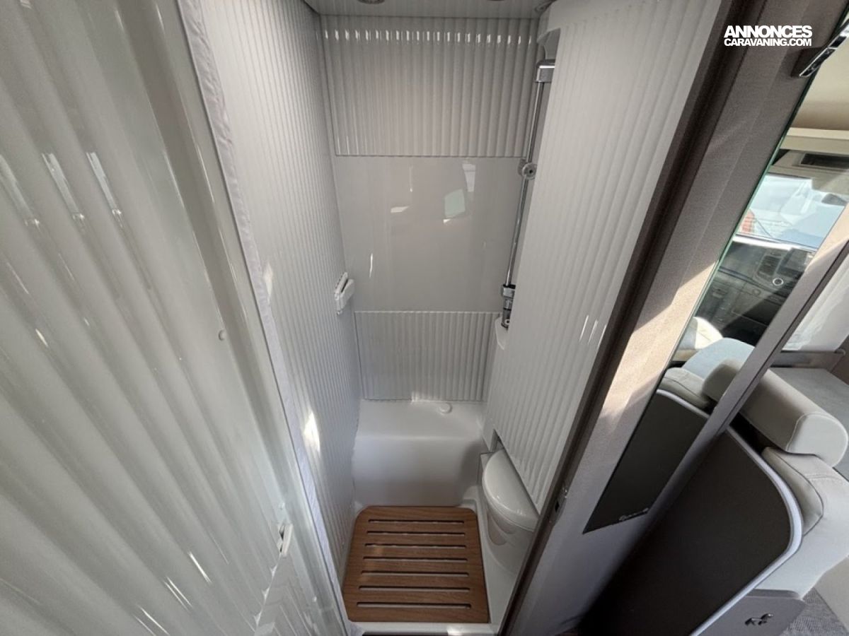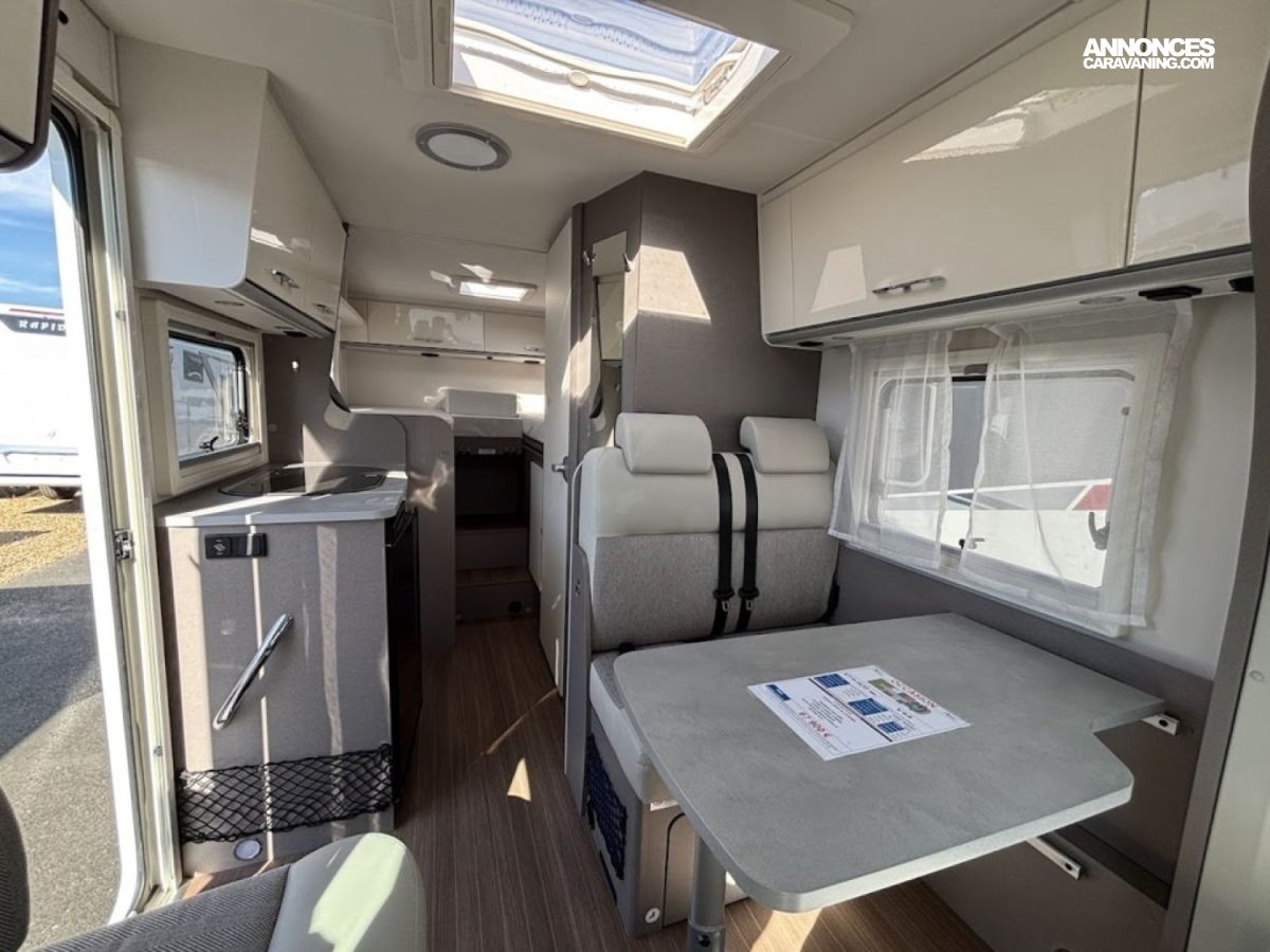 Cuisine en long, Douche à vario, Grande soute, Lit dînette avant, lit jumeaux, Salon avant sièges pivotants, WC Cassette.