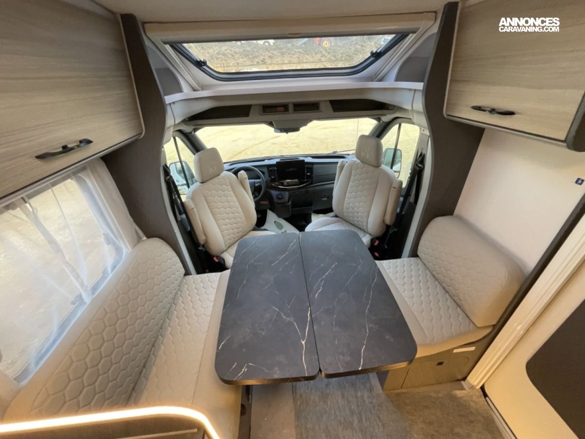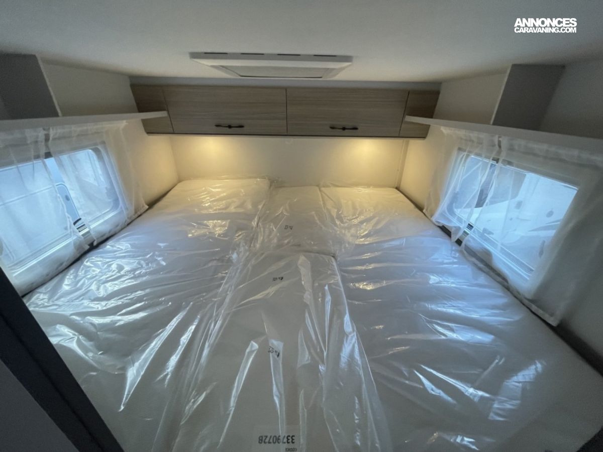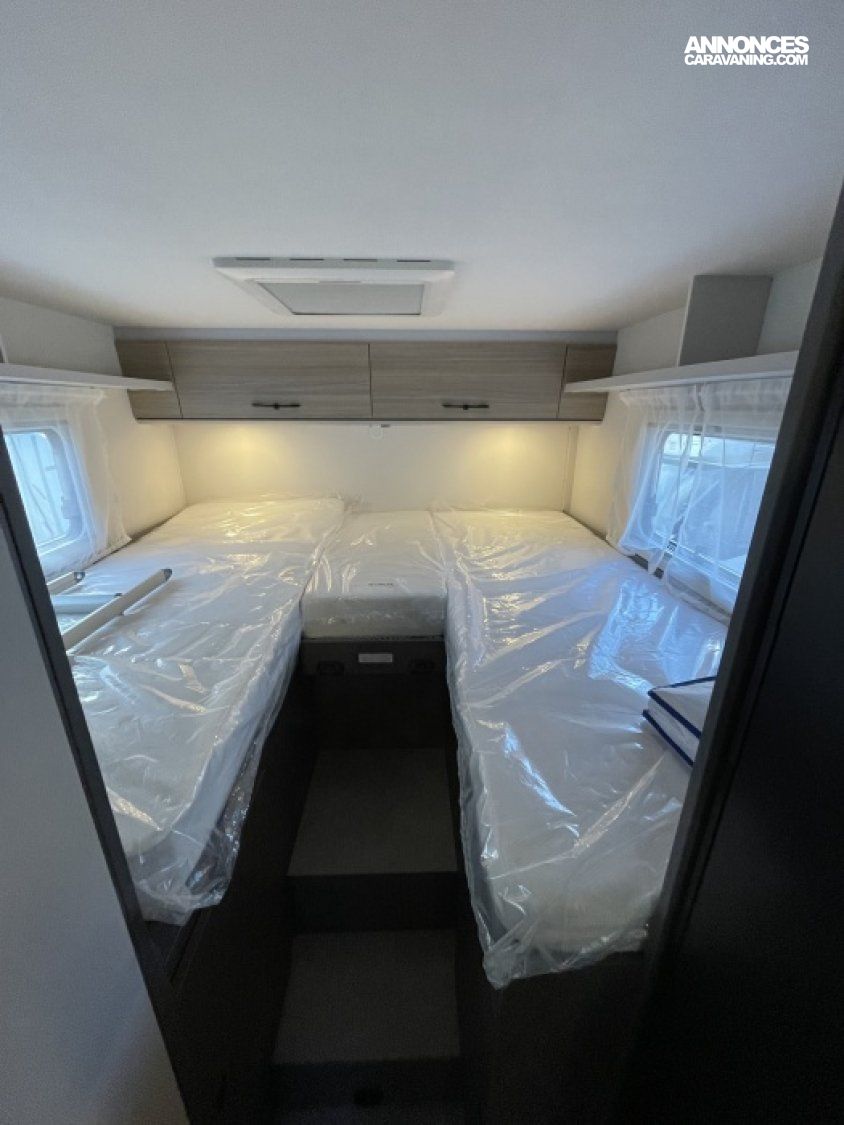 À l’arrière, il dispose de deux lits jumeaux modulables en un grand lit transversal offrant un couchage confortable de 195 x 191 cm. À l’avant, un lit simple.