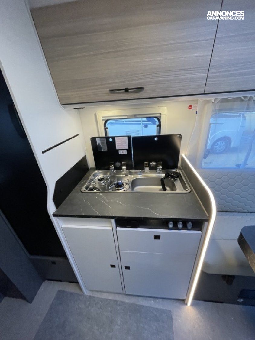Le véhicule est équipé pour une bonne autonomie avec un panneau solaire de 120 W (régulateur MPPT) et une batterie lithium.