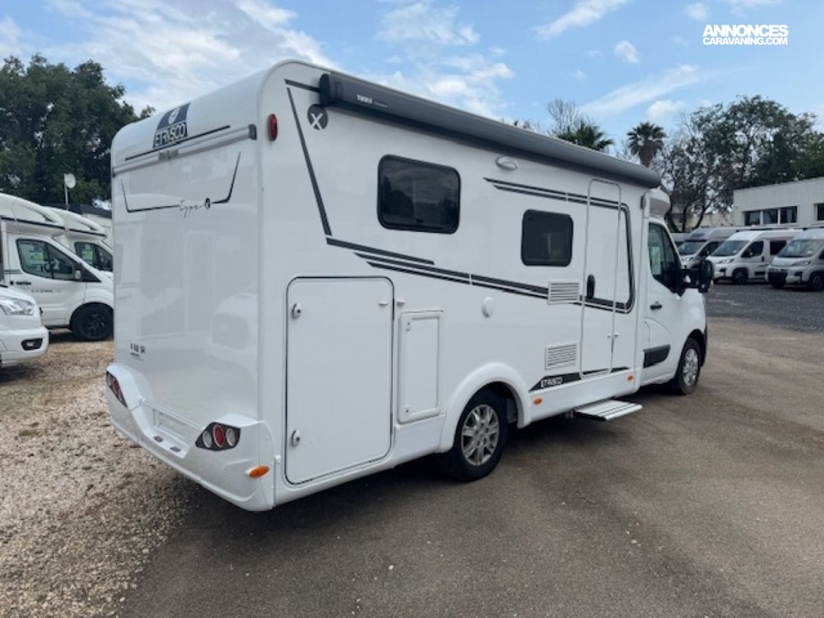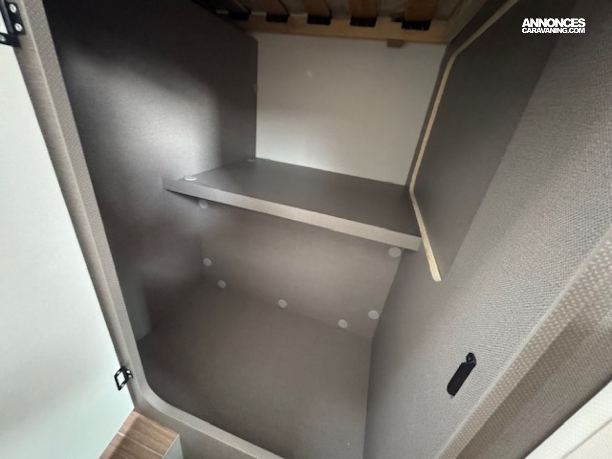 Il présente à l'arrière 2 places couchage (194x80 ~ 192x72) en lits jumeaux sur soute (transformable en grand lit) avec beaucoup de rangements, une salle d'eau à cloison pivotante, un chauffage gaz Truma Combi 4 performant et une cuisine toute équipée !! Et tout cela en - de 7 mètres de long...