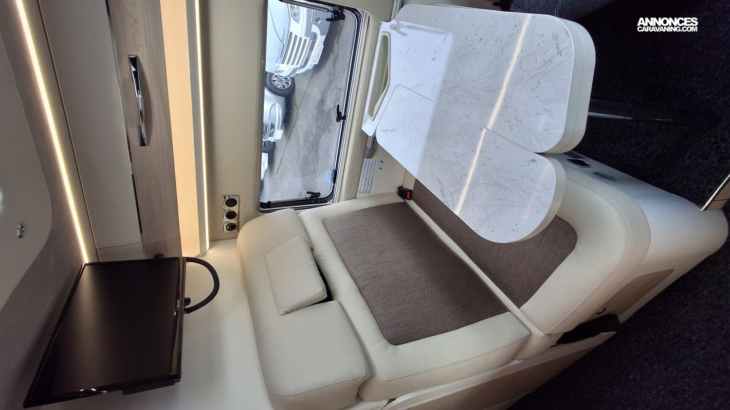 Store remis cabine, Toit panoramique, Reservoir carburant 90L, Douchette exterieure, Climatisation automatique, Batterie lithium, Panneau solaire 120 W, Attelage, Jantes alu 16, Frein stationnement electrique, Antenne sat auto, Phares full led, Store extérieur, Haut-parleur en chambre, Station de charge a induction, Reconnaissance panneaux, Capteur de pluie, Assistance angle mort, Adaptative cruise controle, Lit arriere electrique, Autoradio DAB navigation car play camera de recul, TV, Motorisation 180 cv, Boite automatique, Pack aide a la conduite +, Ouverture et demarage sans clef, Volant et pommeau vitesse cuir