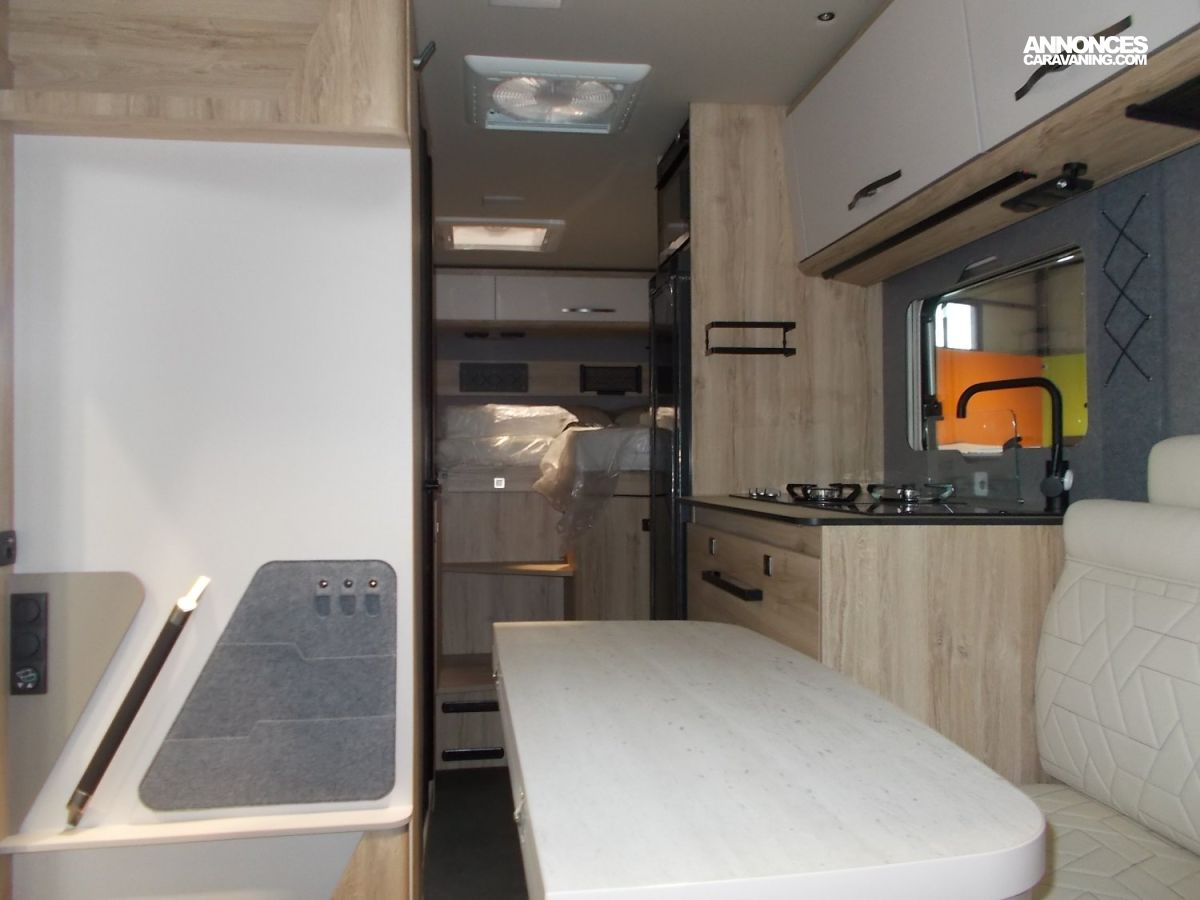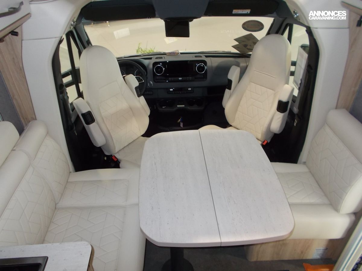 ABS, Batterie gel-lithium 330 Ah, Transmission intégrale séquentielle, ASR, EBV et ESP, Lève-vitres électrique, verrouillage central de la cabine, Mini-Heki au-dessus du lit arrière, Réfrigérateur 146 l, Climatisation manuelle, Garantie sur les meubles 3 ans, Kit de secours pneu crevé Fix and Go, Sièges cabine en tissu cellule, Marchepied électrique, Table avec rotation 360° et coulisses, escamotable, Réfrigérateur à compresseur, Réservoir d’eaux usées isolée et chauffée, Sofix, 1 x dans le sens de la marche