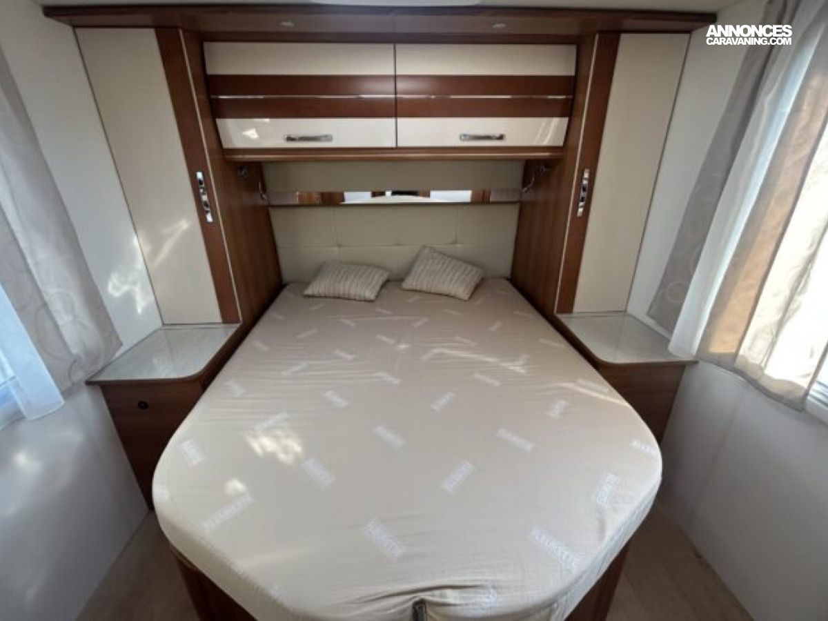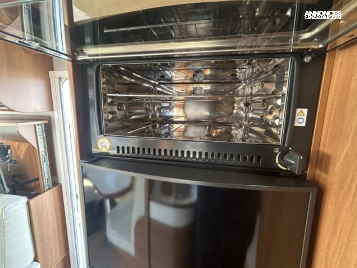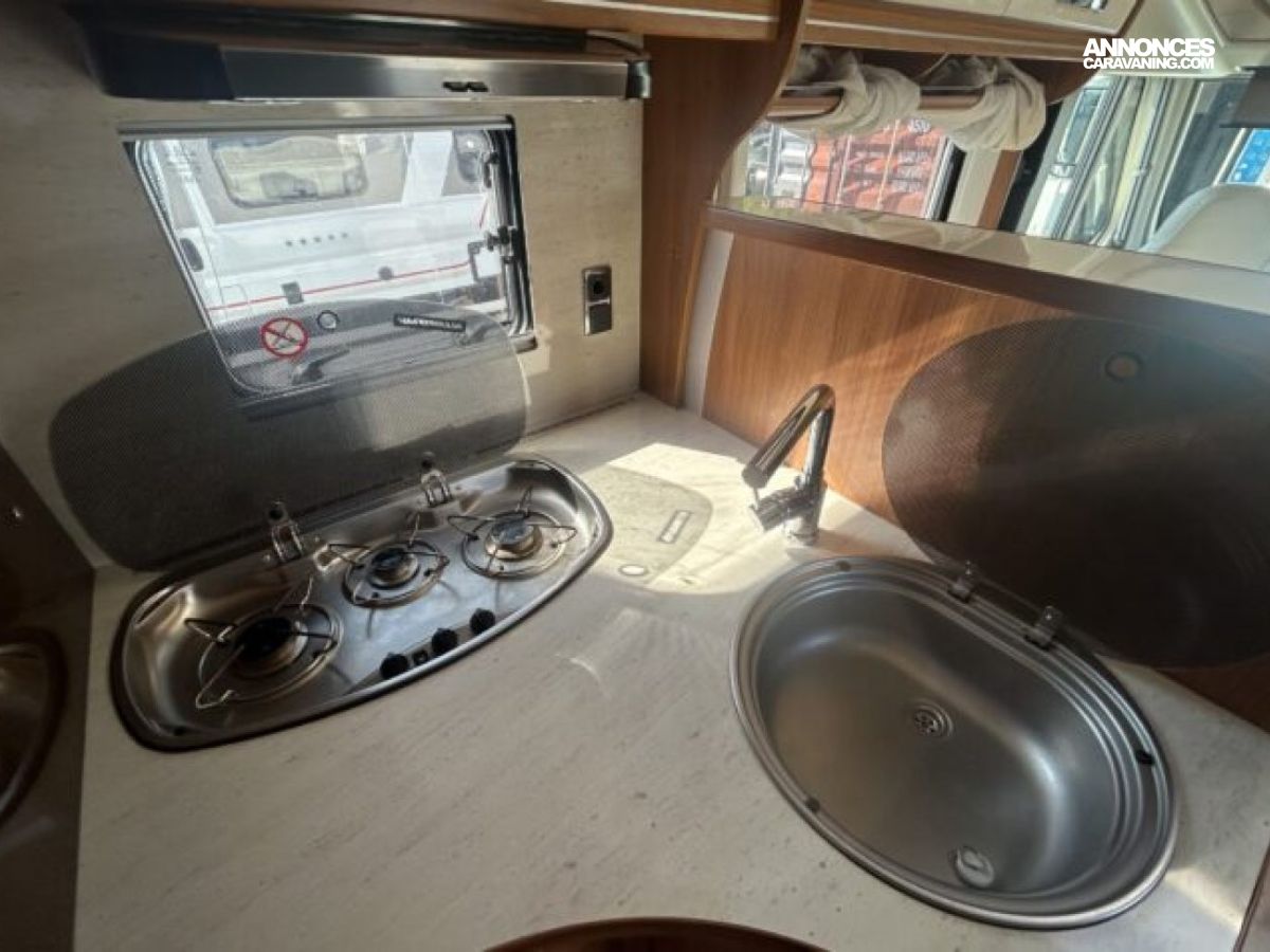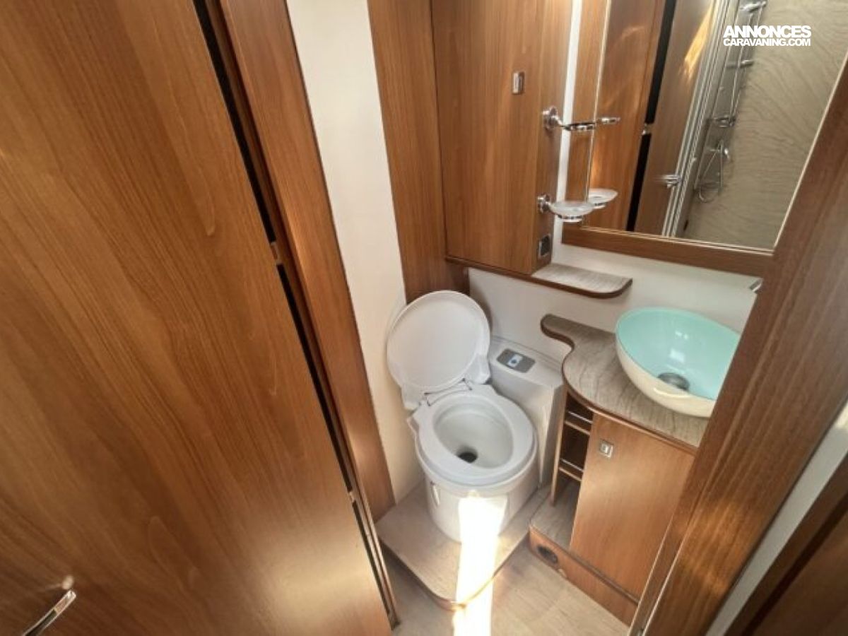 Implanté sur un Fiat Ducato 2.3 L diesel 150 ch avec châssis AL-KO, il combine stabilité et agrément de conduite. L’intérieur propose un grand salon, une cuisine équipée avec réfrigérateur d’environ 150 à 160 L, ainsi qu’une salle d’eau avec douche et WC séparés. Côté autonomie, il dispose d’environ 150 L d’eau propre et 119 L d’eaux usées, idéal pour les voyages prolongés.