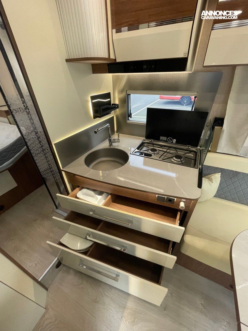- Pack Confort, compenant (Traction +, Antibrouillards et pare-chocs peint, Commandes au volant + HP, Porte cellule Hartal avec baie, Moustiquaire de porte cellule, Stores plissés Remis en cabine, Autoradio Double DIN - DAB+ avec kit main libre - Caméra de recul, Rétroviseurs extérieurs électriques,Cde digitale Truma, Haut parleurs AV, 2ème clé télécommandée, Convertisseur DC/DC 40Ah, Batterie AGM 95Ah ,Sièges cabine réglables en hauteur ,Vide poche central, Transformation dinette en couchage ,Hotte cuisine digitale à extraction latérale, Inverseur gaz automatique Duo Control, Matelas Evoluflex Haute Résilience, Voilage et coussins déco, Toit décaissé) : 1 490 €