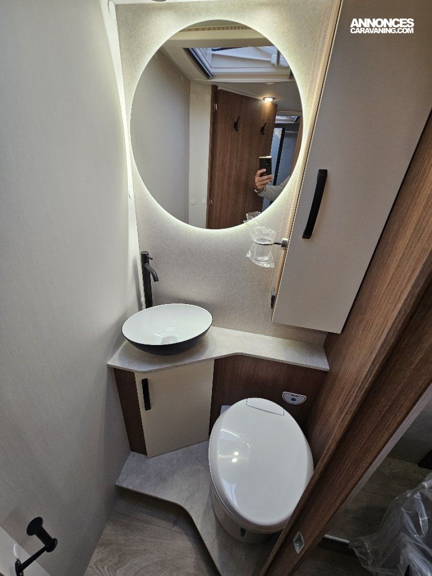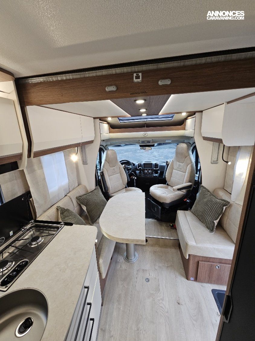 Literie haut de gamme, Chauffage Truma 4000 ED ( Diesel / électrique ), Lampe avec variateur atmosphère douce et apaisante, Repose pieds Relax sur siège passager, Grand Réfrigérateur 145 L compression, Douche et toilettes séparés, BATTERIE LITHIUM 100AH, CONVERSTISSEUR DC/DC 40AH