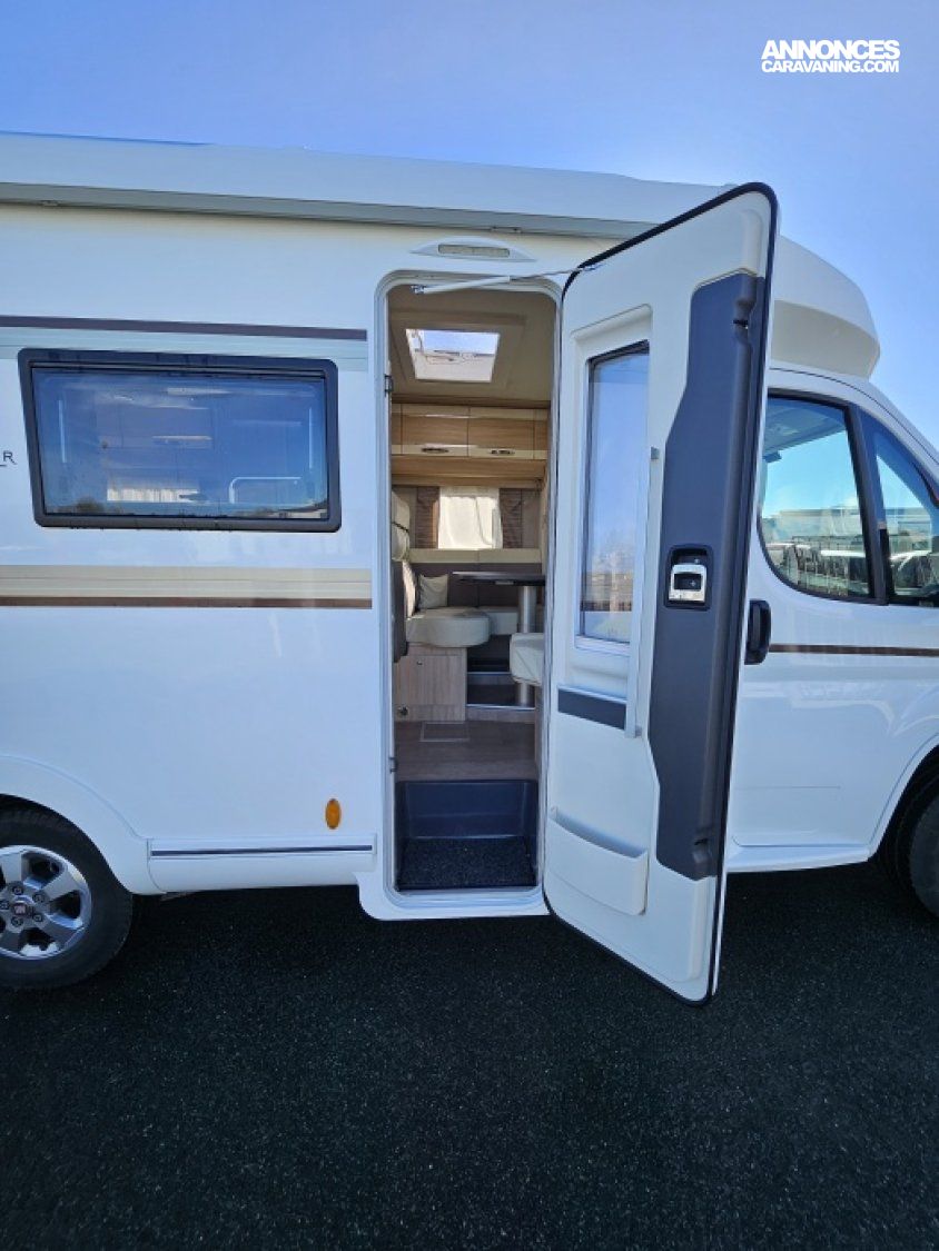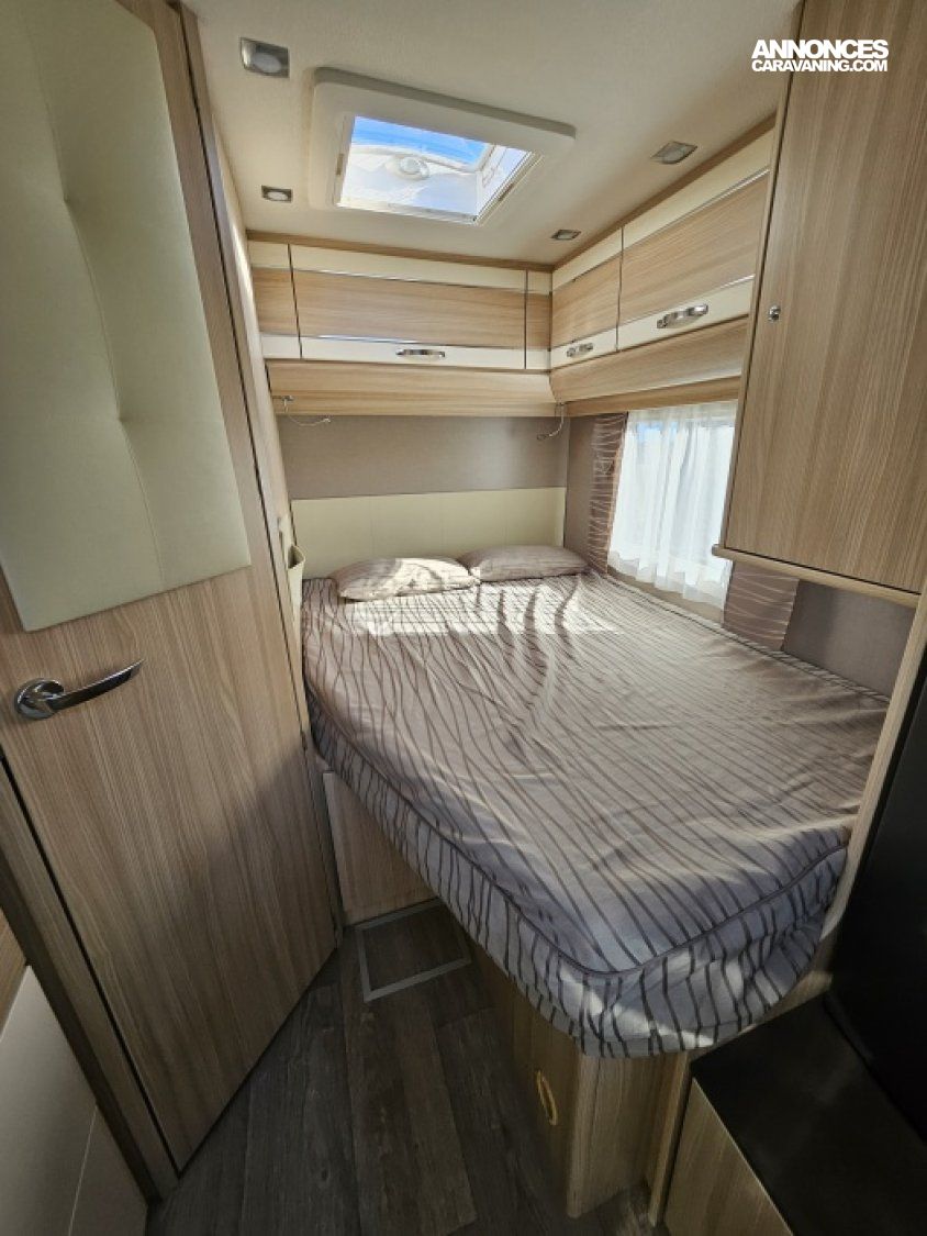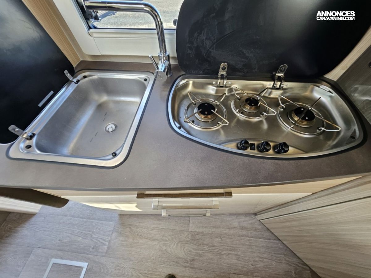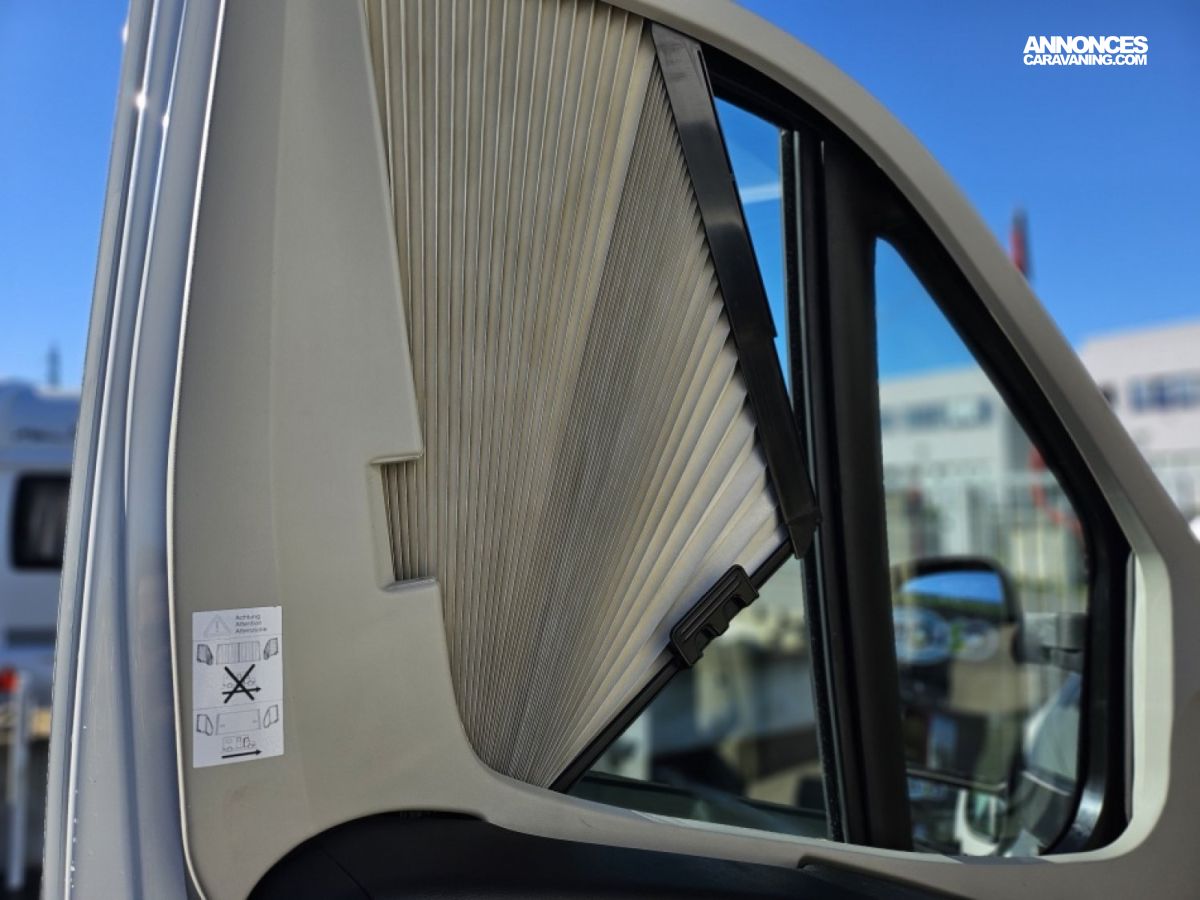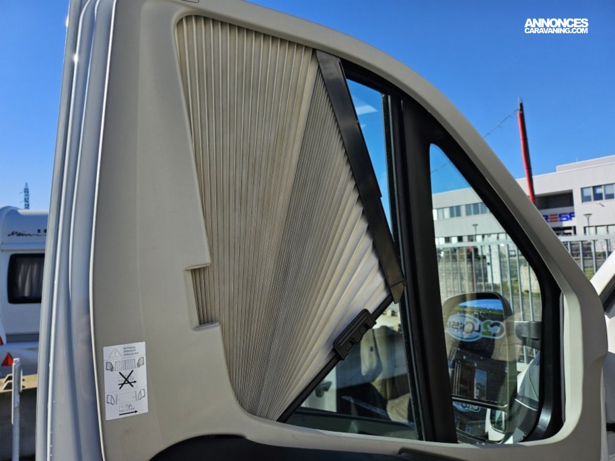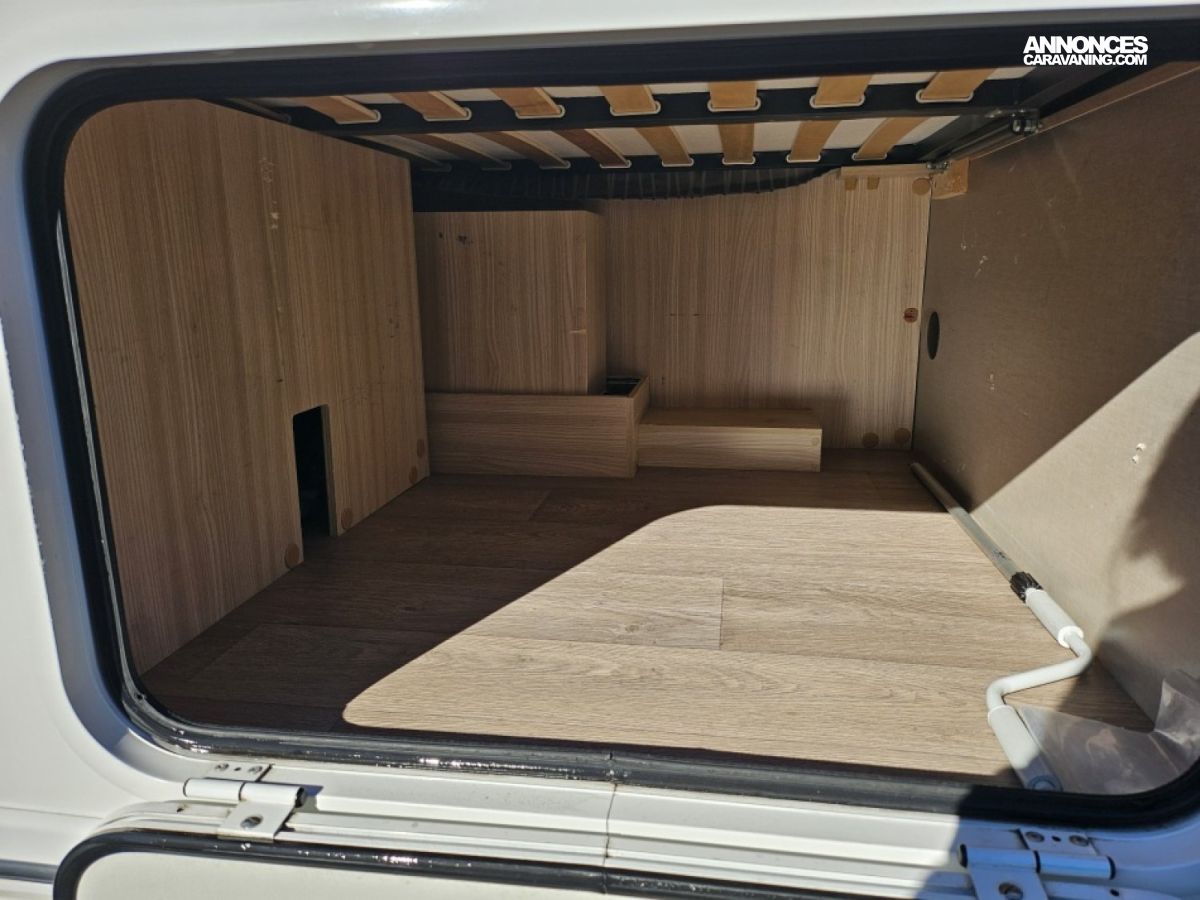 - sièges confort pivotants réglables en hauteur - poignées de meuble finition chrome – salon 4 places -soute de rangement sous lit – salle d’eau Cabine de douche séparée – réfrigérateur 145L - chauffage TRUMA - lit à la française