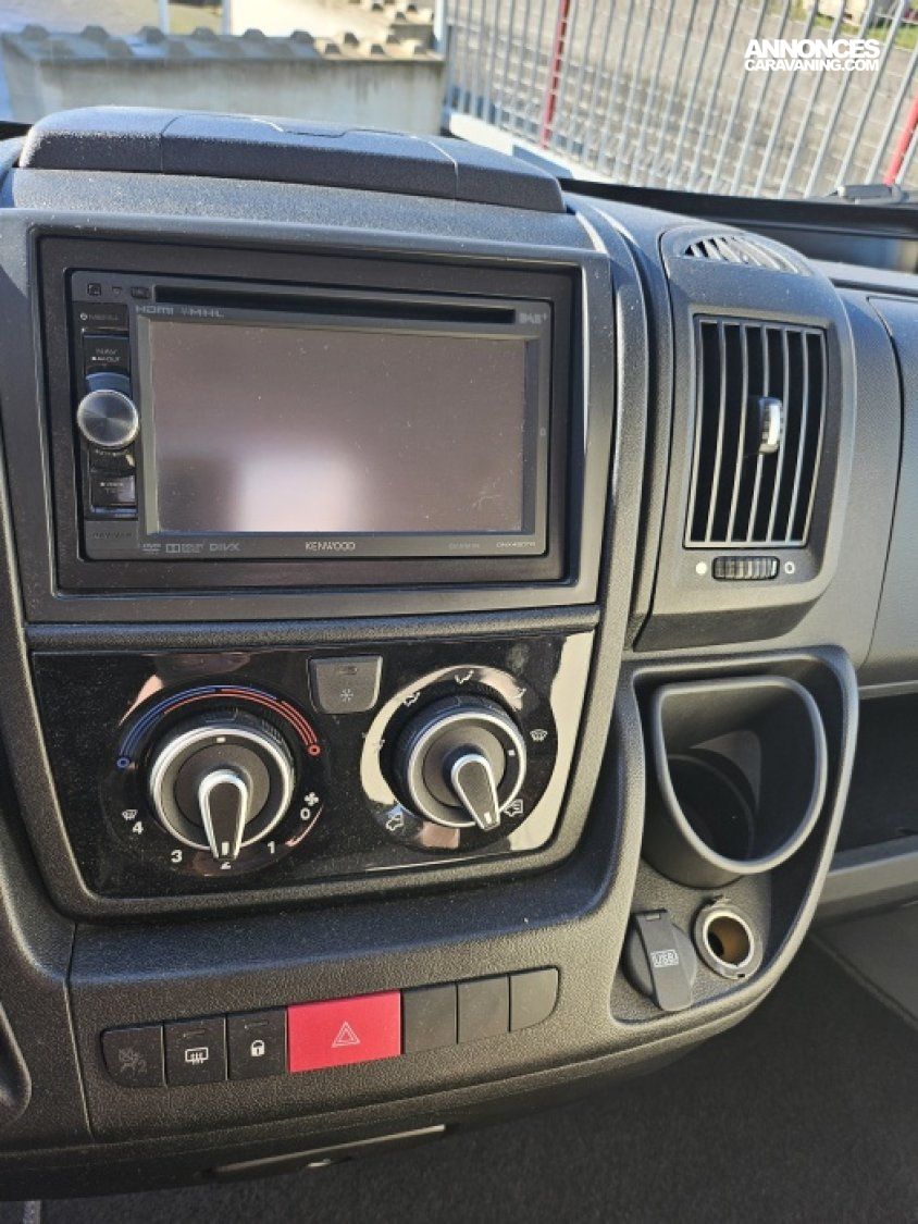 Fiat DUCATO - Motorisation fiat 2,3L ducato 2L3, 150 CV – Châssis Camping-Car -Rayon de braquage ultra, court - Climatisation cabine - Rétroviseurs électriques – V.E – F.C - Système - Verrouillage centralisé cabine – jantes alliage 15 pouces - autoradio kenwood OPTIONS :