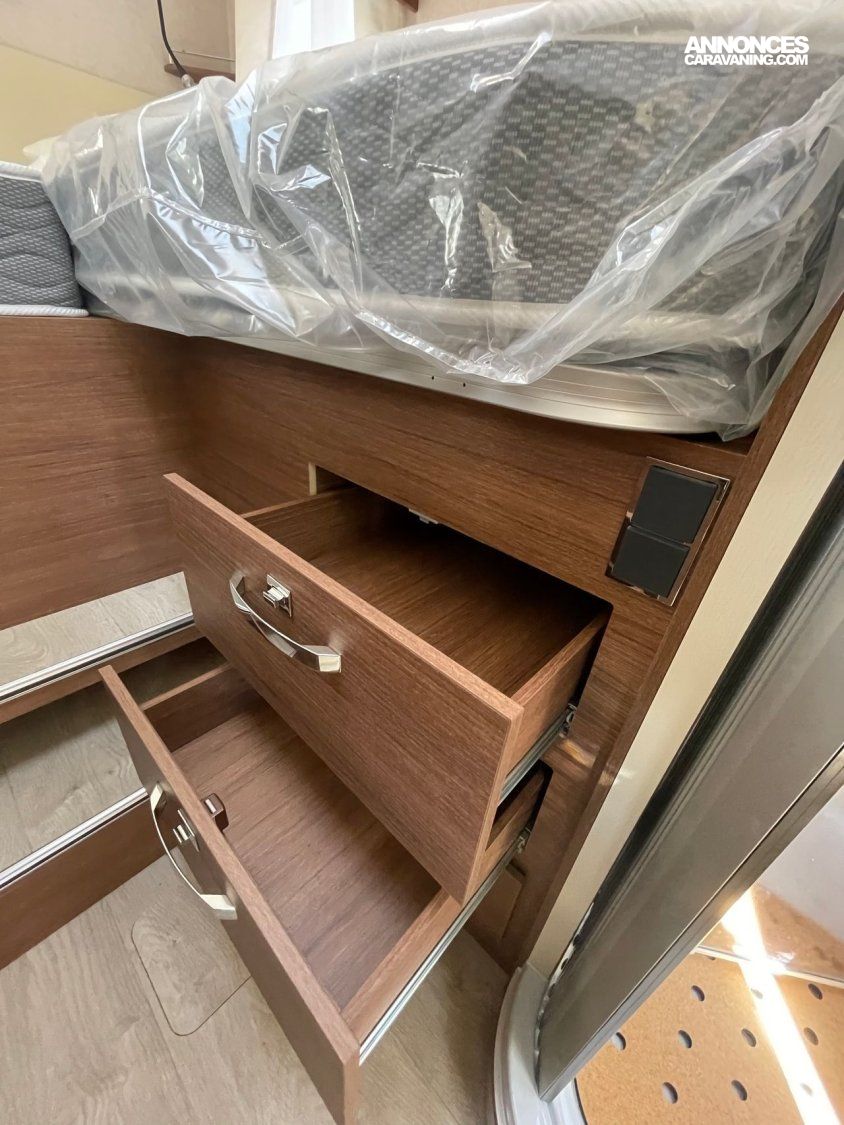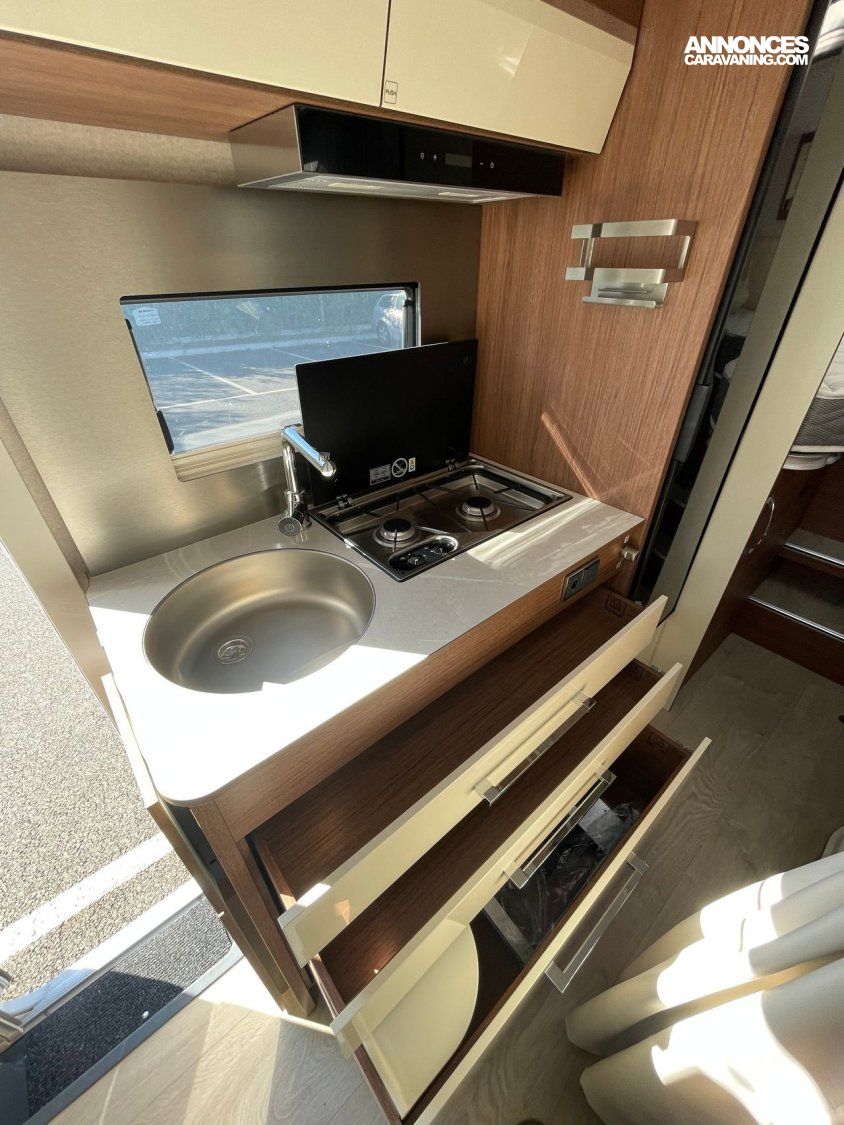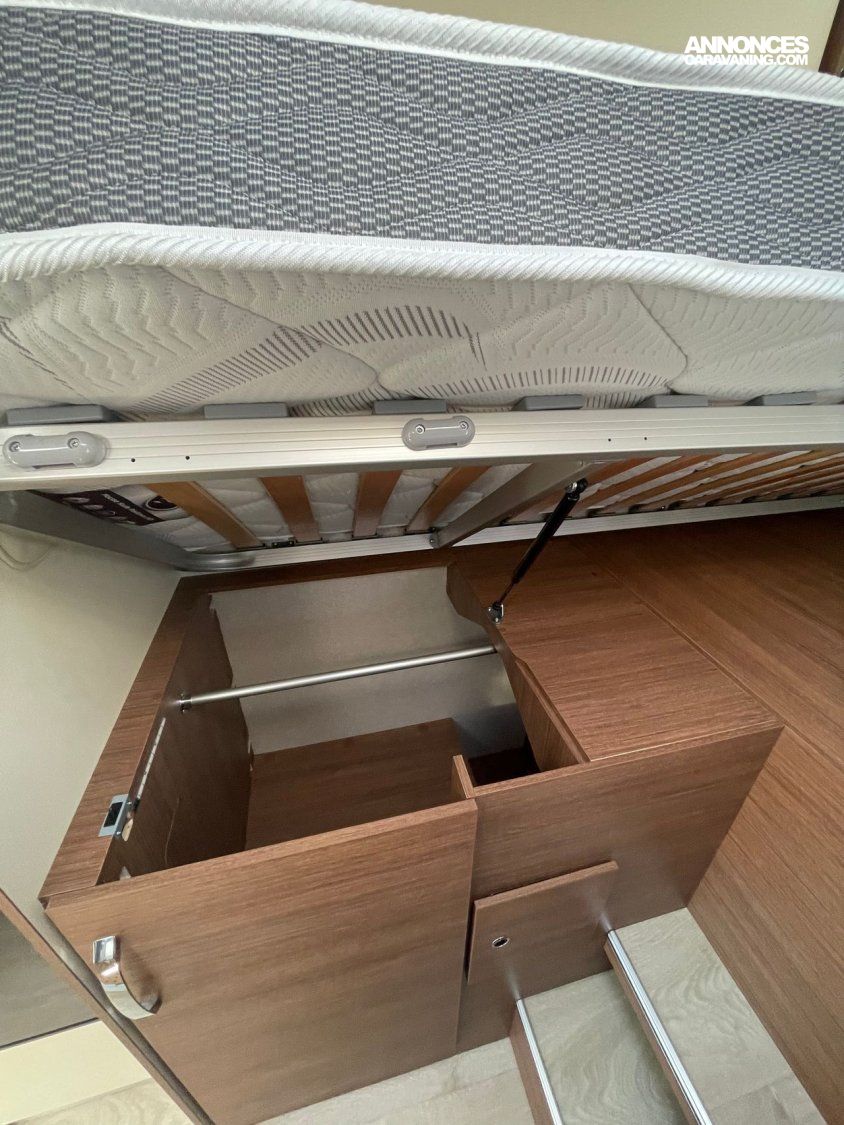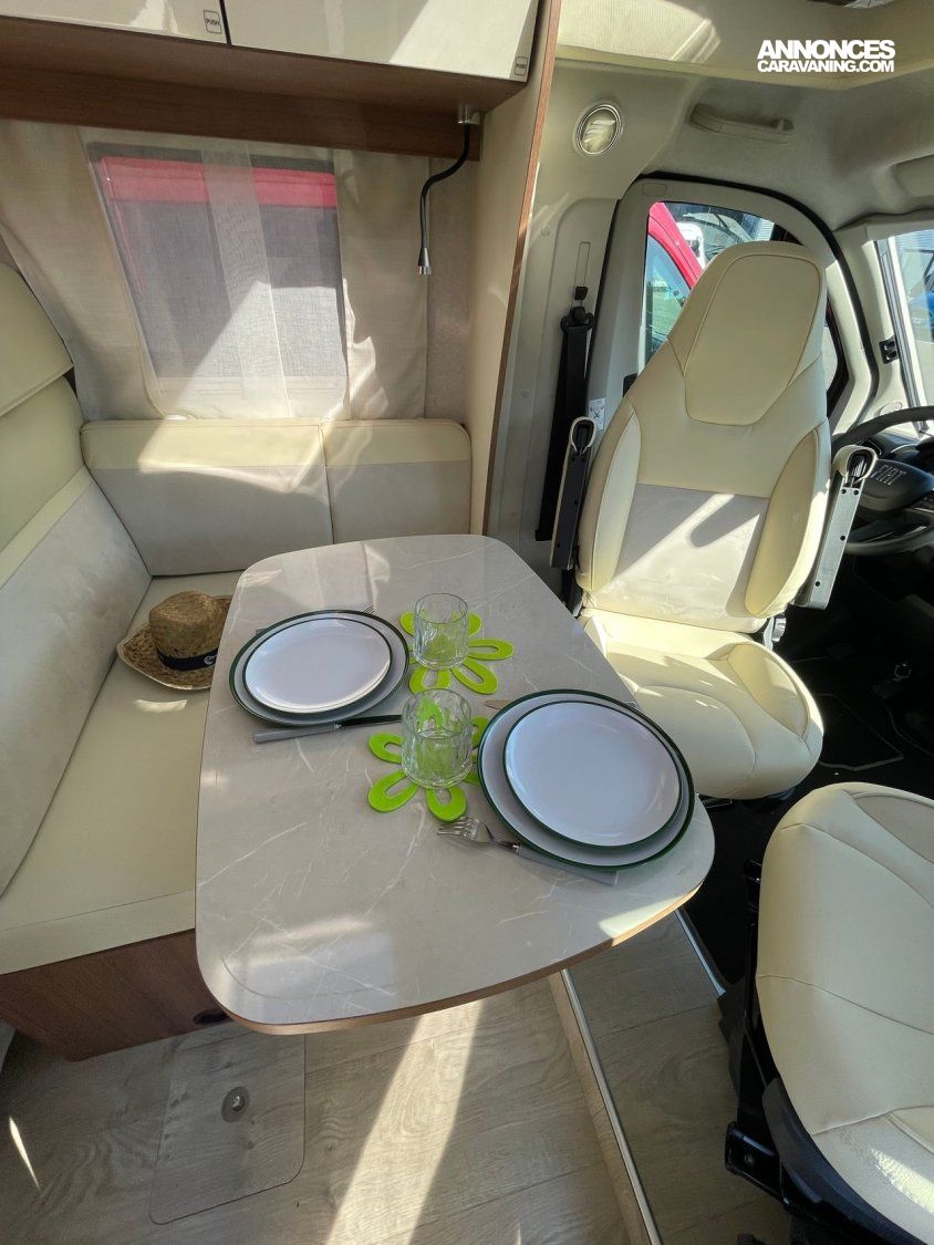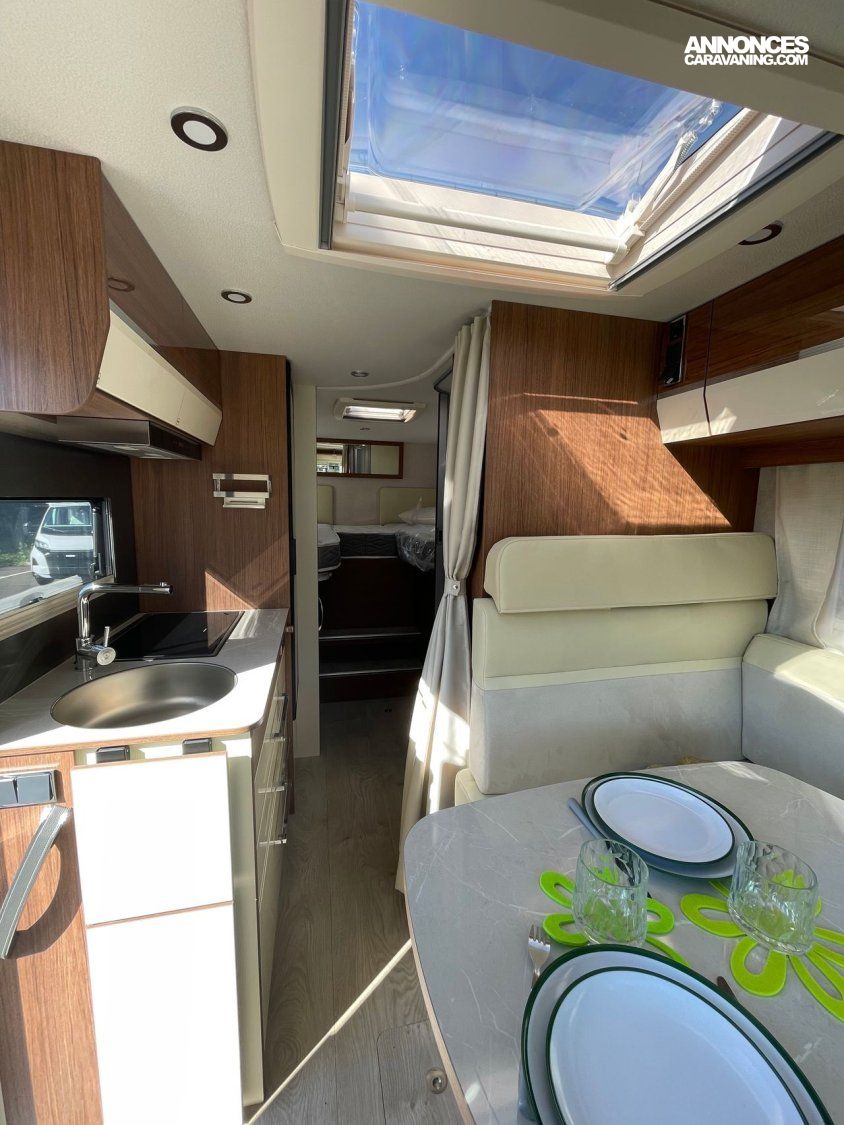 - Pack confort : 1 490 € (Pack Confort sur Profilés : Traction +, Antibrouillards et pare-chocs peint, Commandes au volant + HP, Porte cellule Hartal avec baie, Moustiquaire de porte cellule, Stores plissés Remis en cabine, Autoradio Double DIN - DAB+ avec kit main libre - Caméra de recul, Rétroviseurs extérieurs électriques, dégivrants, Rétroviseurs rabattables électriquement, Cde digitale Truma, Haut parleurs AV, 2ème clé télécommandée, Convertisseur DC/DC 40Ah, Batterie Lithium 100Ah sur, Sièges cabine réglables en hauteur ,Vide poche central, Transformation dinette en couchage ,Hotte cuisine digitale à extraction latérale, Inverseur gaz automatique Duo Control, Matelas Evoluflex Haute Résilience, Voilage et coussins déco, Toit décaissé.)