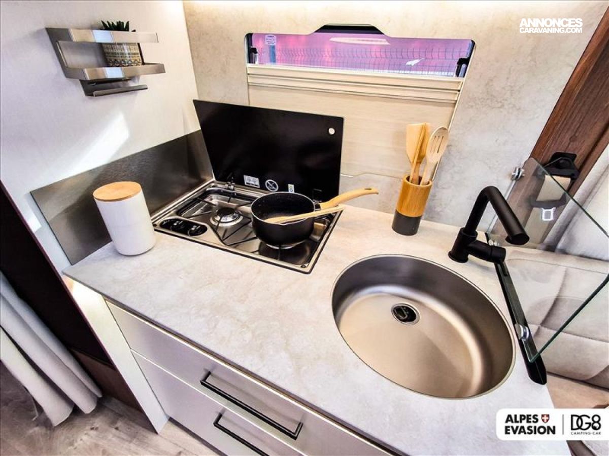 BATTERIE LITHIUM 100 AH, CHAUFFAGE COMBI 4 DE DIESEL ELECTRIQUE, MODELE NEUF D EXPOSITION, REFRIGERATEUR A COMPRESSION 150 LITRES, REPOSE PIEDS RELAX SUR SIEGE PASSAGER, SERIE WELLNESS, SIGNATURE OLFACTIVE