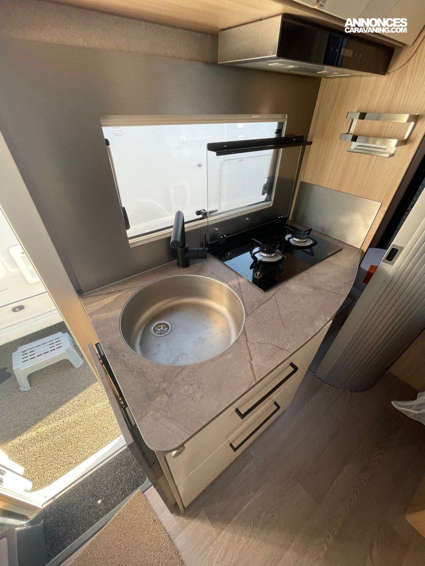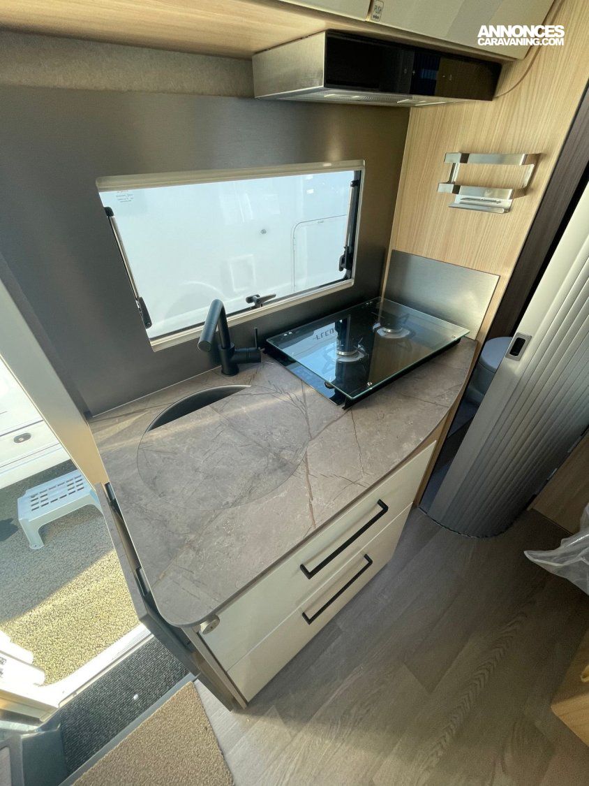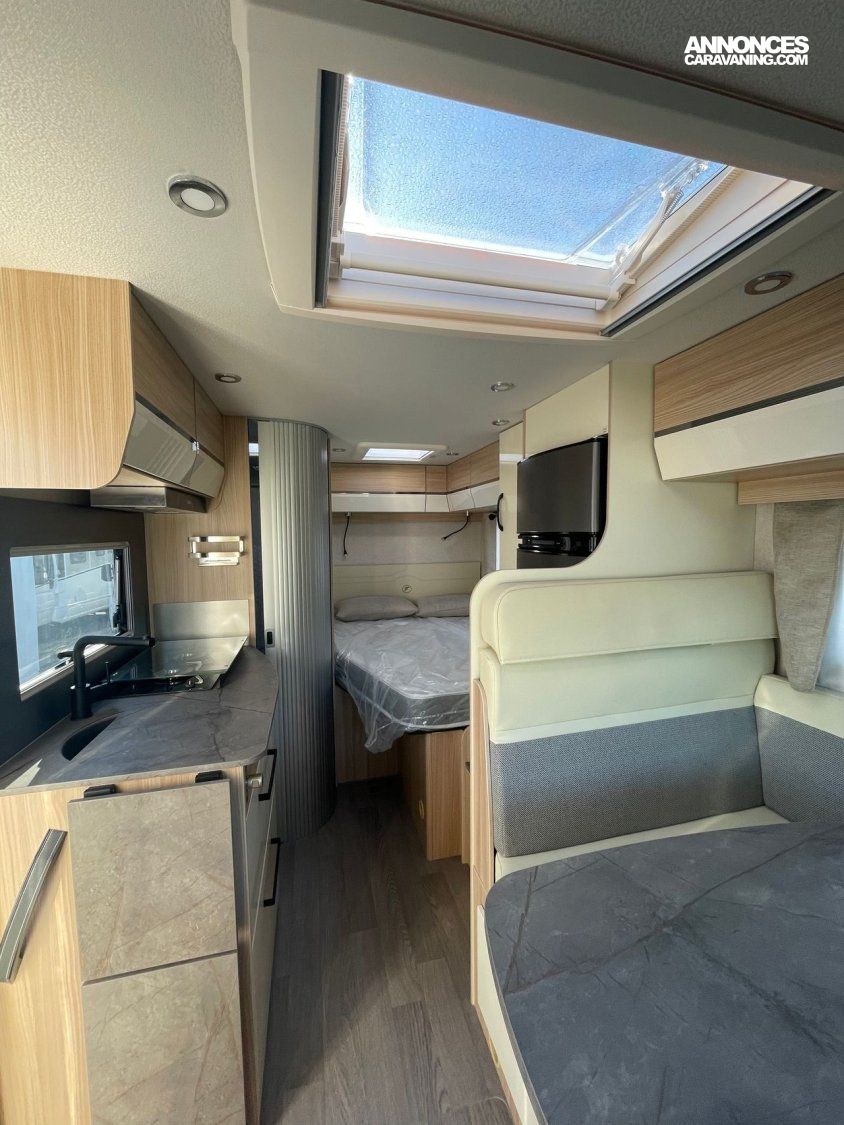 - Pack confort : Pack confort : 1 490 € (Traction +, Antibrouillards et pare-chocs peint, Commandes au volant + HP, Porte cellule Hartal avec baie, Moustiquaire de porte cellule, Stores plissés Remis en cabine, Autoradio Double DIN - DAB+ avec kit main libre - Caméra de recul, Rétroviseurs extérieurs électriques, dégivrants, Rétroviseurs rabattables électriquement, Cde digitale Truma, Haut parleurs AV, 2ème clé télécommandée, Convertisseur DC/DC 40Ah, Batterie Lithium 100Ah, ,Sièges cabine réglables en hauteur ,Vide poche central, Transformation dinette en couchage ,Hotte cuisine digitale à extraction latérale, Inverseur gaz automatique Duo Control, Matelas Evoluflex Haute Résilience, Voilage et coussins déco, Toit décaissé.)