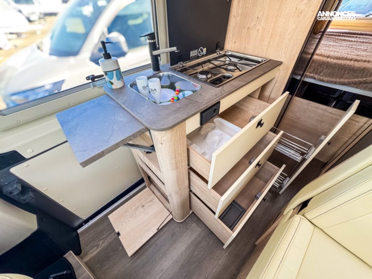 PACK PEARL : BATTERIE CELLULE LITHIUM 100A +PRE-DISPOSITION ATTELAGE + FREIN DE STATIONNEMENT ELECTRIQUE + RETROVISEURS ELECTRIQUES, DEGIVRANTS, RABATTABLES ELECTRIQUEMENT + CAMERA DE RECUL INTEGREE AU MULTIMEDIA + REGLAGE SPECIFIQUE ESC + PORTE MOUSTIQUAIRE OUVRANT LATERAL + DINETTE TRANSFORMABLE EN COUCHAGE + RESERVOIR D EAUX USEES CHAUFFE + STORE REMIS EN CABINE + BOITE A GANT CENTRALE