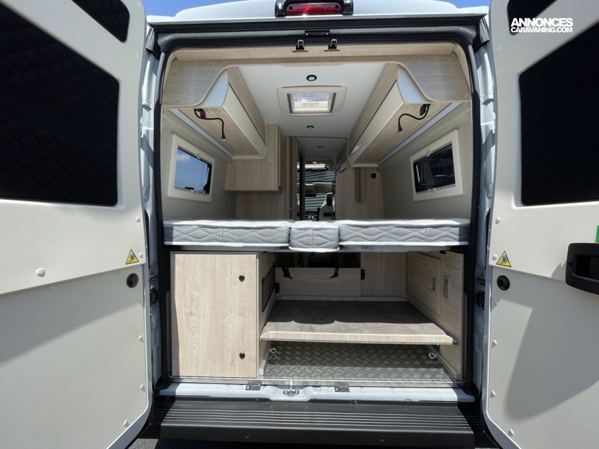 Pack PEARL : Batterie lithium 100 Ah, Pré-disposition attelage, frein de stationnement électrique, rétroviseurs électriques, dégivrants et rabattables, Camera de recul, réglage ESC, Moustiquaire porte cellule, Dinette transformable en couchage, Réservoir eaux usées chauffé, Store Remis cabine, Boite à gant centrale.Peinture Gris expédition :Pack Safety :