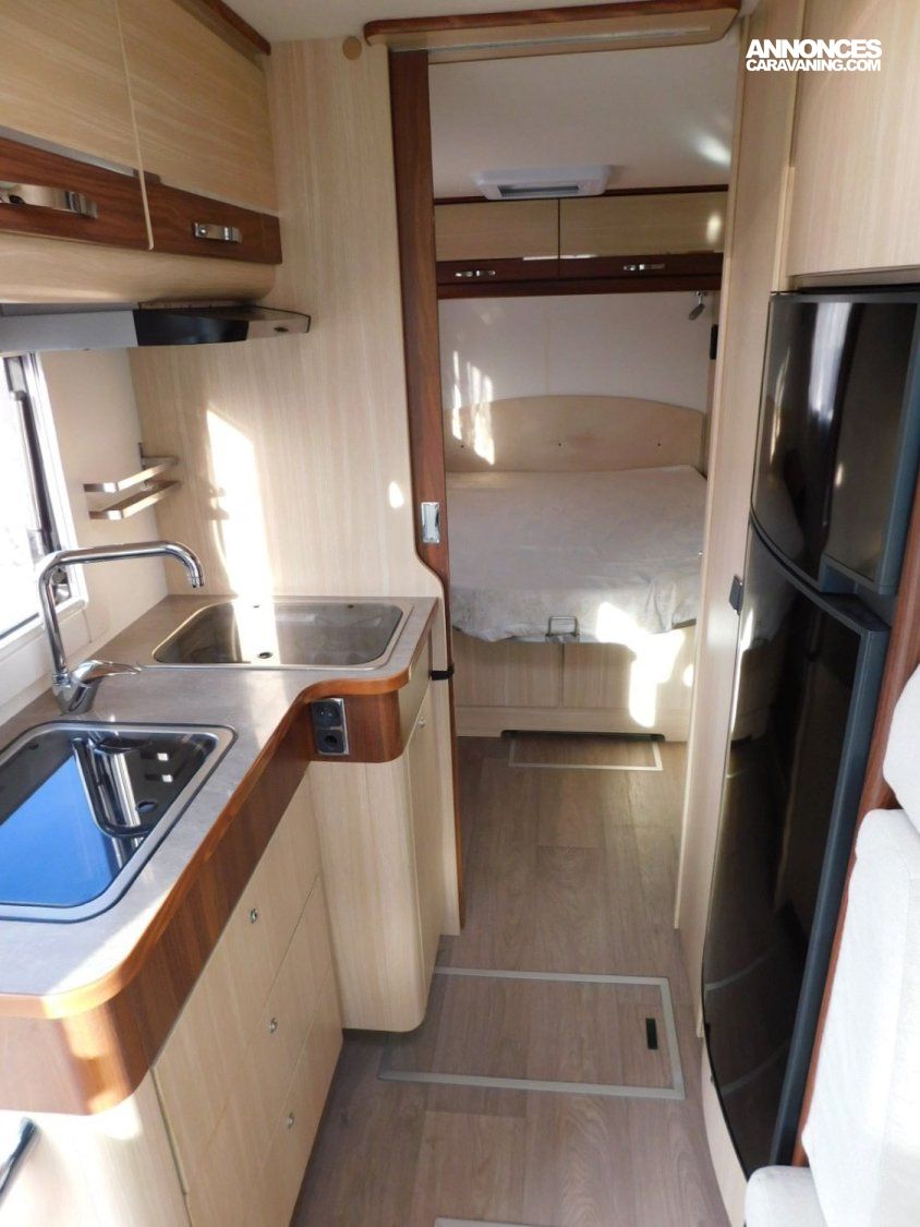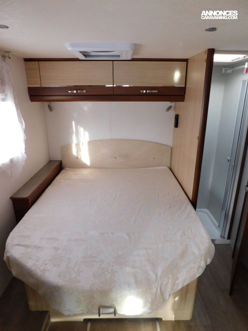 A l’arrière se trouve un Lit Central décalé pour 2 personnes ce qui permet de faire place à de nombreux placards de rangement.