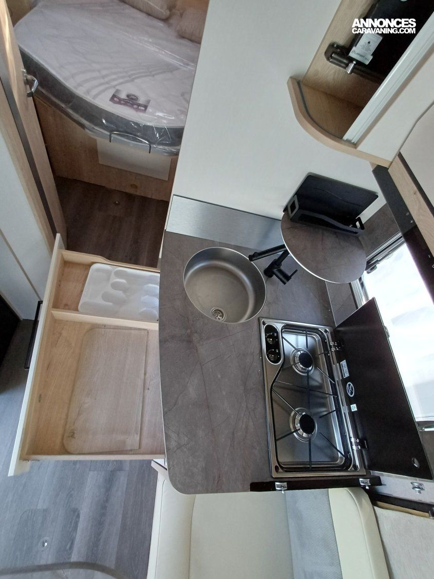 -Pack Confort: Traction +, Antibrouillards et PC peints, commandes au volant + HP, Porte cellule Hartal avec baie et moustiquaire, stores cabine, autoradio double Din, DAB+ avec kit mains libre, caméra de recul, retroviseurs ext électrique dégivrants et rabatables électriquement (sur 60 LG,64LDF,69LJG), Commande digitale Truma, HP AV, 2ème télécommande(sauf Keyless), convertisseur DC/DC 40 AH, Batterie Lithium 100 AH, transformation dinette en couchage, hotte cuisine digitale à extraction latérale, vide poche central, inverseur gaz Duo Control, matelas Evolutex, Toit décaissé.