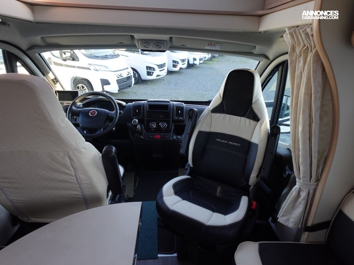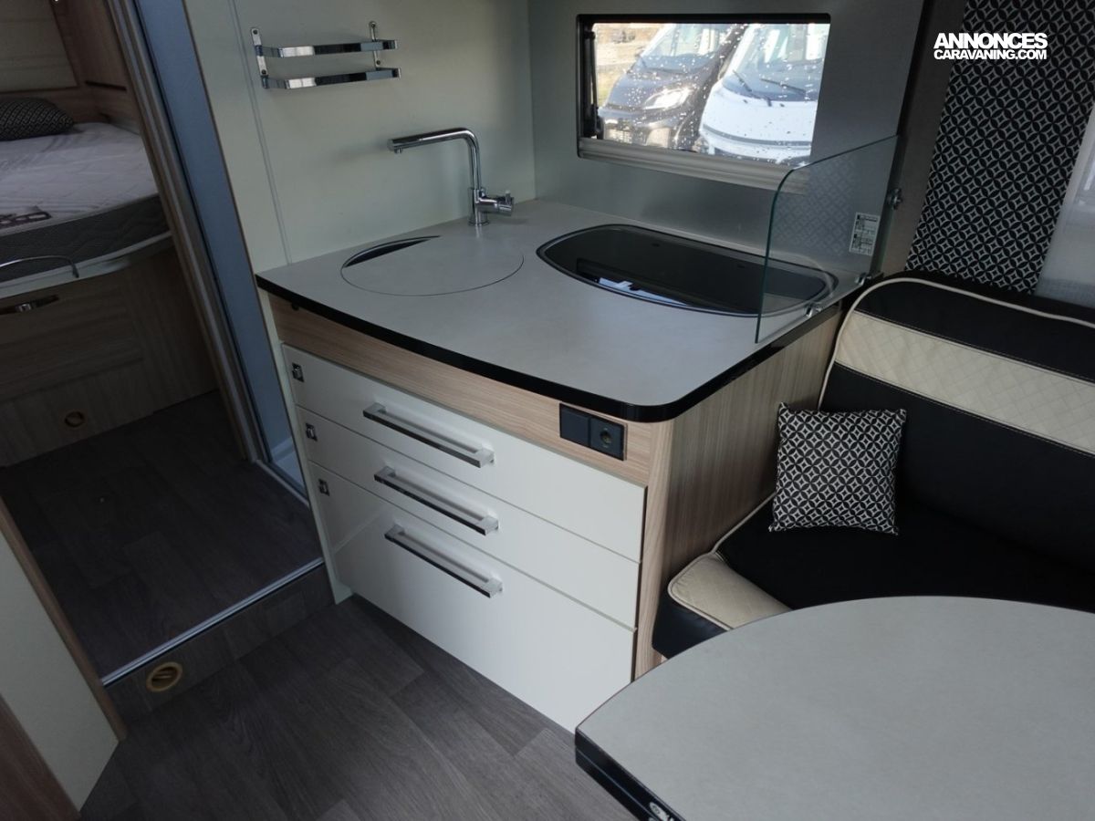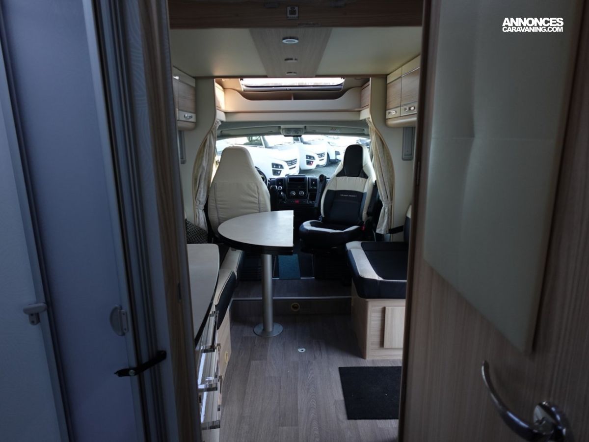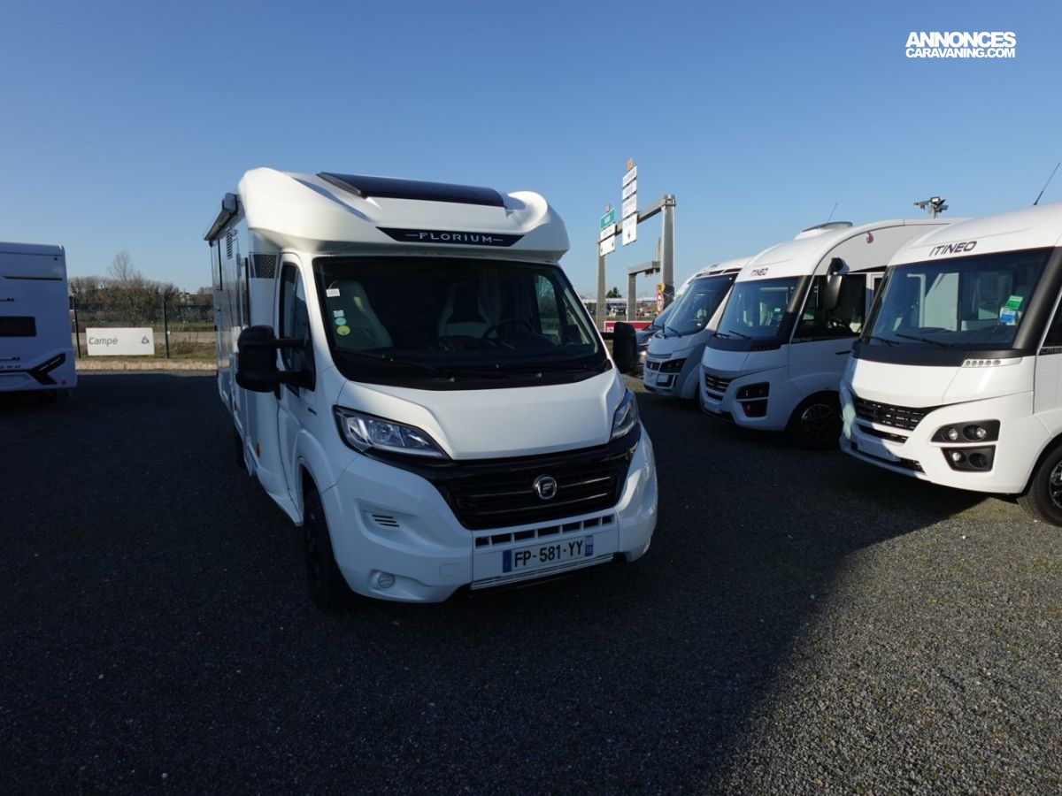 Le MAYFLOWER 74LMF, camping-car profilé spacieux, vous offre une implantation et un style incomparable : Ambiance intérieure cosy unique, grands espaces, équipements et grand confort au quotidien : banquette face / face, lit central, cuisine ouverte en L, cabinet de toilette à double cloisonnement, grande soute garage.