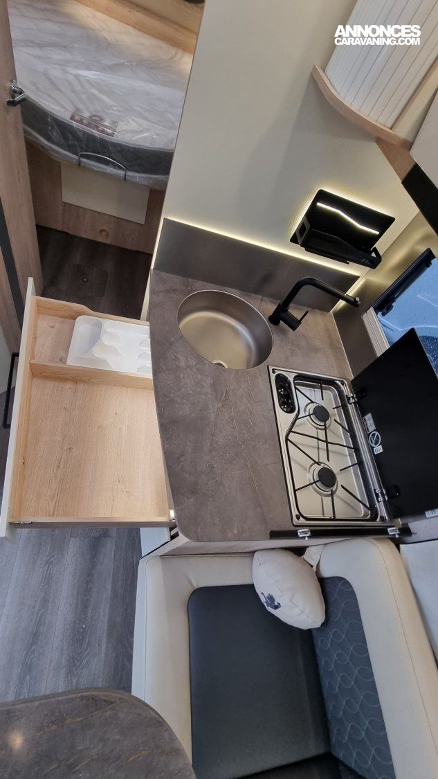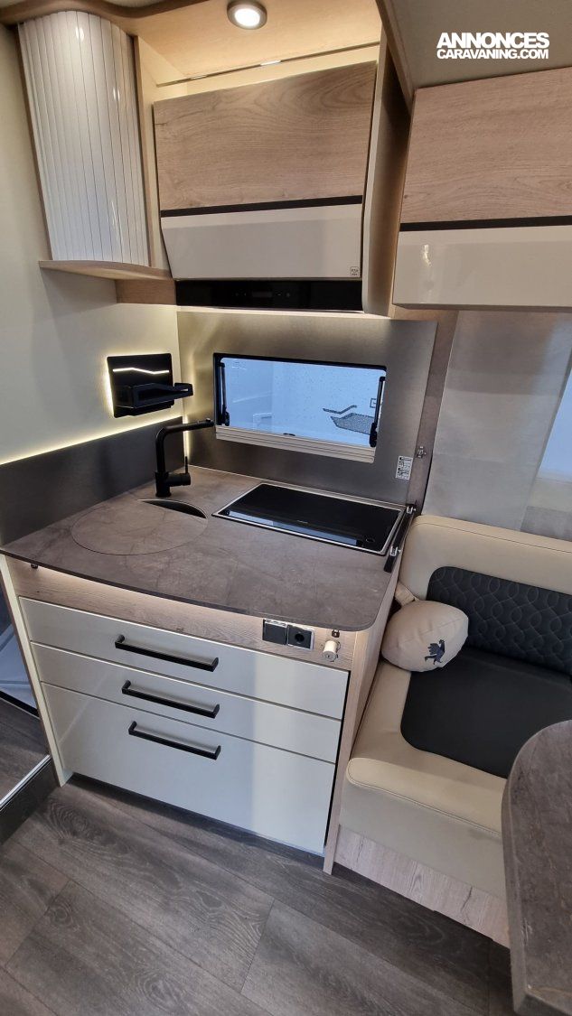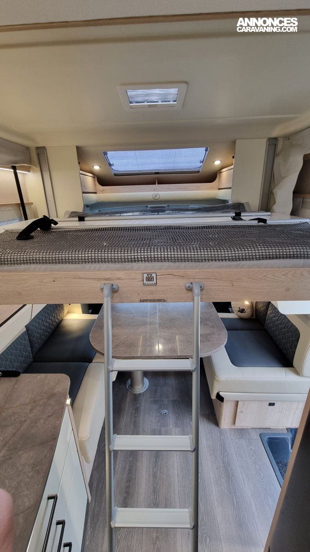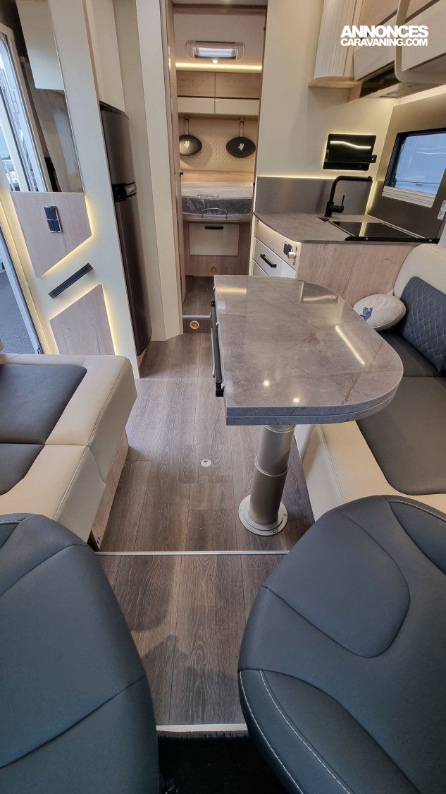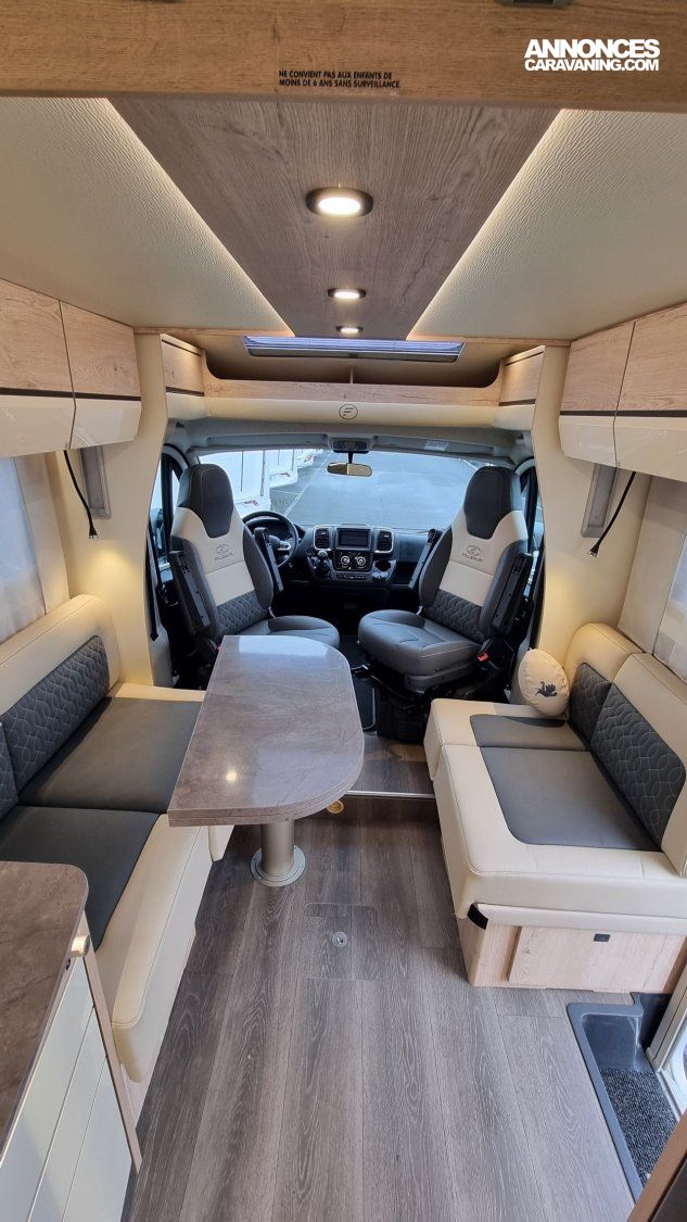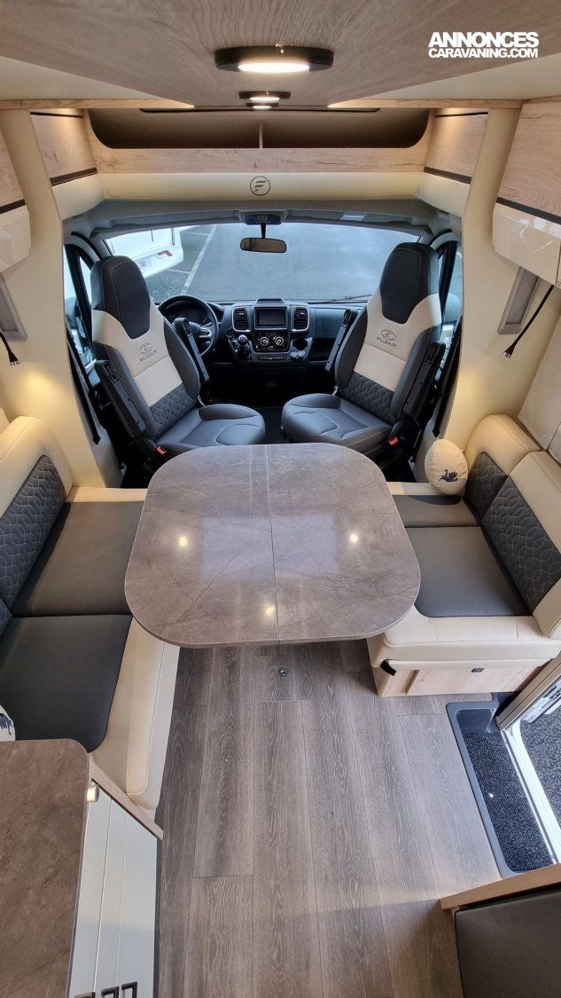 - Pack Confort: Traction +, Antibrouillards et pare-chocs peint, Commandes au volant + HP, Porte cellule Hartal avec baie, Moustiquaire de porte cellule, Stores plissés Remis en cabine, Autoradio Double DIN - DAB+ avec kit main libre - Caméra de recul, Rétroviseurs extérieurs électriques, dégivrants, Cde digitale Truma, Haut parleurs AV, 2ème clé télécommandée, Convertisseur DC/DC 40Ah, Batterie AGM 95Ah sur 74LMF,Sièges cabine réglables en hauteur ,Vide poche central, Transformation dinette en couchage ,Hotte cuisine digitale à extraction latérale, Inverseur gaz automatique Duo Control, Matelas Evoluflex Haute Résilience, Voilage et coussins déco, Toit décaissé.
