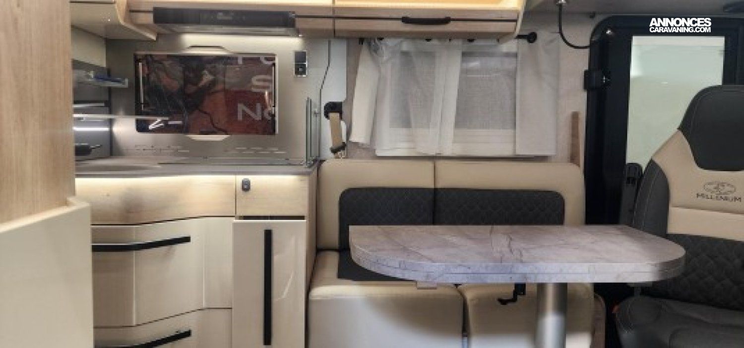 100 % POLYESTER, BOITE AUTOMATIQUE, CHASSIS AL KO, CHAUFFAGE TRUMA 6 EH, DOUBLE PLANCHER, JANTES ALU 16, SELERIE EMOCUIR, SERIGRAPHIQUE, STORE CABINE, Véhicule neuf d exposition