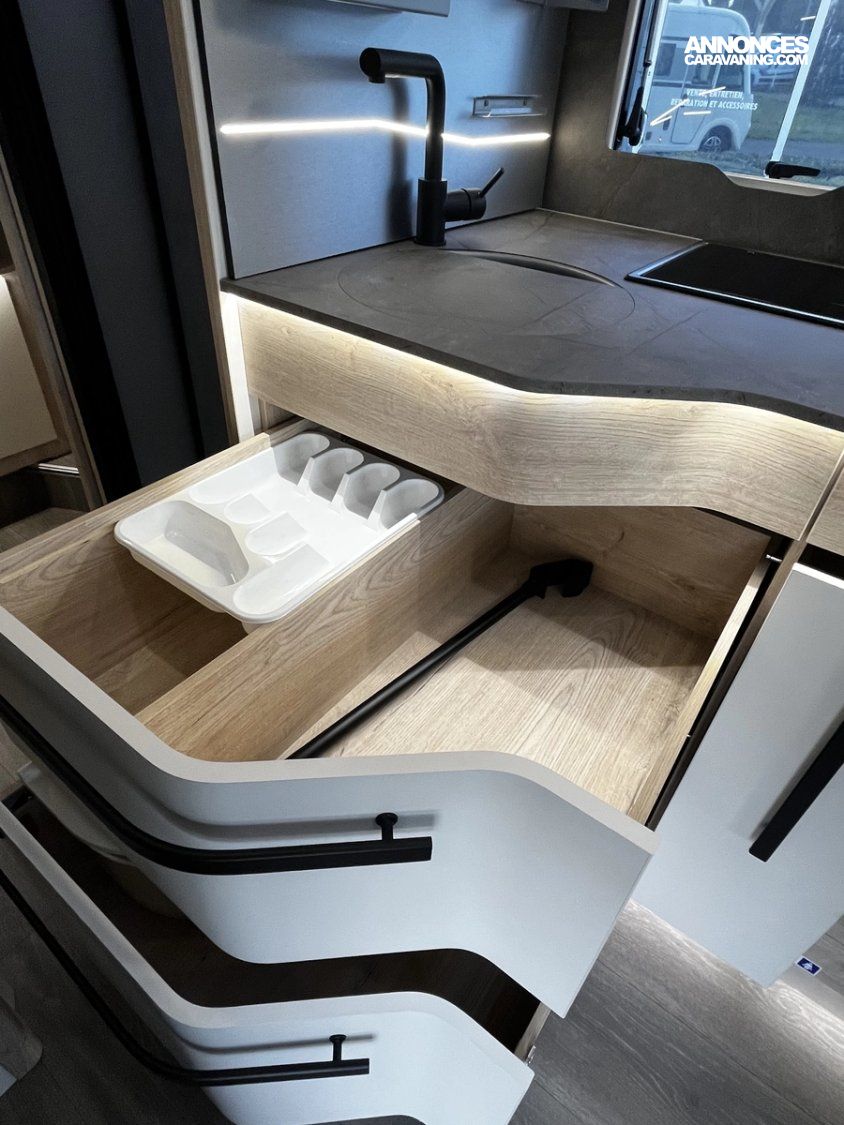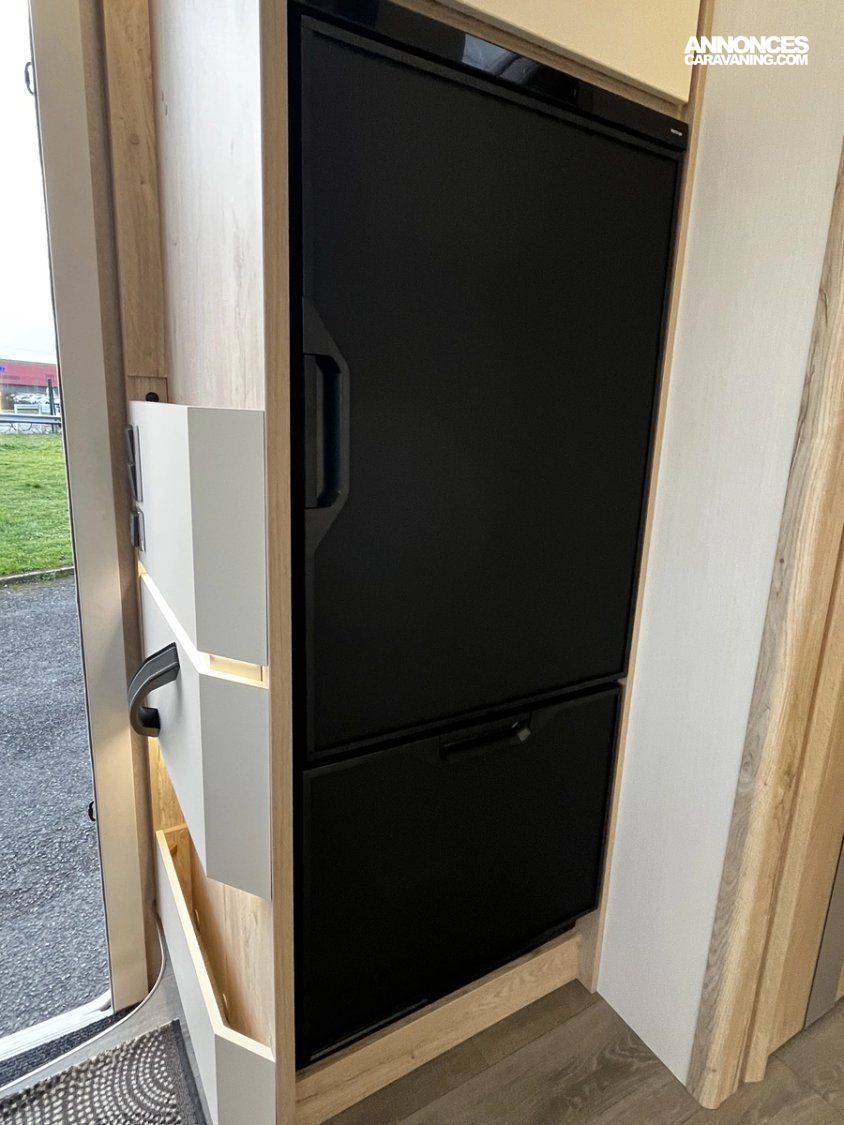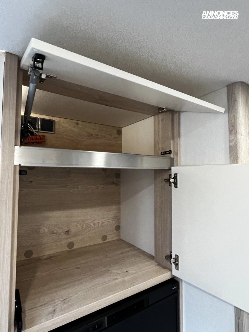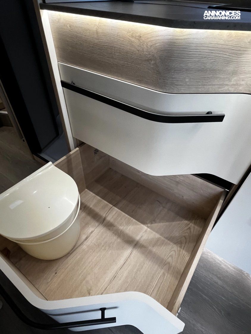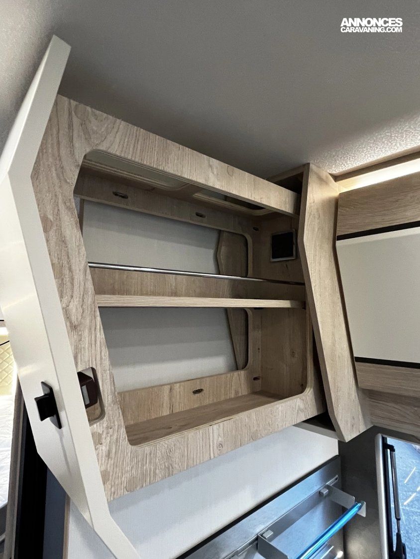 Ce modèle est équipé d’un double plancher de série permettant d’offrir des espaces de rangements supplémentaires, mais aussi une meilleure isolation thermique améliorant le confort et permettant de voyager toute l’année, même l’hiver !
